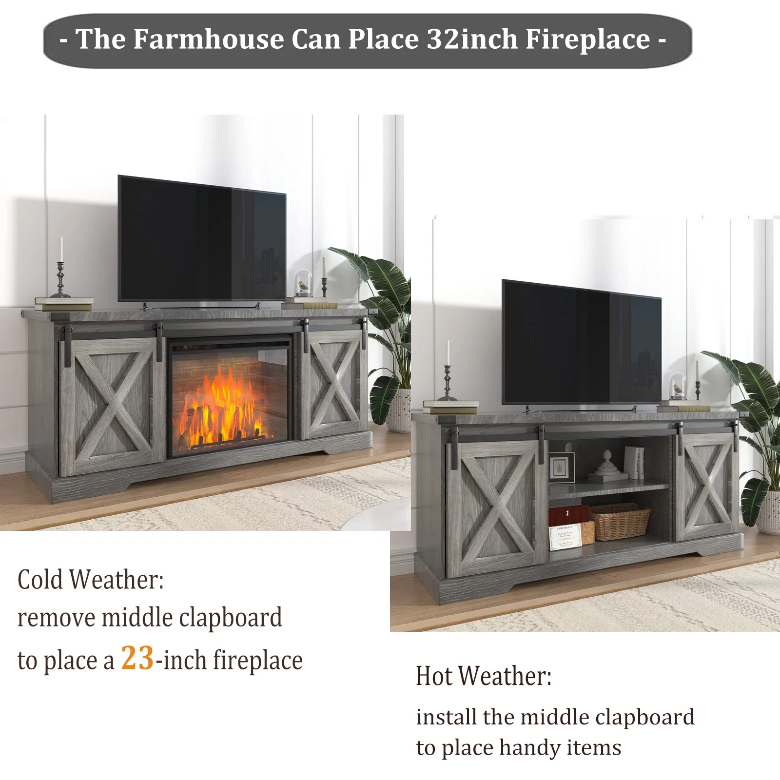 - TV Stand for 23" Electrical Fireplace: The upgraded farmhouse TV stand have a large open shelf in the middle with a layer of adjustable shelf. when we remove the center shelf off, the dimensions of open space change bigger to: 25"L x 13.35" W x 20.8" H, which makes the entertainment center have enough space to be inserted a 23-inch electric fireplace. Notice: According this space size to chose electric fireplace yourself please.