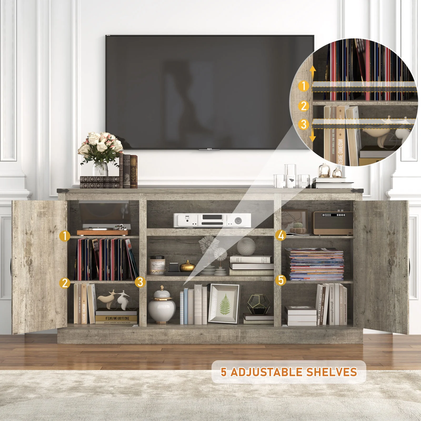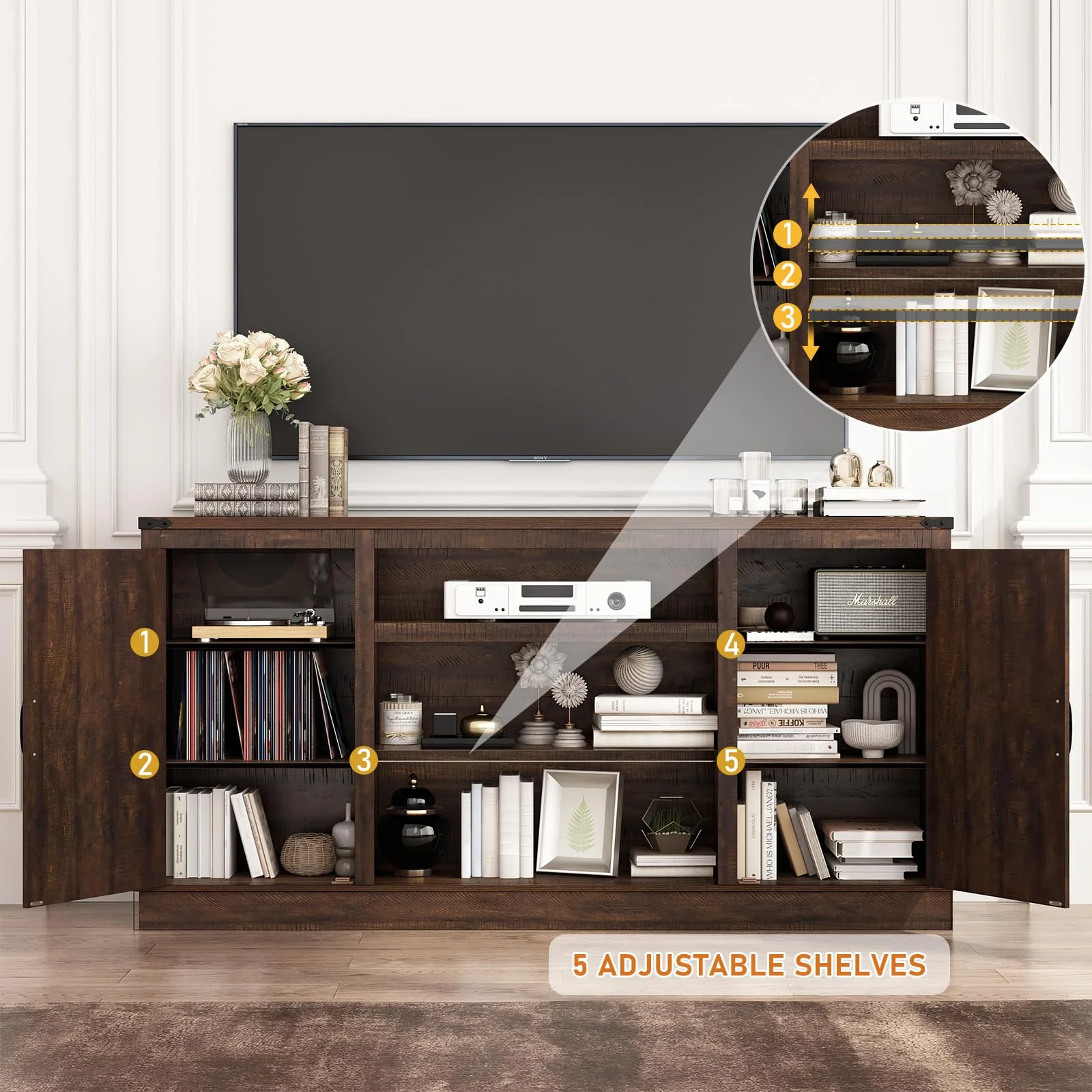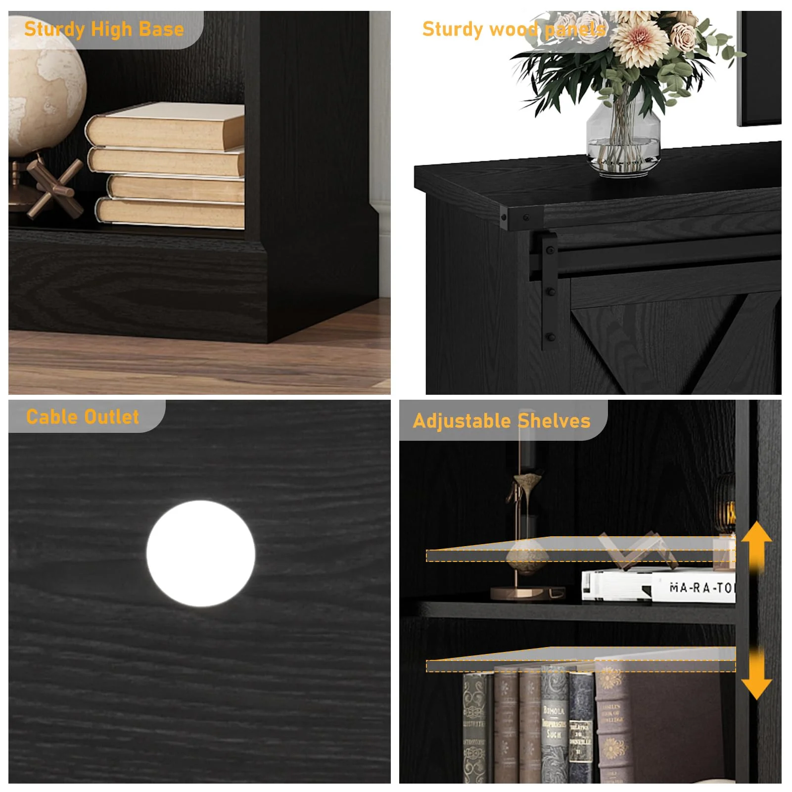 - TV Stand with Adjustable Shelves: The barn door TV console have 3 adjustable shelves, all cabinet shelves can be adjusted in 3 gear or remove directly, you can put DVDs, books, magazines, video, game consoles, and other media components in any place within easy reach.