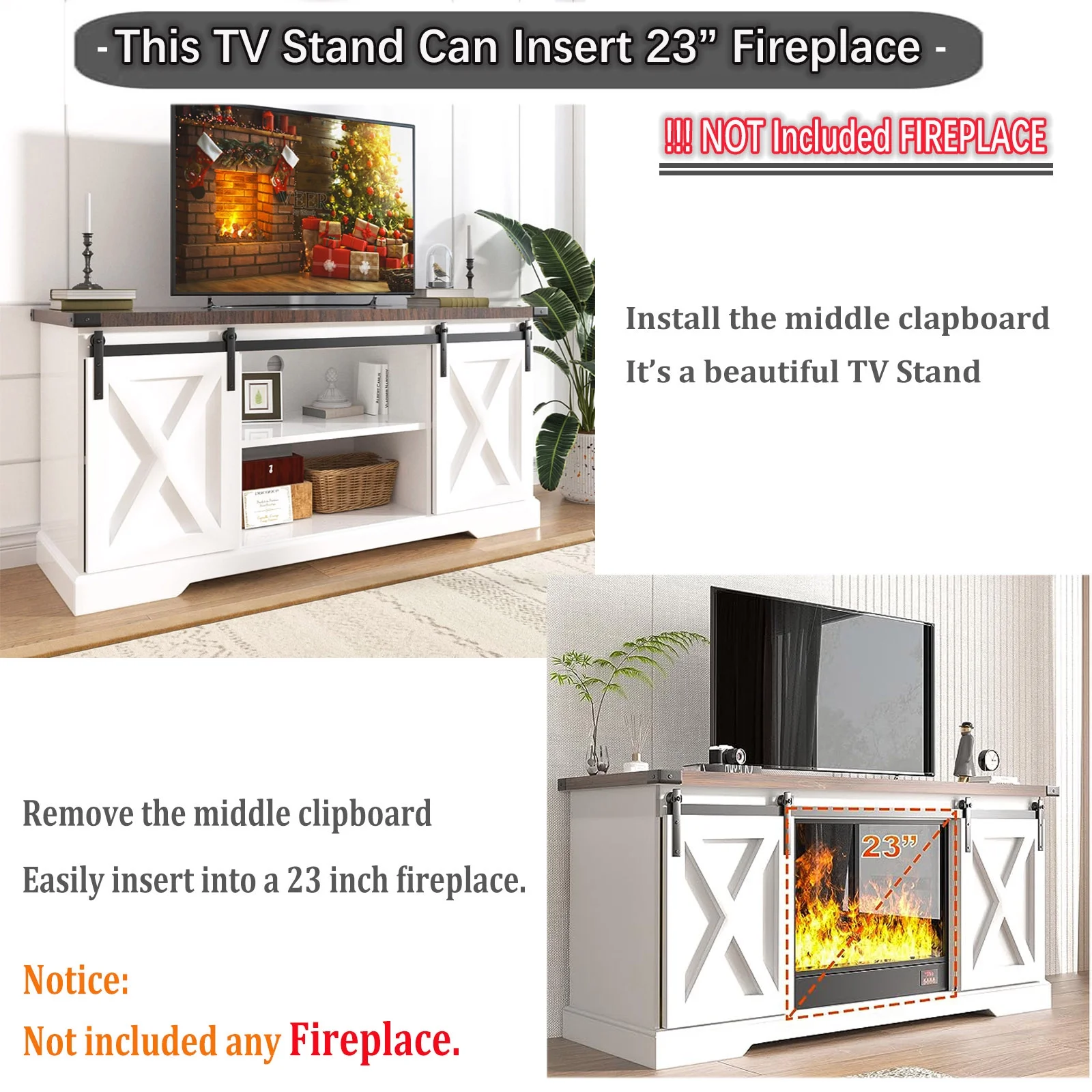 NOTICE: we are selling only the TV cabinet, NOT included the 23" Fireplace. Our farmhouse TV stand just have this function that can be inserted into a fireplace, it does not mean that our advertising listing contains a fireplace.