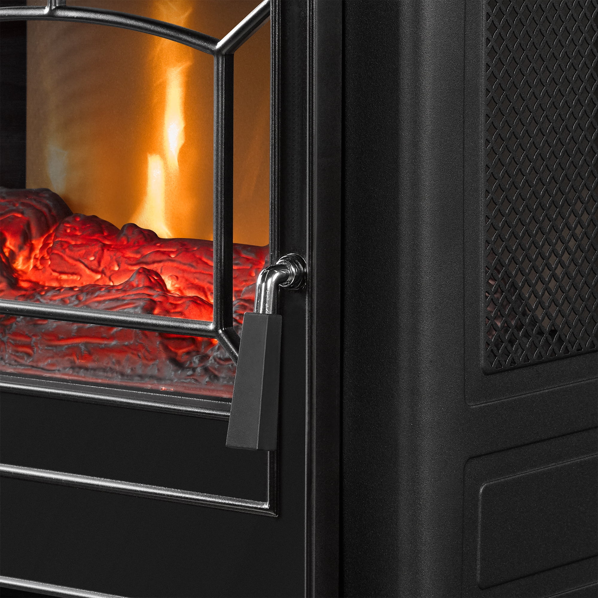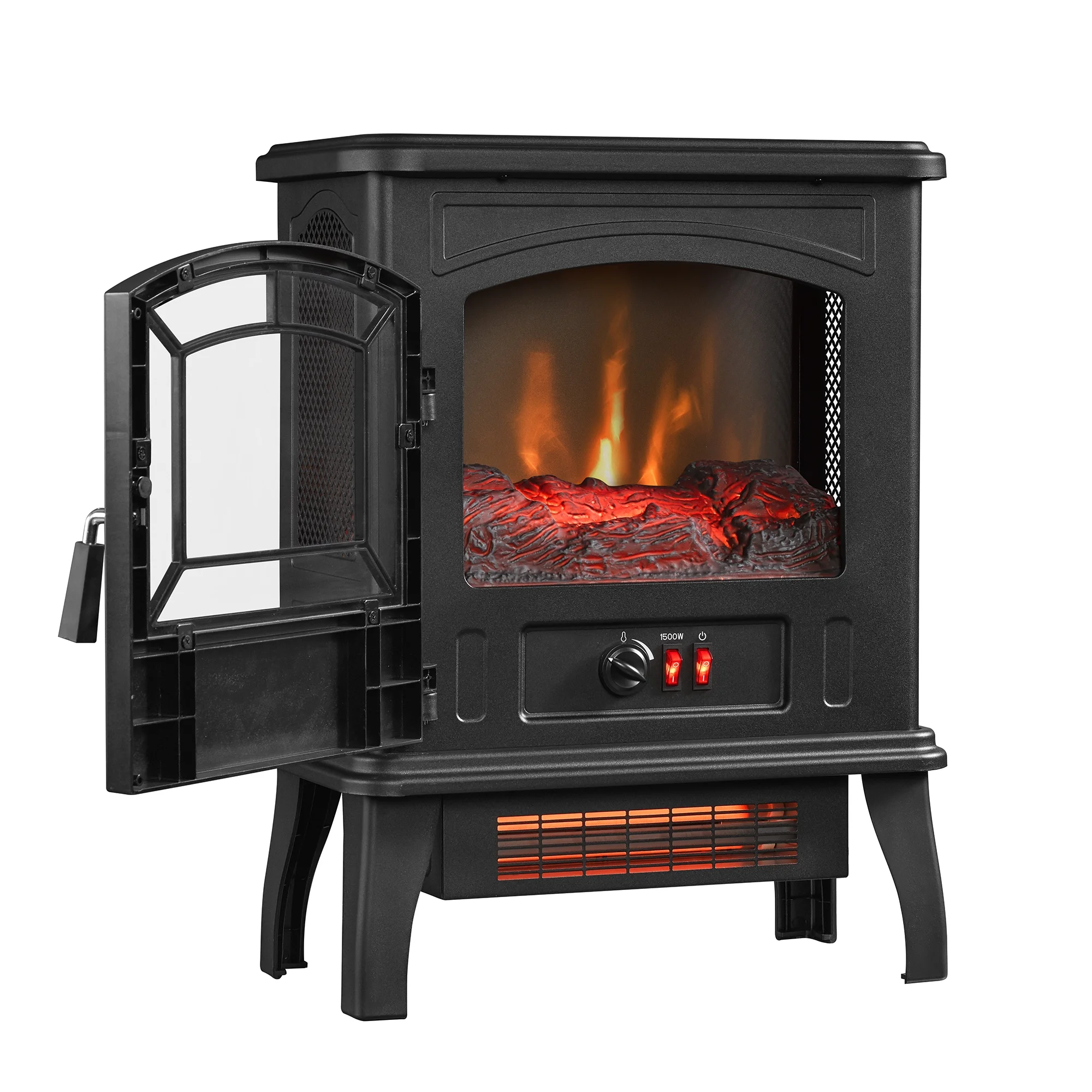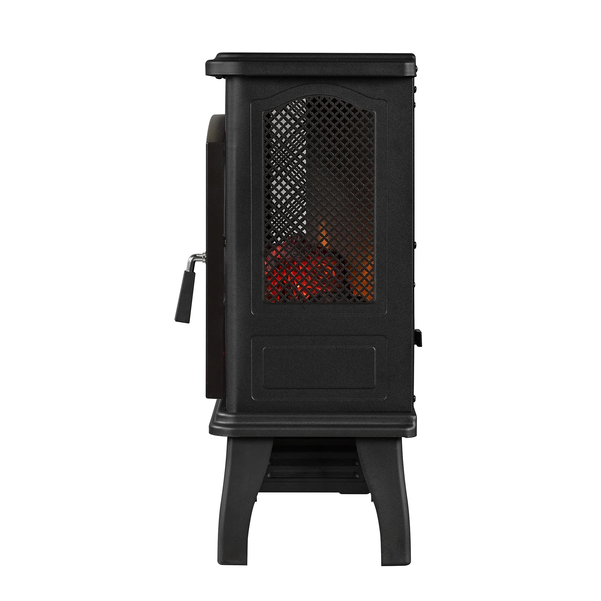 An operable door with a picture window and arched frame detailing make this ClassicFlame 17.5"W Infrared Quartz Electric Stove Heater just as charming as it is efficient for heating up any space in your home. Place it in any room for supplemental heat up to 1,000 square feet. The infrared quartz heat will warm your space quickly without reducing the natural humidity in the air, for the most comfortable heat possible that doesn��t dry out the room. Not only will you have efficient heat to cozy up to, but you��ll also have the beautiful ambiance of a gentle rolling fire. Turn the heat off and keep the flames on in the warmer months for a fireside glow all year long.
