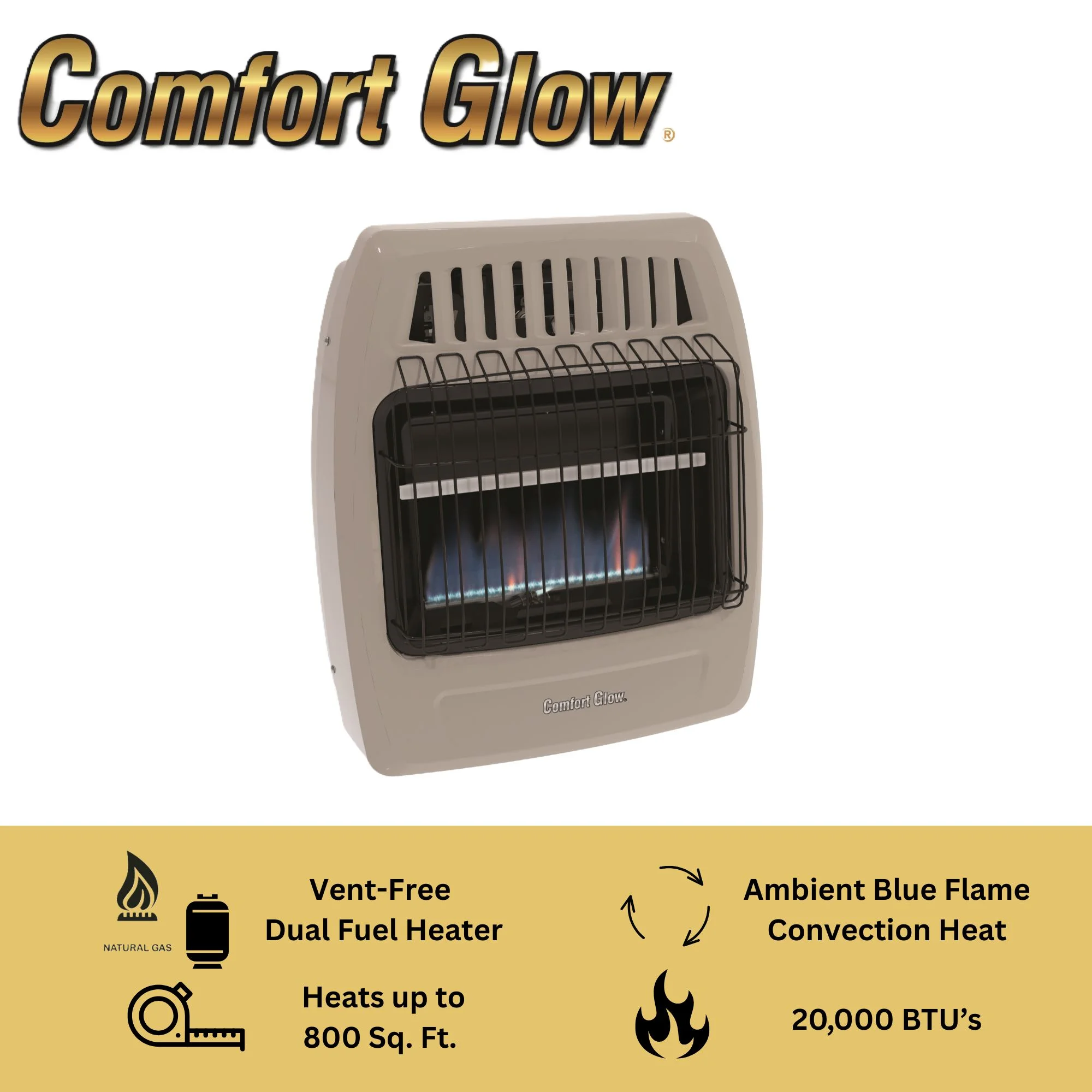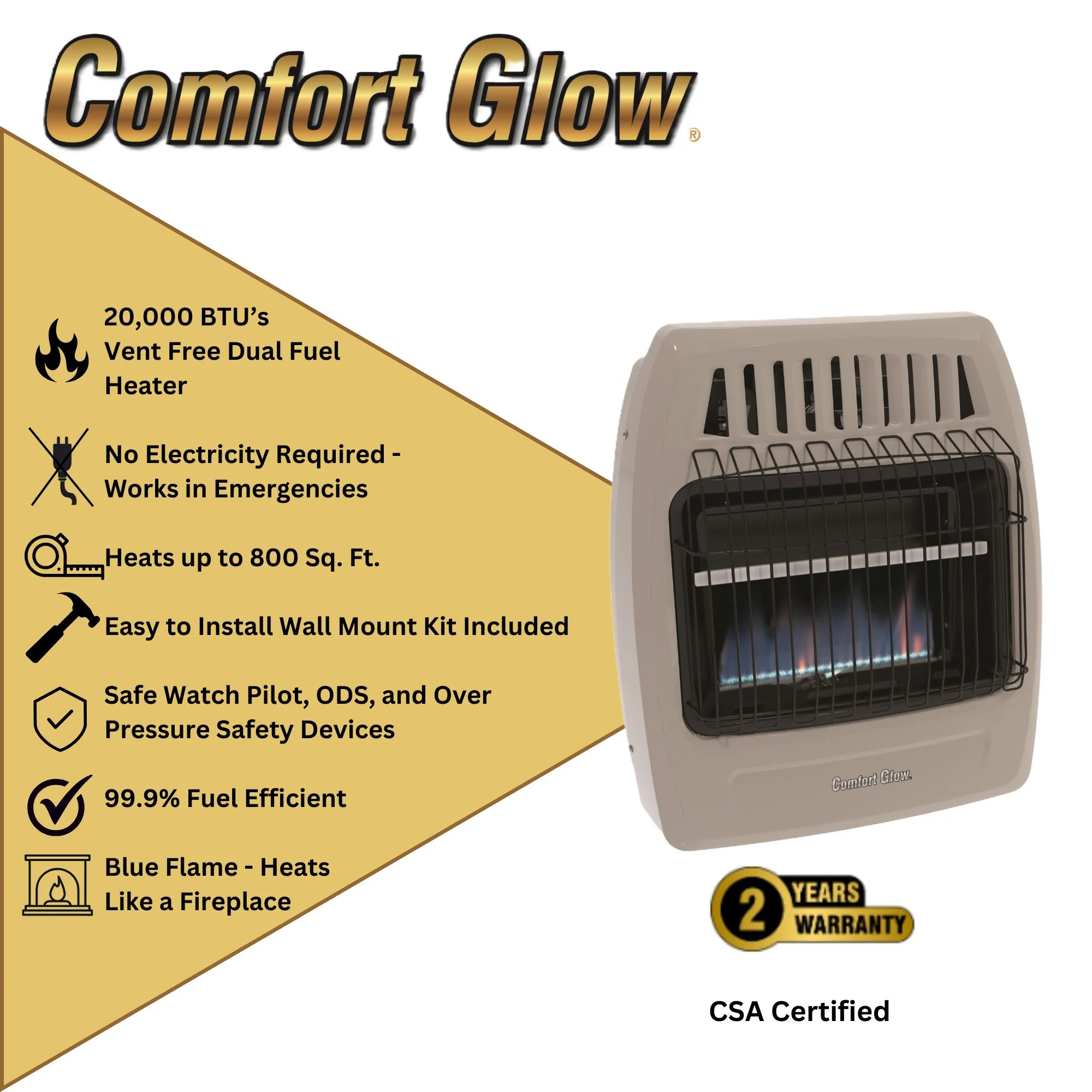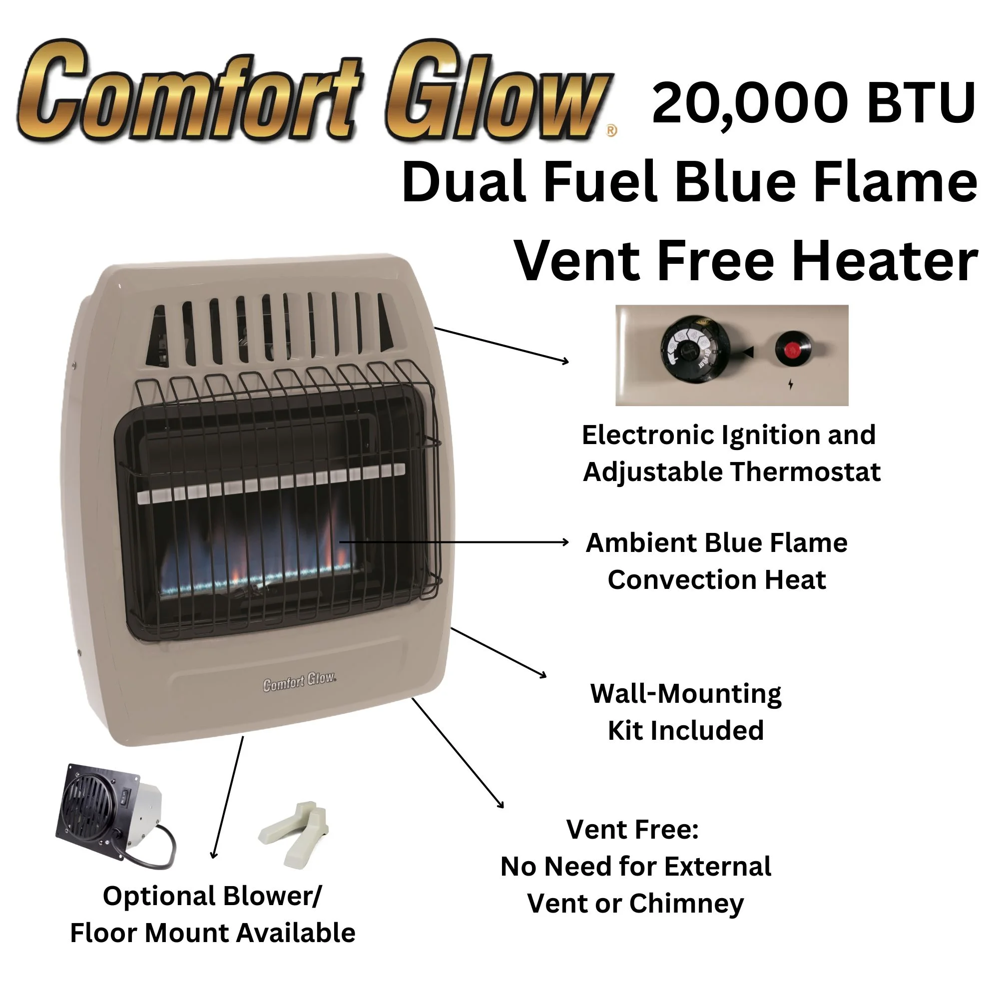Comfort Glow Blue Flame Vent-Free 30,000 BTU Gas Heater for Indoor Use, Natural Gas/LP, 1,250 Sq. Ft. Heat, Electric Ignition, 99.9% Efficient