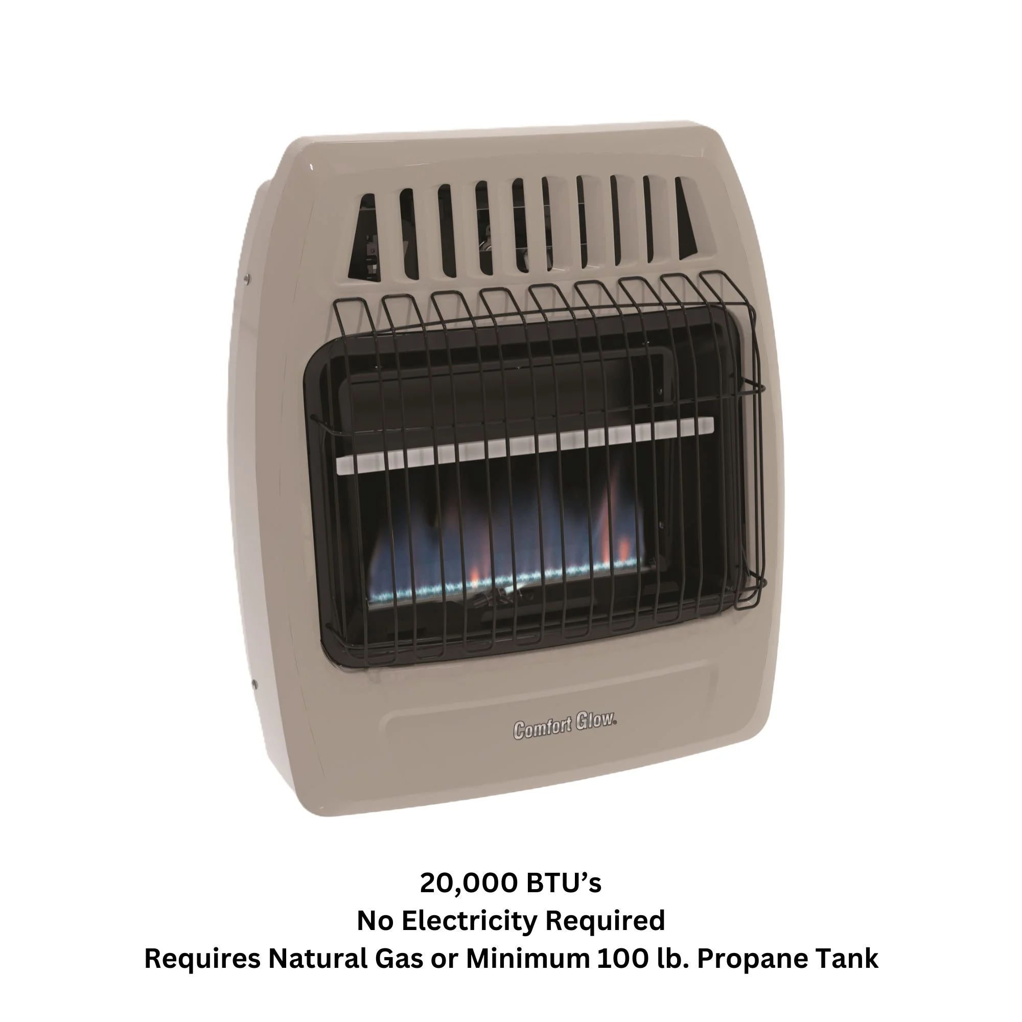 - POWERFUL HEATING PERFORMANCE: This Comfort Glow gas heater for indoor use delivers 30,000 BTUs of blue flame heat, efficiently warming spaces up to 1,250 sq. ft., making it ideal for homes, offices, and garages.