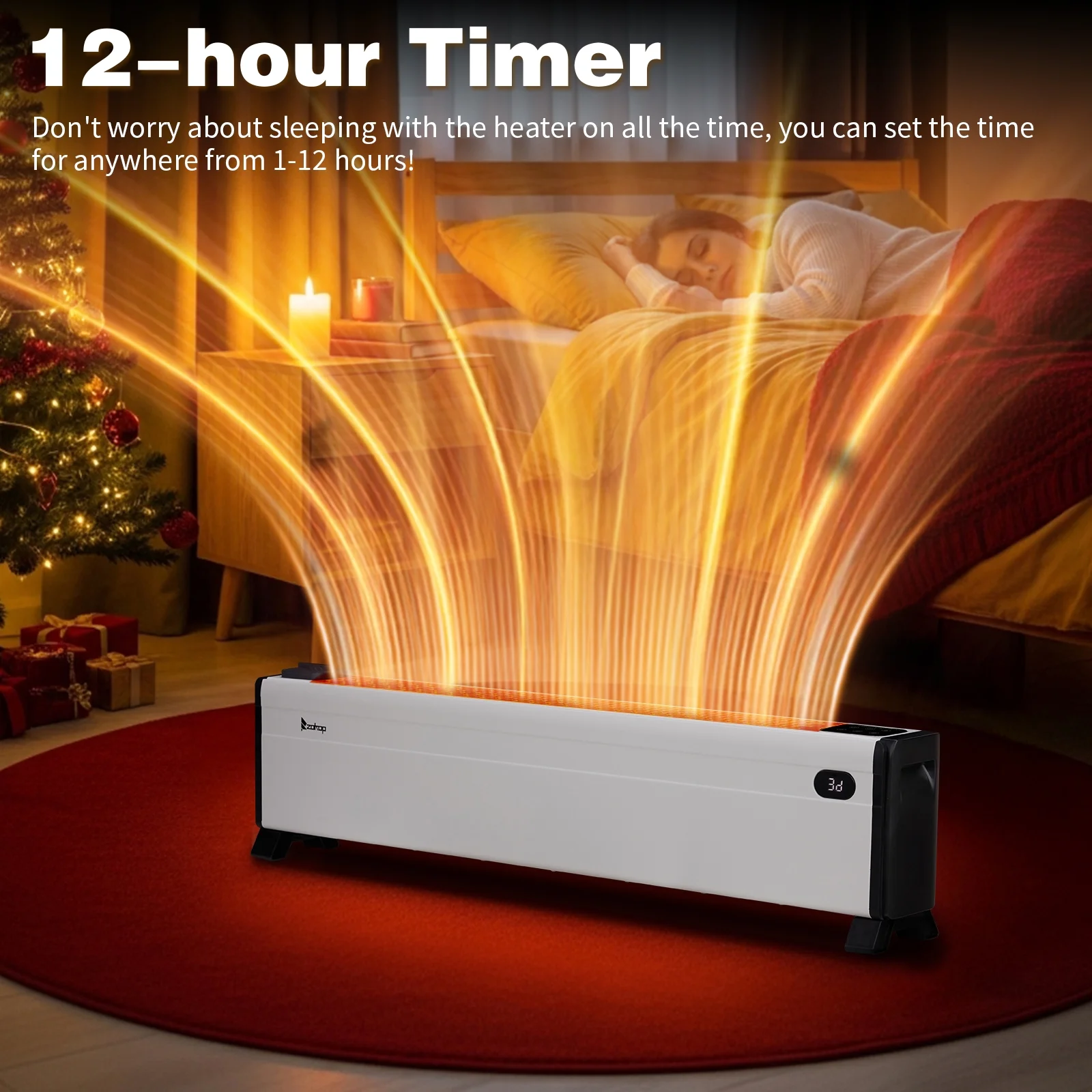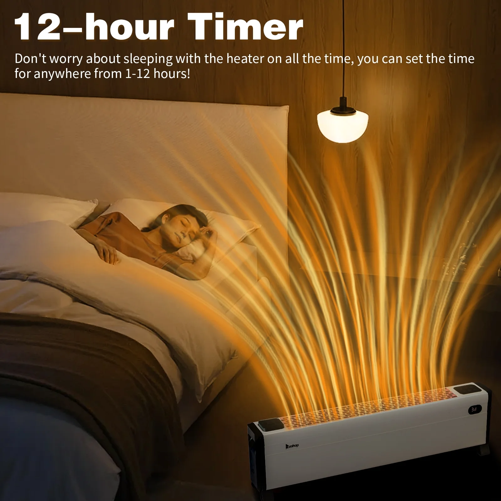 ?��12-Hour Timer��: The convenient 12-hour timer allows you to pre-set your heating schedule according to your daily routine. Whether you want to wake up to a warm room or ensure a cozy atmosphere as you wind down for the night, this feature provides you with personalized comfort exactly when you need it.