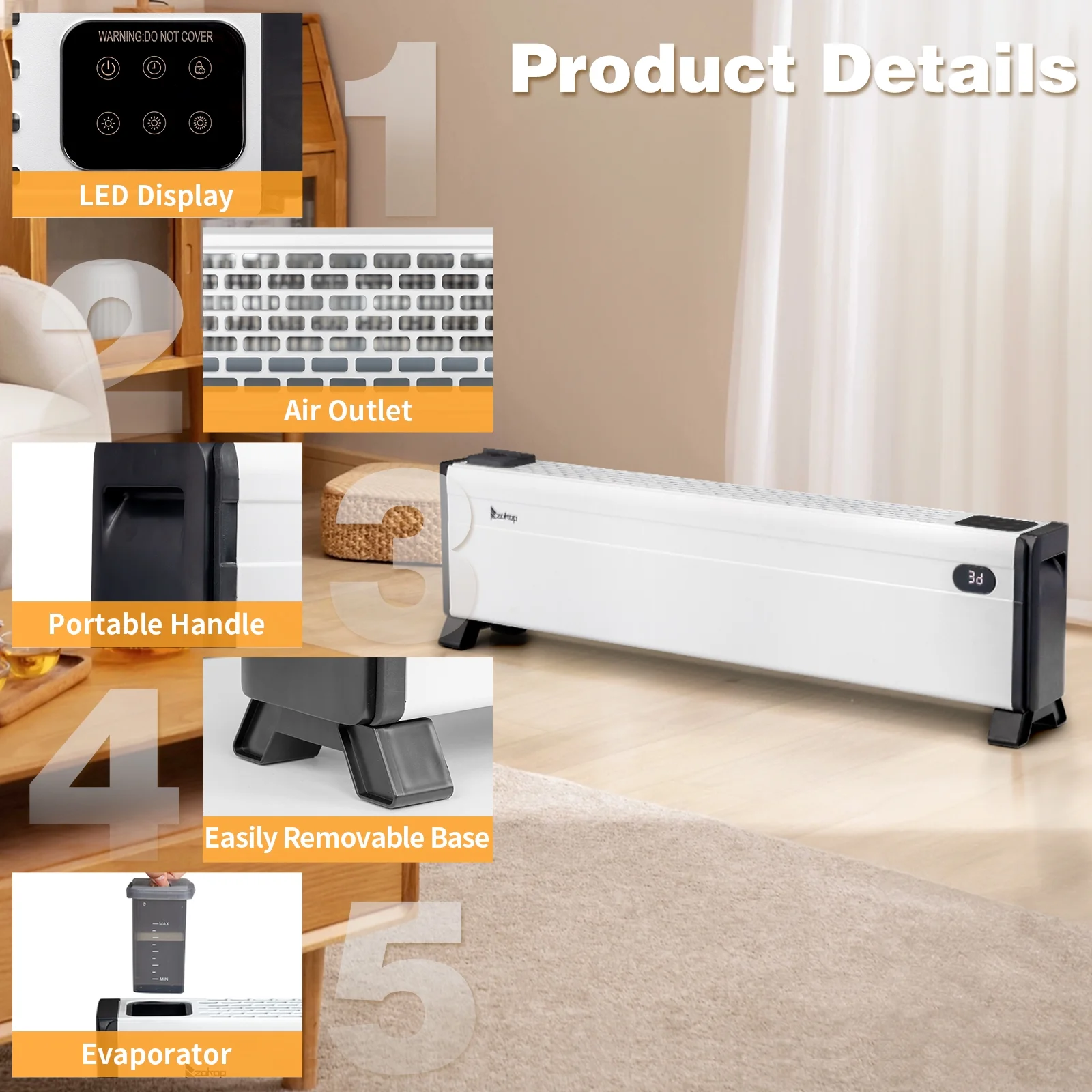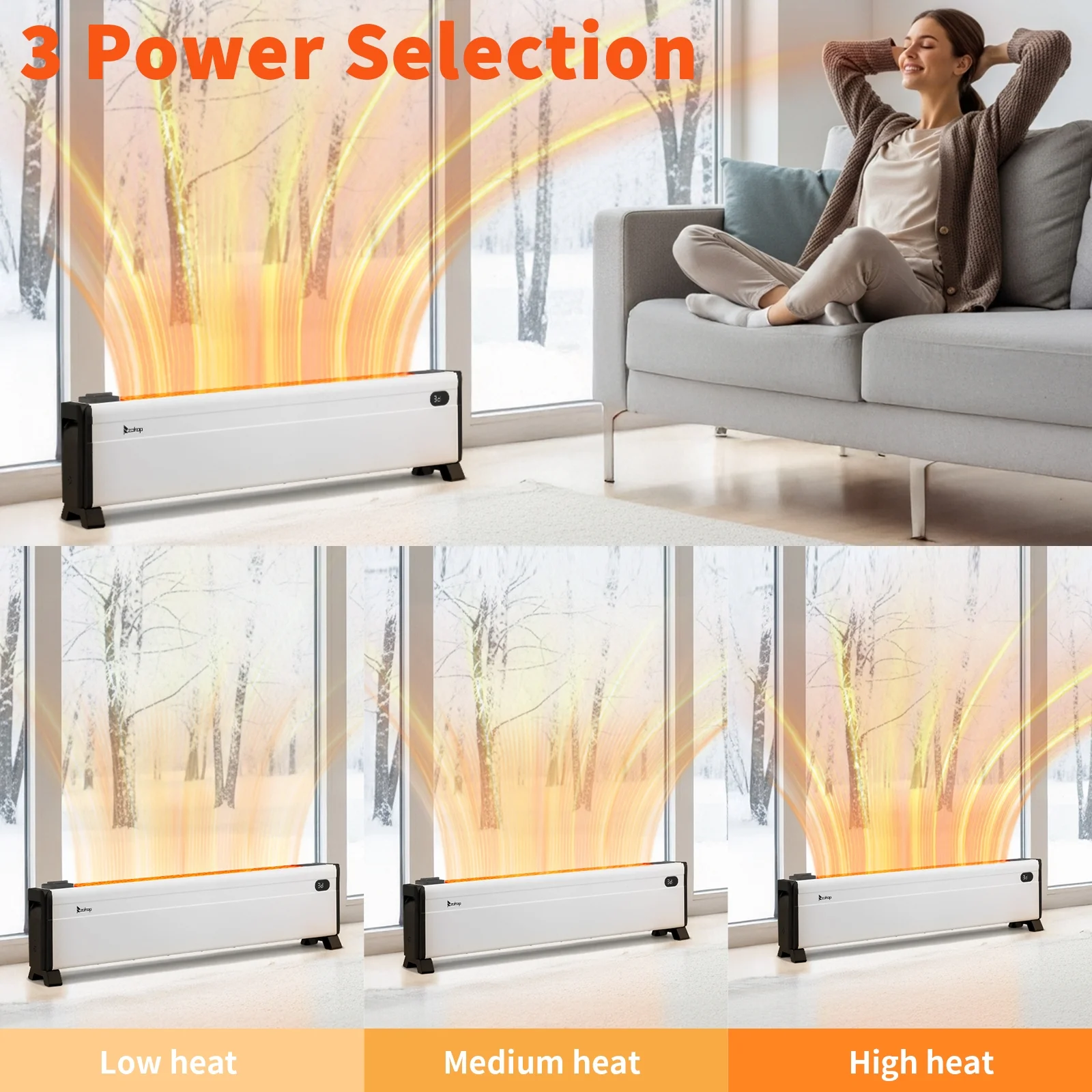 ?��Quick and Efficient Heating��: This 1500W baseboard heater delivers powerful performance, ensuring your space stays warm and comfortable. With three adjustable heat settings, you can customize the heating to meet your needs.