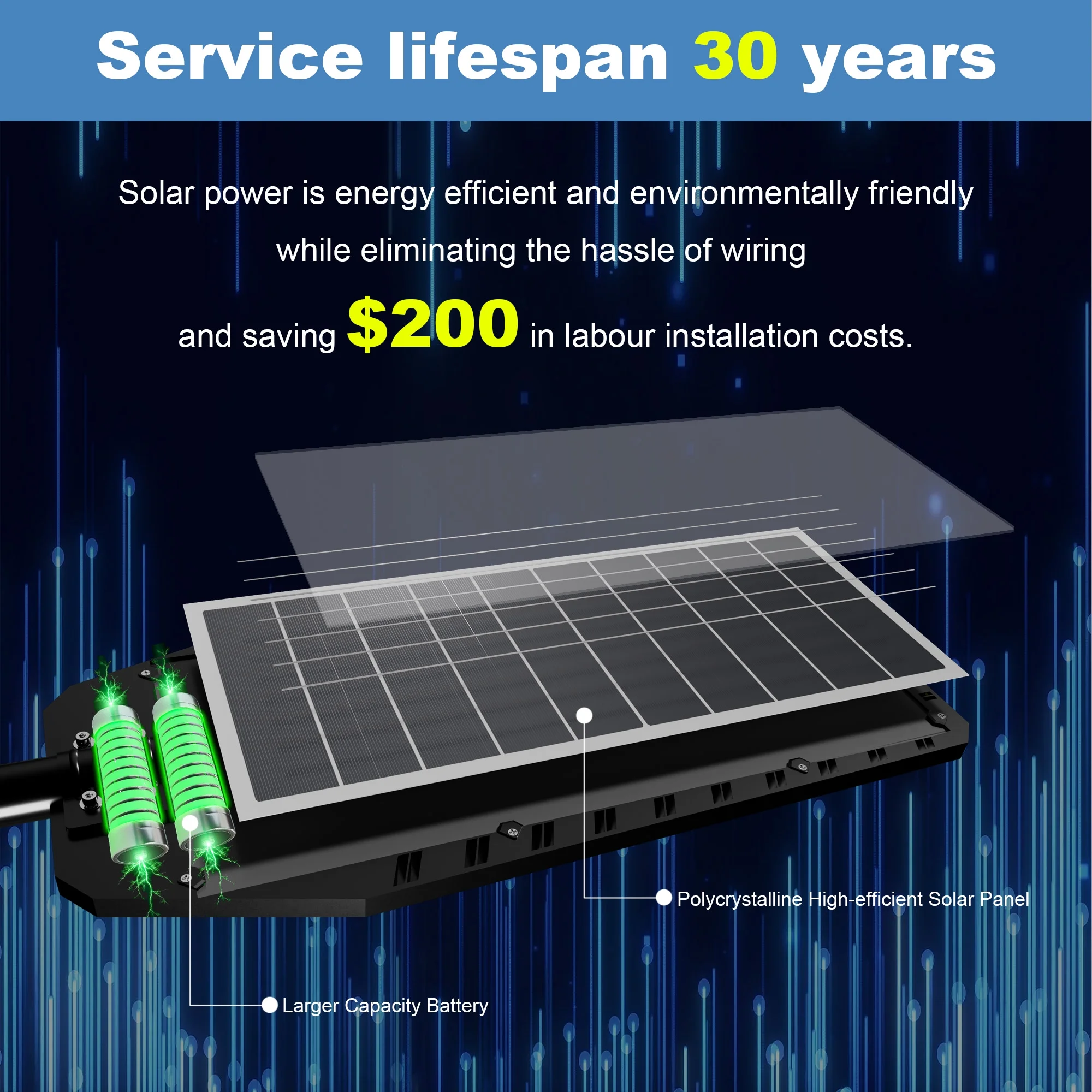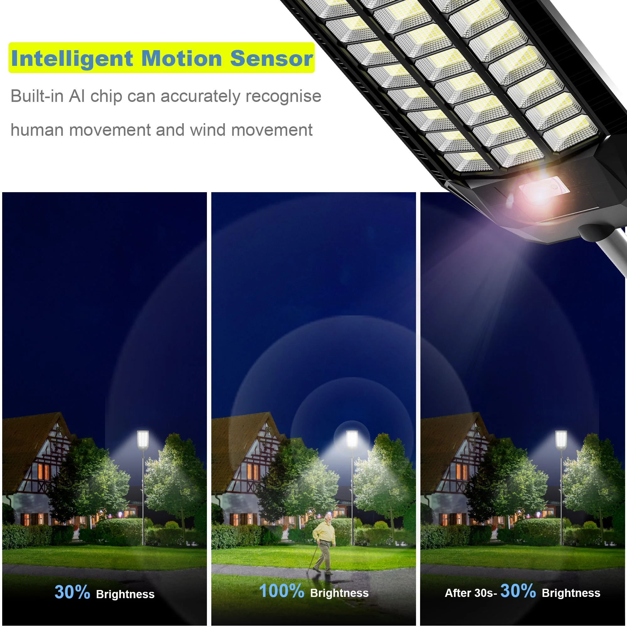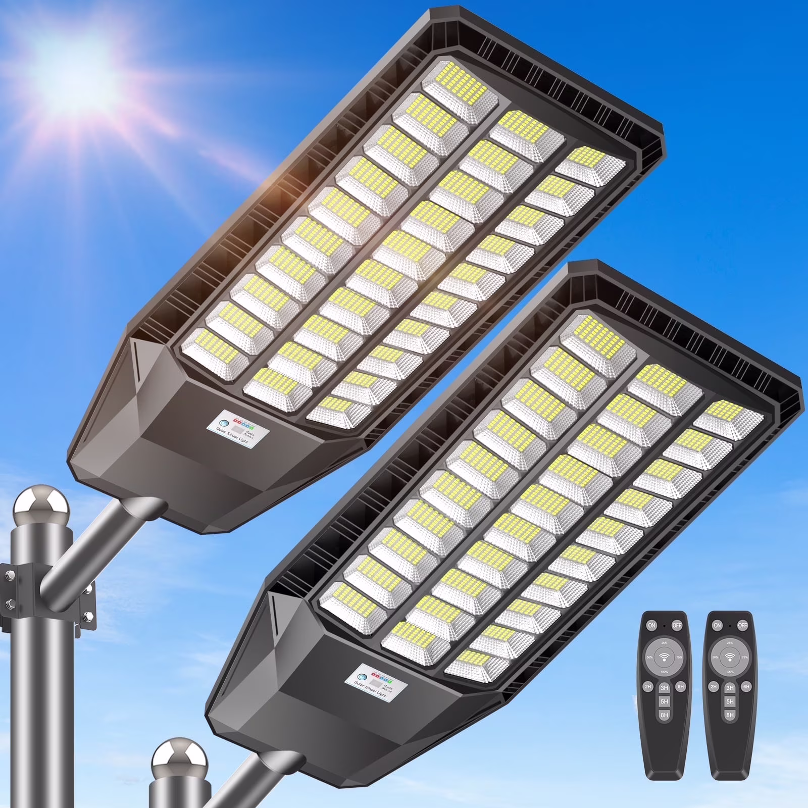 - ENERGY SAVING &SECURITY: The street lights are powered by solar energy, which is a green energy source, safe and non-polluting, and requires no manual maintenance. Installing this street light outside your home can illuminate a large area and better protect your family's safety. You can expect to save up to $242.80 a year on your electricity bill by using this solar lights.
