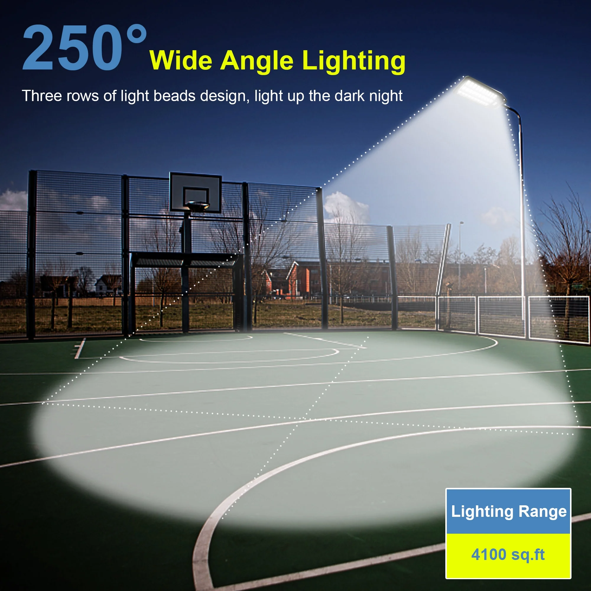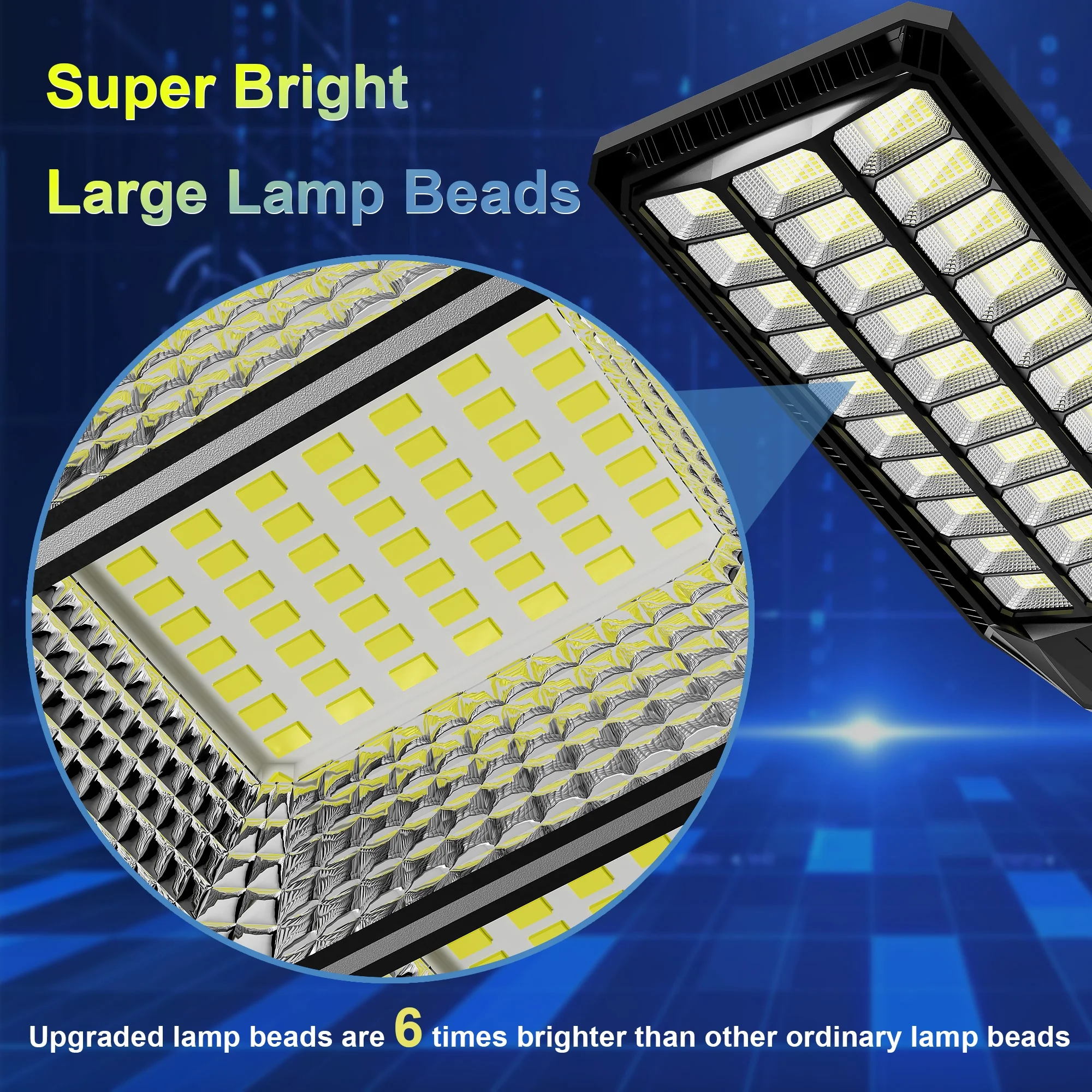 - ULTRA BRIGHT: Our product use 1080 high-efficiency 5730 SMD lamp beads and with a long lifespan and low light decay, 420000 lumens and a color temperature of 6500K for extreme brightness. Its lighting range reach up to 4200 square feet. We can garantee, the brightness of one Adewalk 6000W solar street light is equal to 6 mid-size solar street lights and even more small size lights. Just buy one, it can save you a lots of money buying all those low quality and dim small lights.