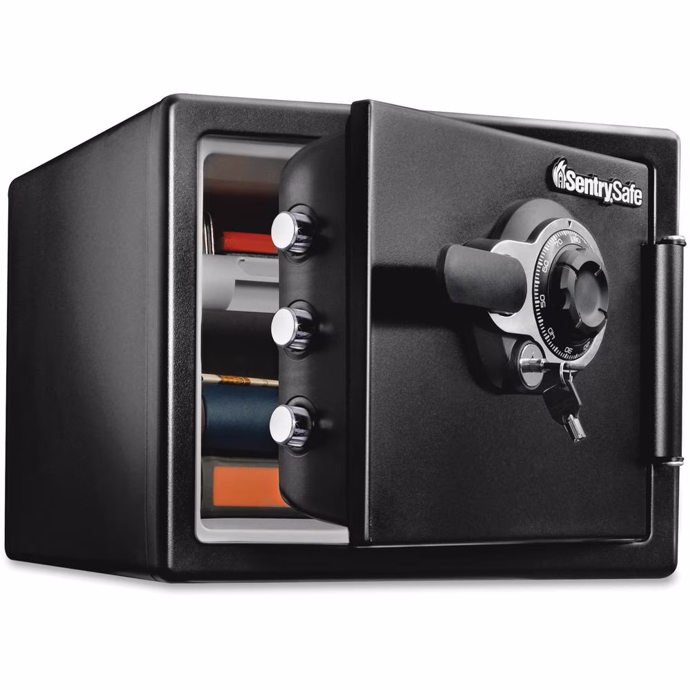 - Dual combination and key lock gives owners added security; safe features three large 1-inch live-locking bolts, steel construction, pry-resistant hinge bar and bolt down hardware