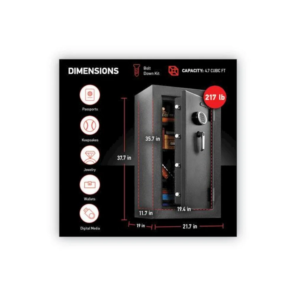 EF4738E Safe, 4.71 cu ft, 21.7w x 19d x 37.7h, Black