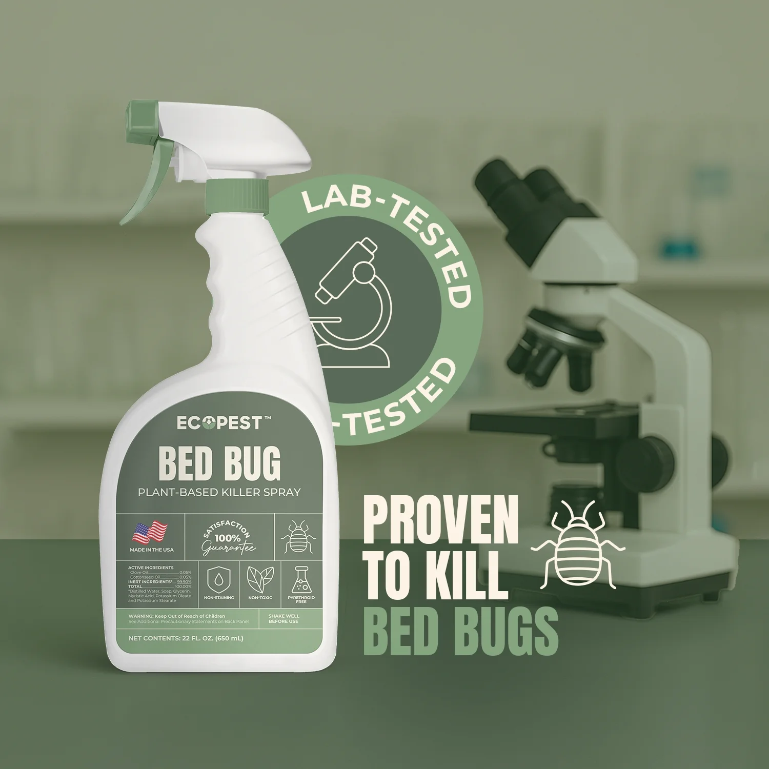 - PROVEN TO KILL BED BUGS �C Tested by entomologists, trusted by the pros. Lab-tested and field-proven, EcoPest Bed Bug Killer Spray delivers fast knockdown and lasting control of bed bugs at all life stages��adults, nymphs, instars, and eggs. Developed through extensive research by entomologists and pest control professionals, this high-performance formula kills on contact and helps prevent re-infestation. Use it confidently on mattresses, bed frames, baseboards, and cracks where bed bugs hide. Protect your home, your peace of mind, and your sleep.