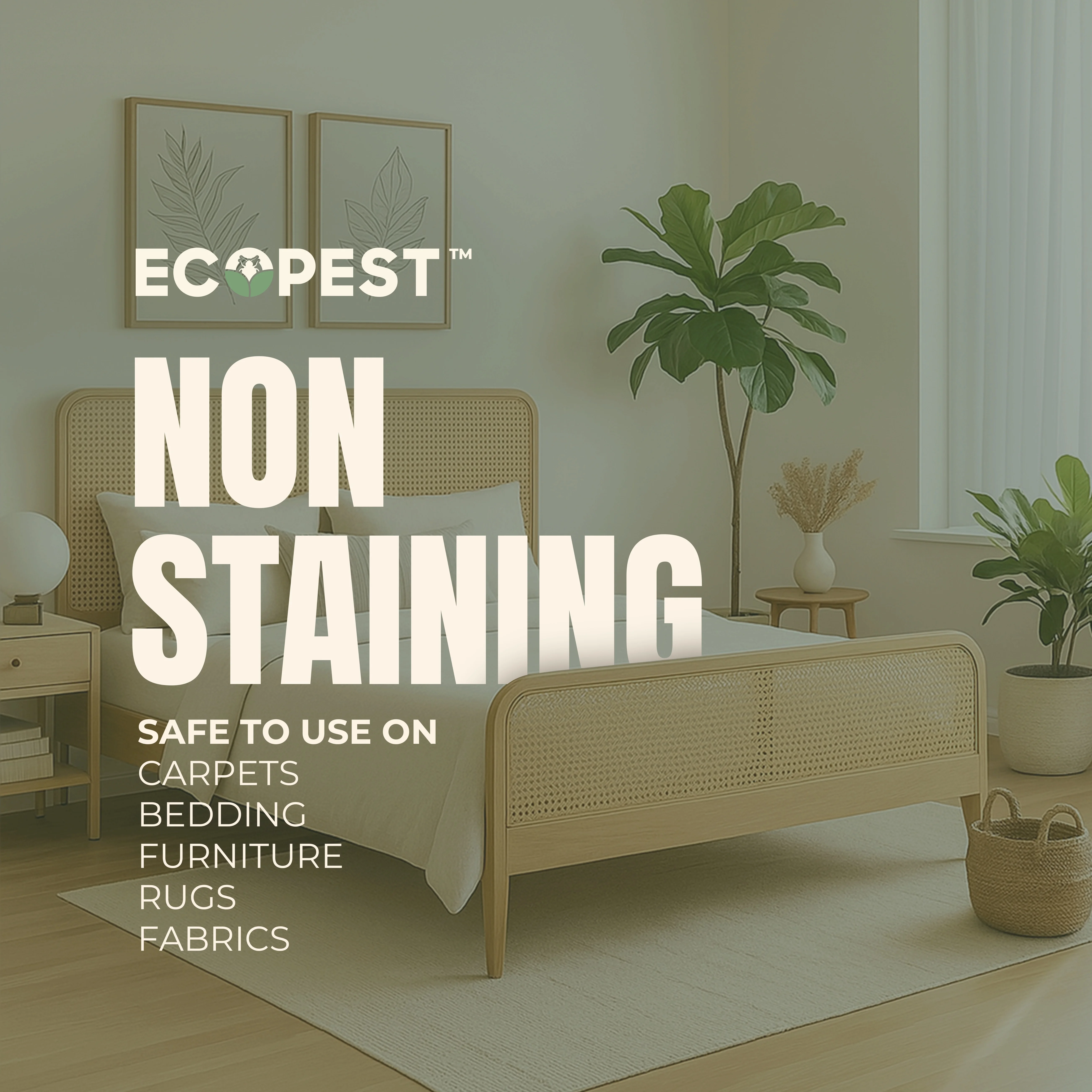 - NON-TOXIC, NON-STAINING & RESIDUE-FREE �C Safe to use on water-safe surfaces like mattresses, bed frames, bedding, furniture, carpets, floors, and baseboards. Unlike chemical sprays that stain or leave harsh residues, our formula contains no dyes, no artificial fragrances, and won��t damage fabrics or finishes. Designed for bedrooms, living rooms, and other sleeping areas where bed bugs hide. Gentle on your home, lethal to bed bugs.