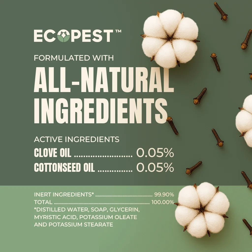 EcoPest Bed Bug Spray is made with natural oils, including clove oil and cottonseed oil, and unlike conventional pesticides, it contains no harsh synthetic pyrethroids like deltamethrin so it��s safe for use around children and pets when used as directed. Effective pest control without compromising your family��s health or the environment.