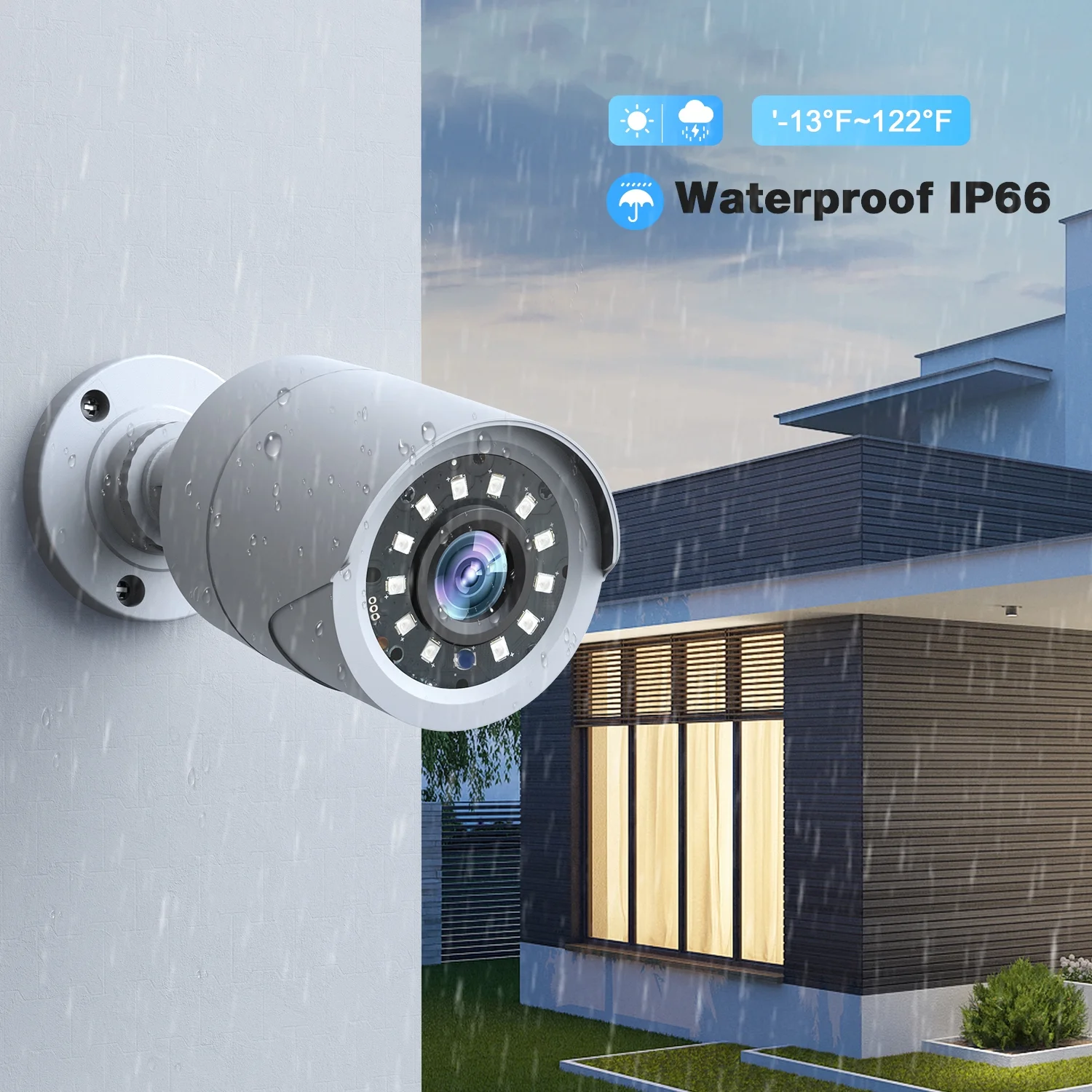 IP66 waterproof rating makes it suitable for outdoor use, ensuring durability in various weather conditions.