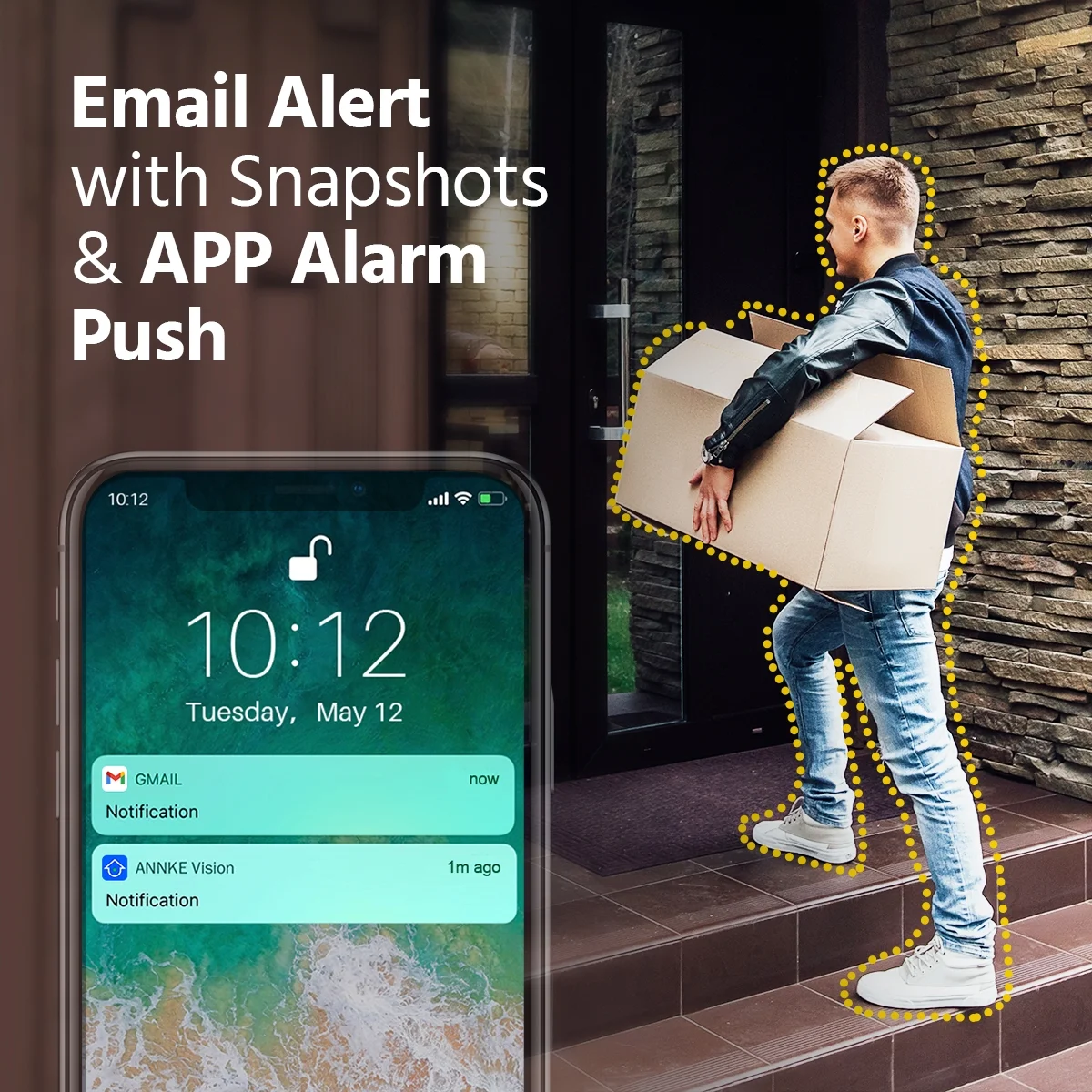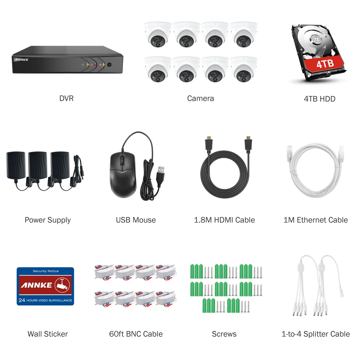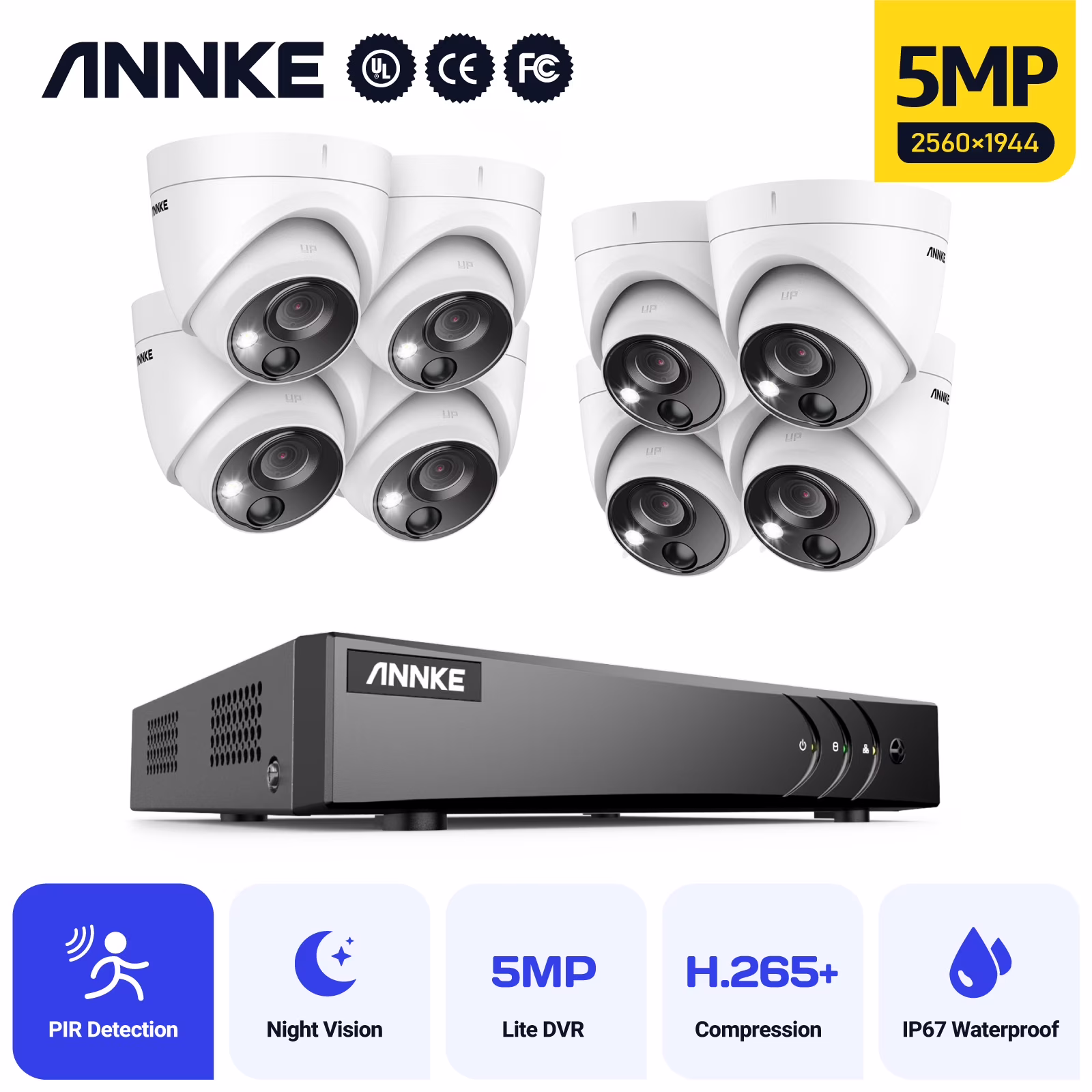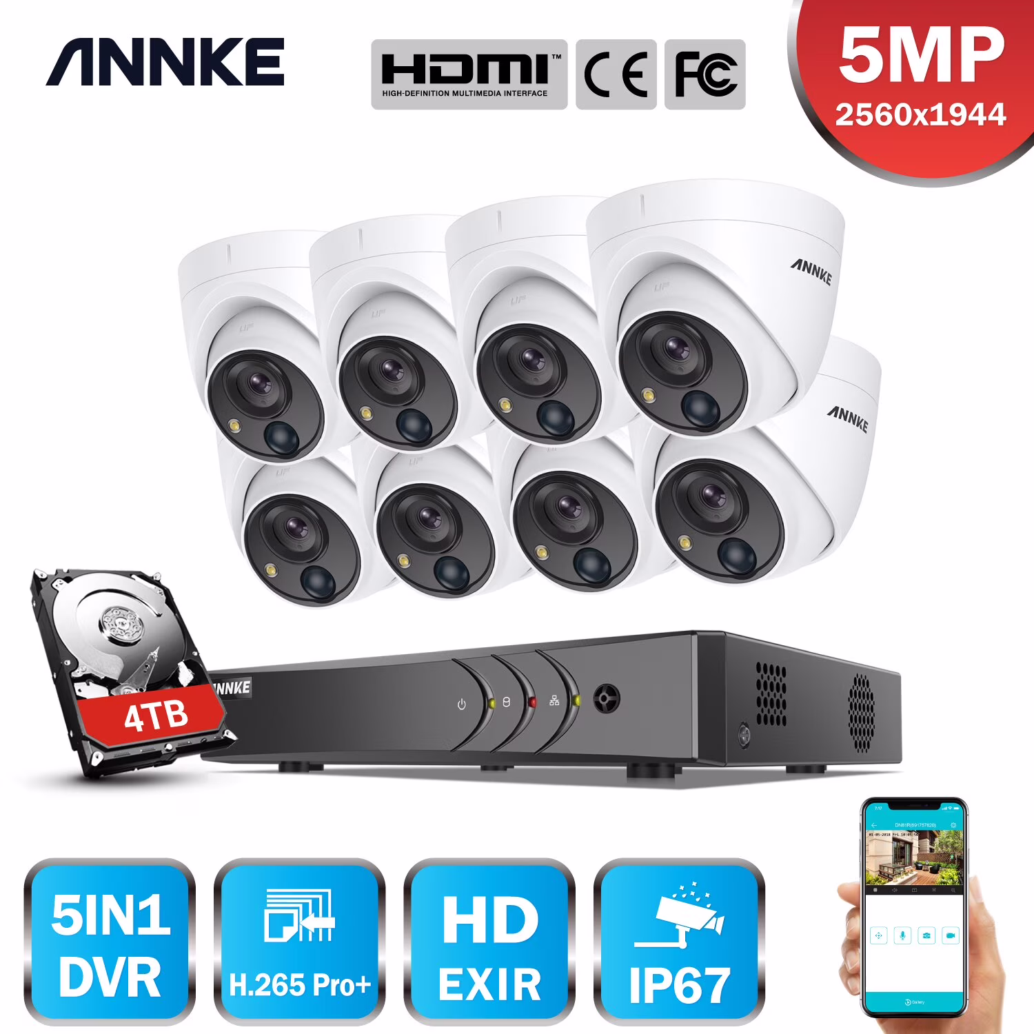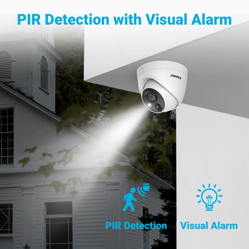 This ANNKE security camera system with compelling functions can be installed anywhere in or around your house with ease. The system is able to stream 5MP live videos to your smartphone, tablet and PC. PIR sensor detects movement of human and animal accurately, reduces false alerts and APP pushes caused by winds and leaves by 95%. The white light of visual alarm is really effective to warn off intruders with high brightness. It will be a perfect security solution to protect what is important to you.