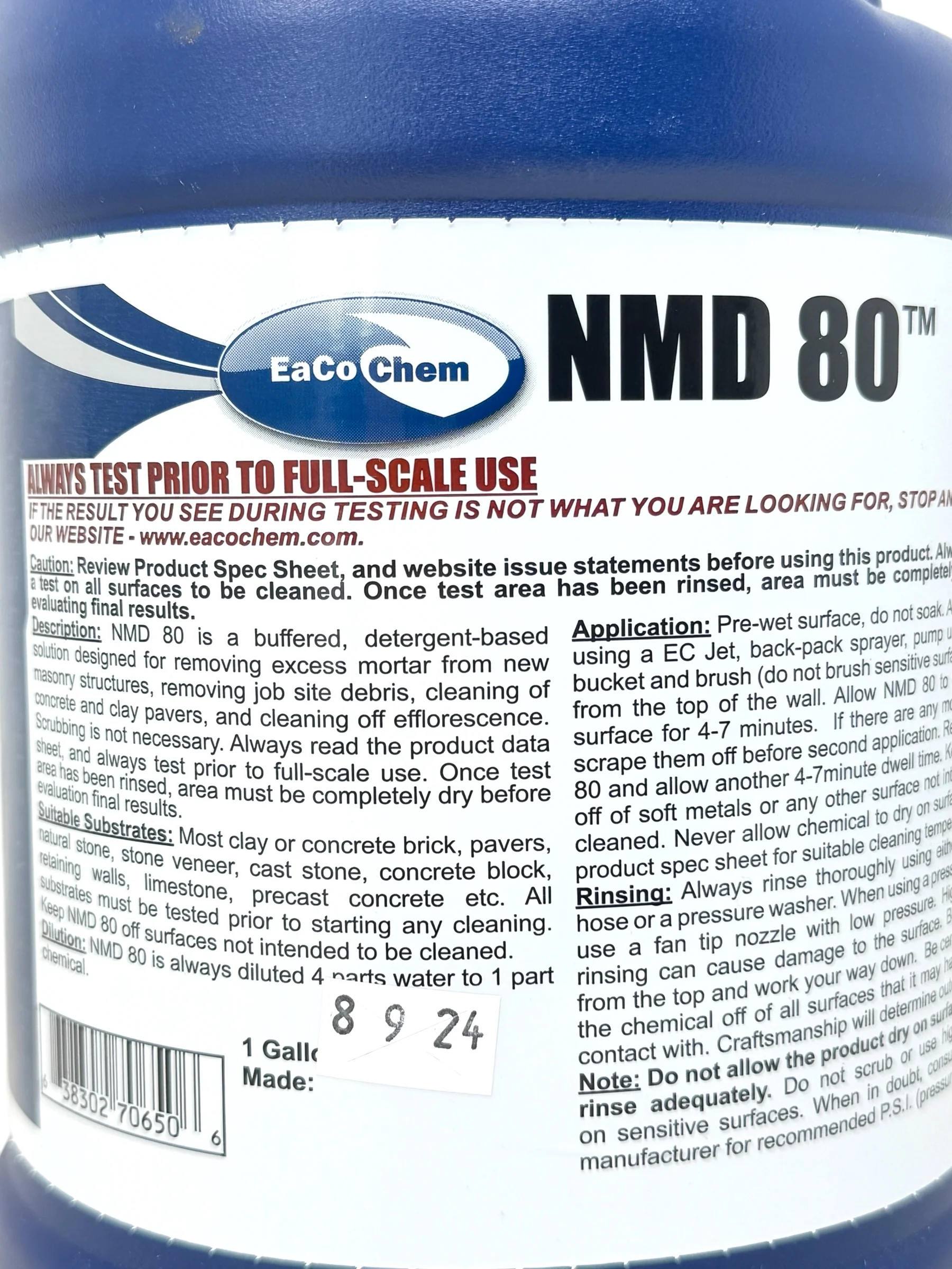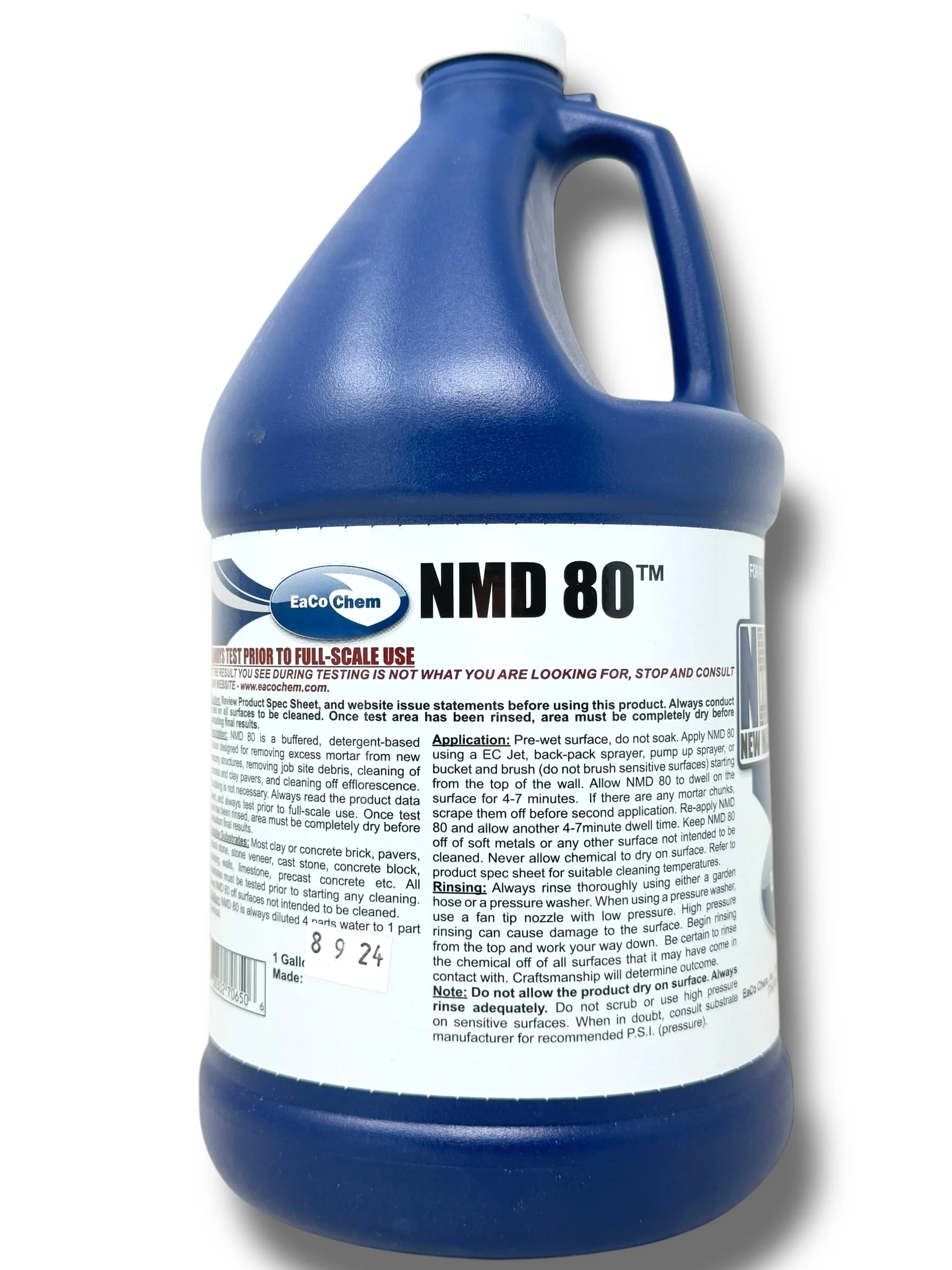 - NMD 80 is a powerful detergent-based solution designed for safe and effective removal of mortar smears and efflorescence from masonry surfaces. It can be used on all masonry substrates including brick, stone, synthetic stone, precast concrete, designer or colored block. It works great to remove polymeric sand haze.