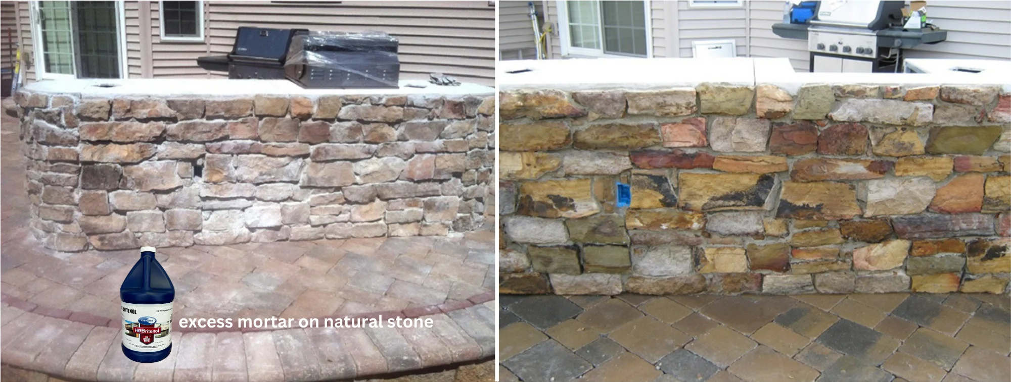 - For Use On: All masonry substrates including brick, stone, limestone, unpolished granite, natural stone, synthetic stone, precast concrete, designer or colored block. It works great to remove polymeric sand haze.