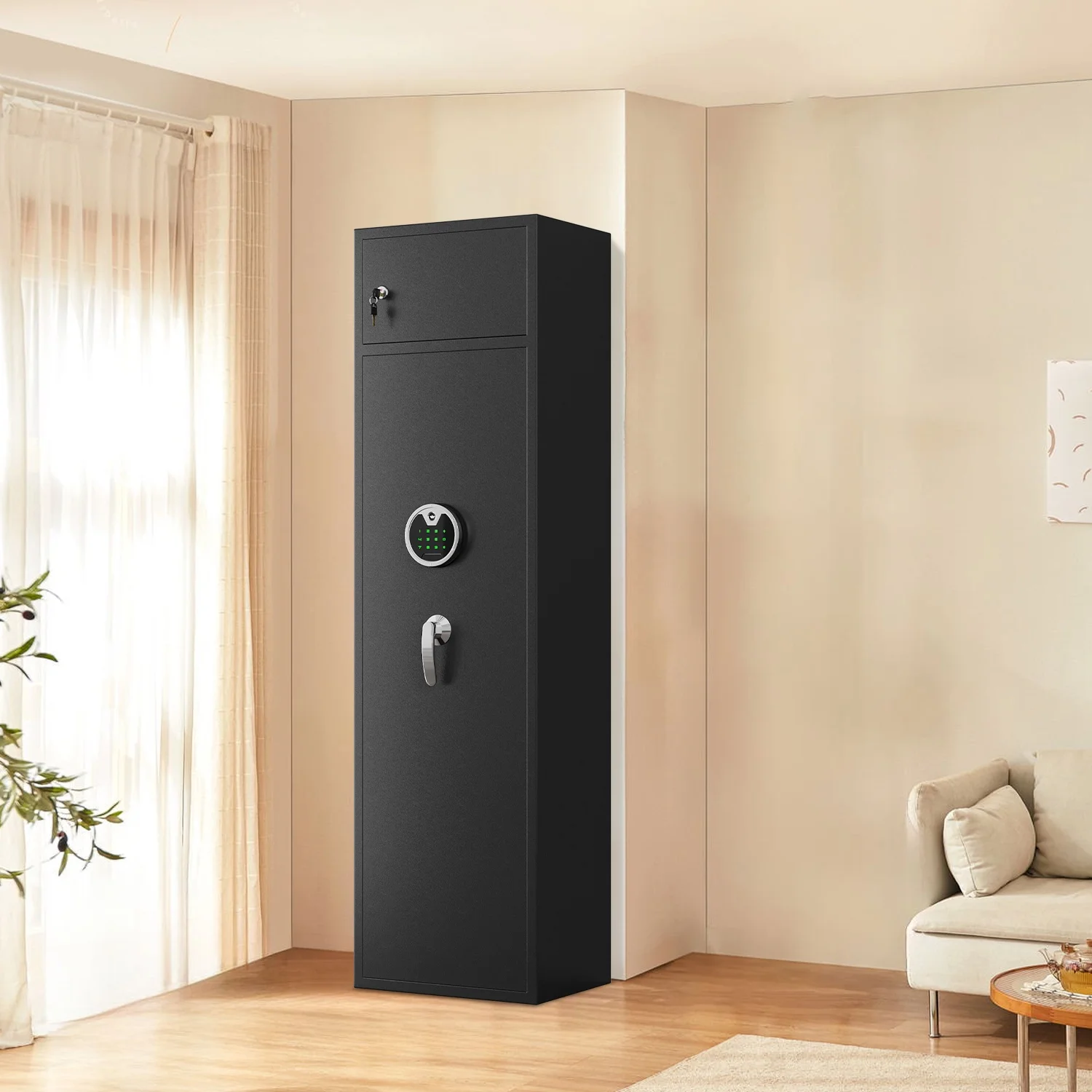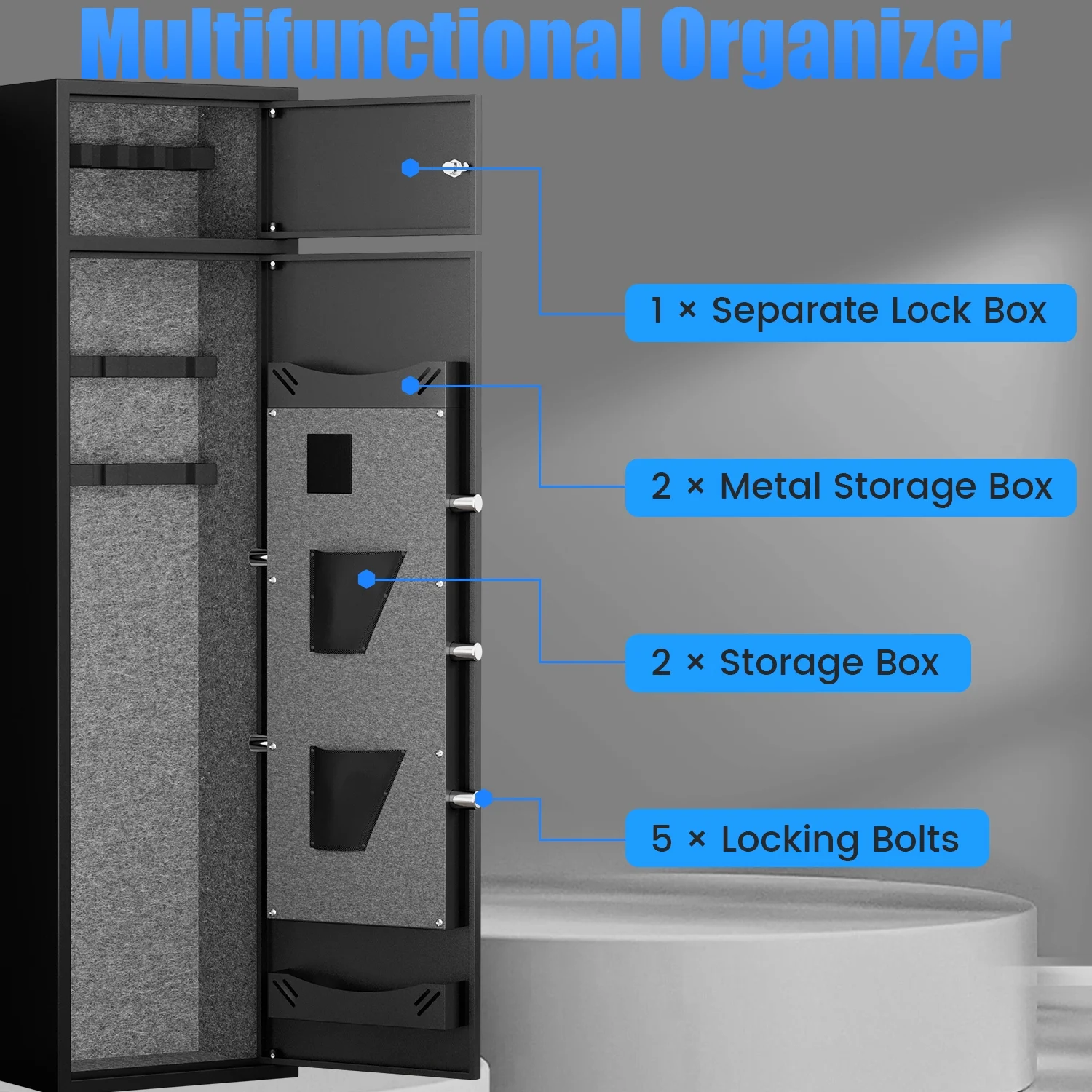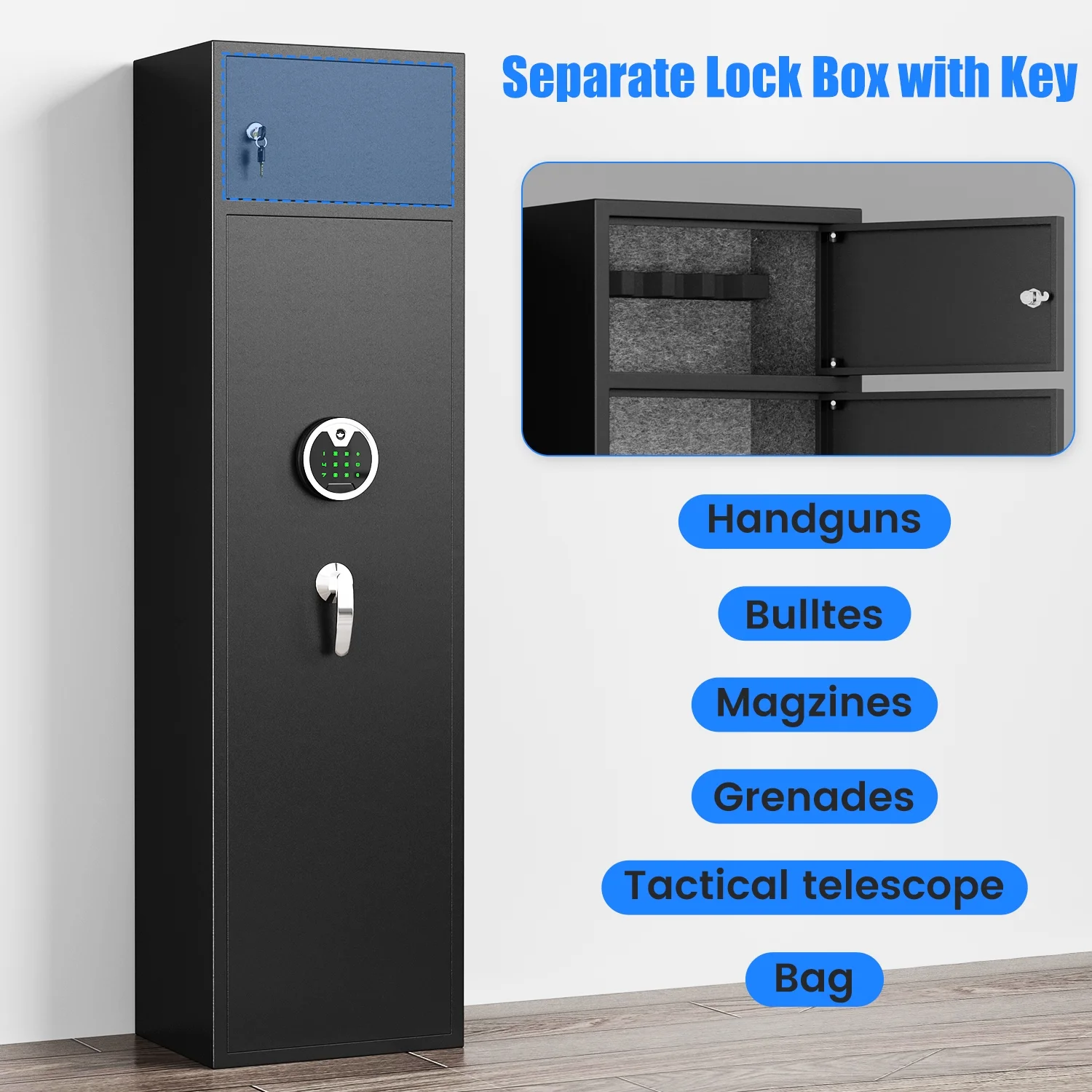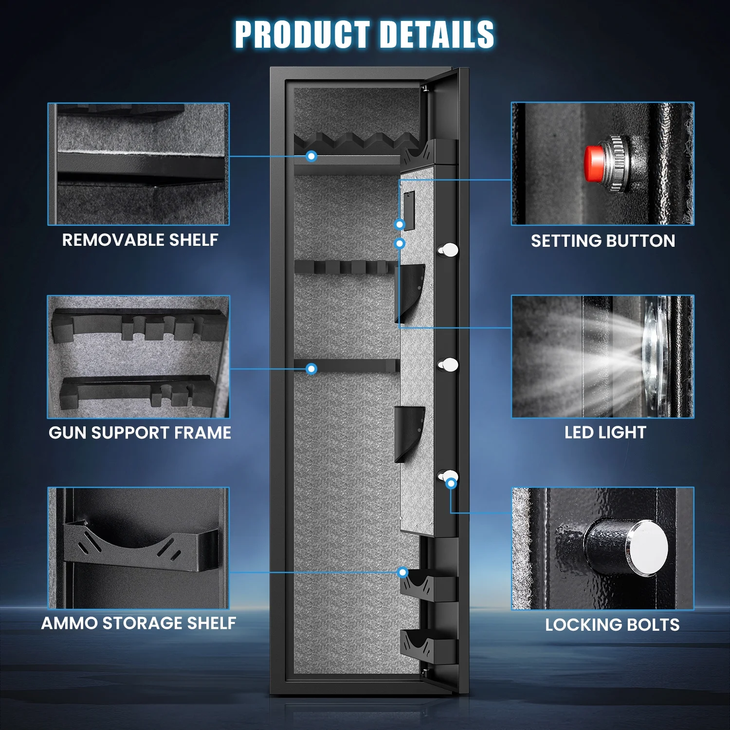 Omethey 4 - 5 Fireproof Gun Safe, Digital Shotgun Safe for Home, Long Gun Safe with Backlit Keypad & LED Light, Gun Cabinet with Removable Shelf, Adjustable Gun Support, Pistol Bag & Metal Storage Box