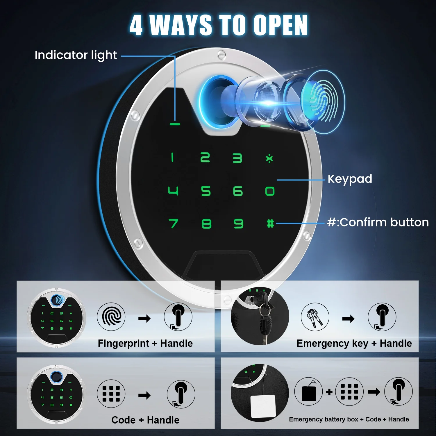 ��3 Ways to Open the Door��There are 3 ways to open the door��1. Code + Handle (Daily Use) 2. Emergency Key + Handle (First opening, forget the code or the batteries drain) 3. Emergency battry box + Code + Handle (Batteries drain)