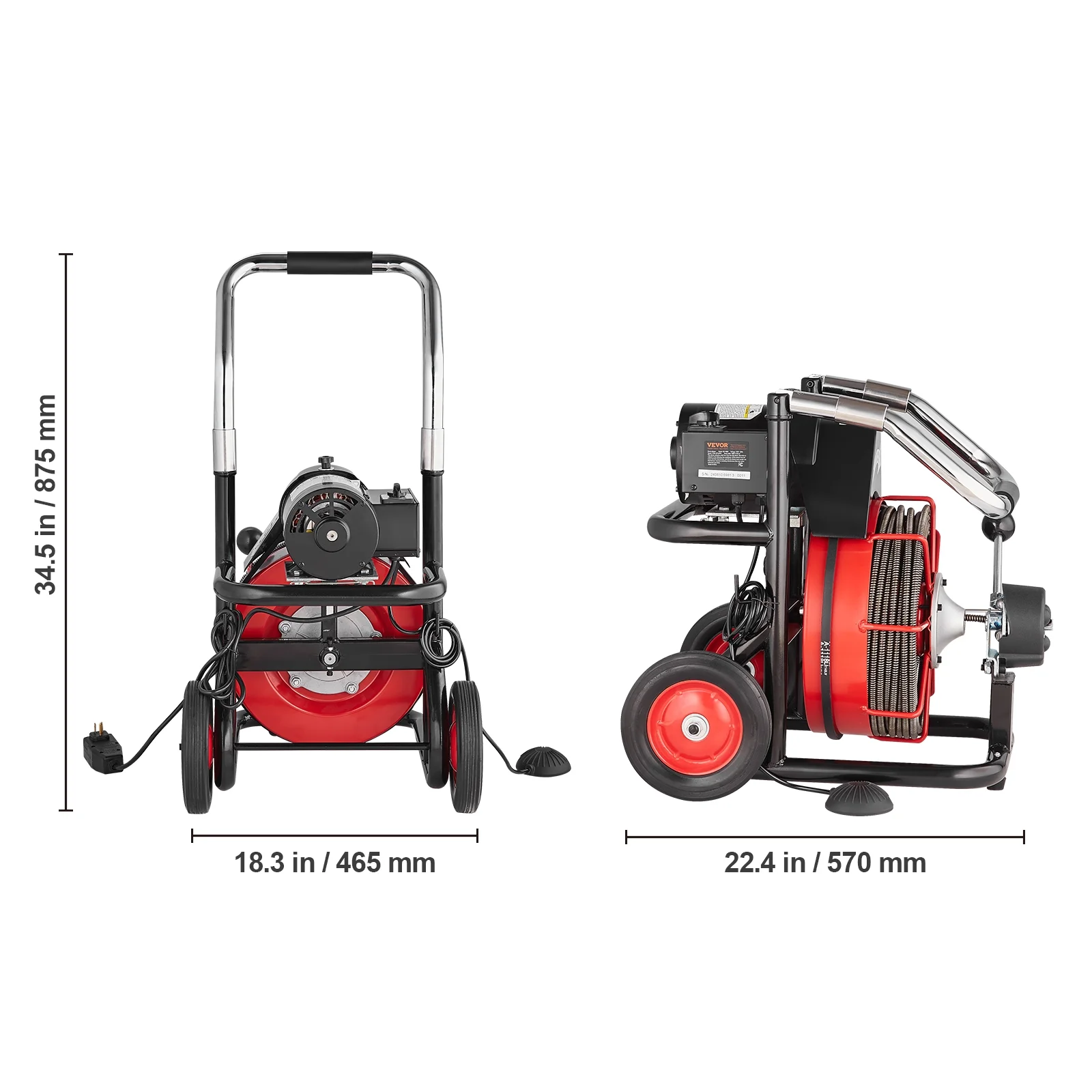 - Attack Stubborn Clogs: VEVOR drain cleaner machine features an automatic feed control system to power the cable in and out of drainage pipes. Enhanced with forward/reverse control and air-activated foot switch, managing the cable becomes more effortless