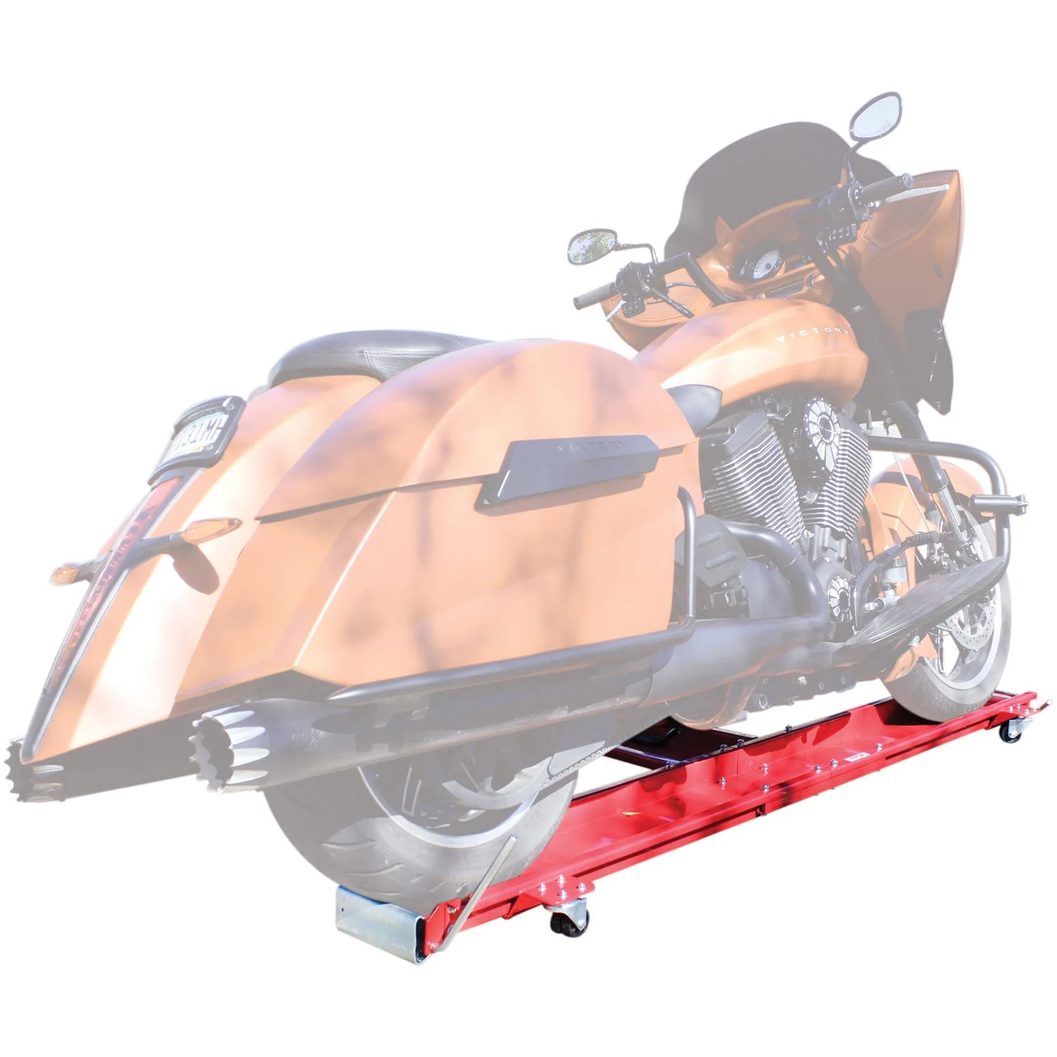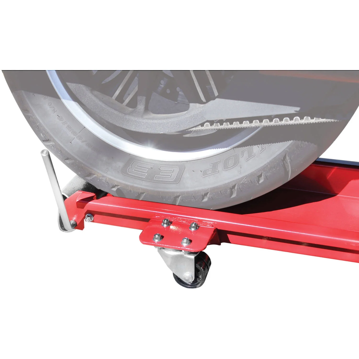 The Extreme Max Motorcycle Dolly is the perfect way to store your motorcycle and save space in your garage while you do so. Holding up to 1,250 pounds, the low-profile dolly allows the rider to roll their motorcycle straight on or off with minimal effort. Once on, unlock the caster wheels to freely glide the dolly anywhere in you garage. Stop pins at each and of the dolly chock the wheels and the side tray adjusts to fit kickstands on any standard-sized motorcycle.