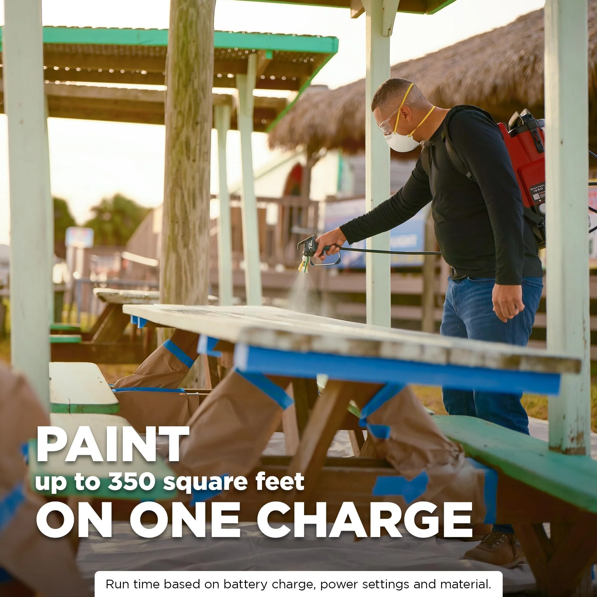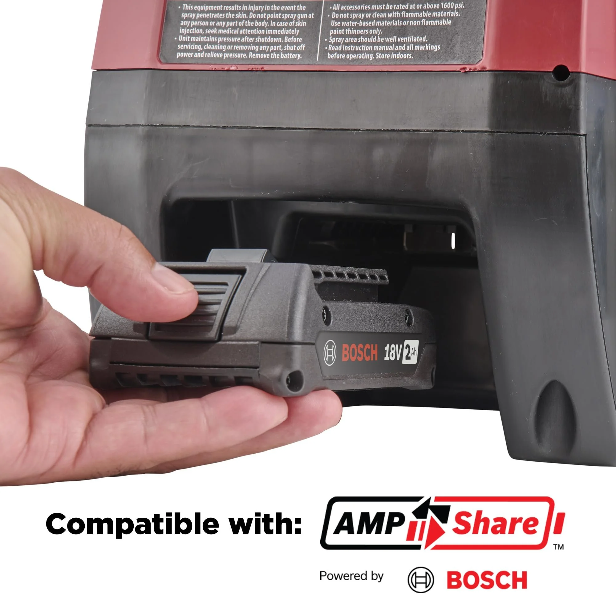 - CORDLESS PAINT SPRAYER: Battery powered sprayer allows you to go where your project takes you. Spray up to 350 square feed on a single charge. Includes two 2Ah batteries & charger, compatible with all AmpShare Powered by Bosch tools