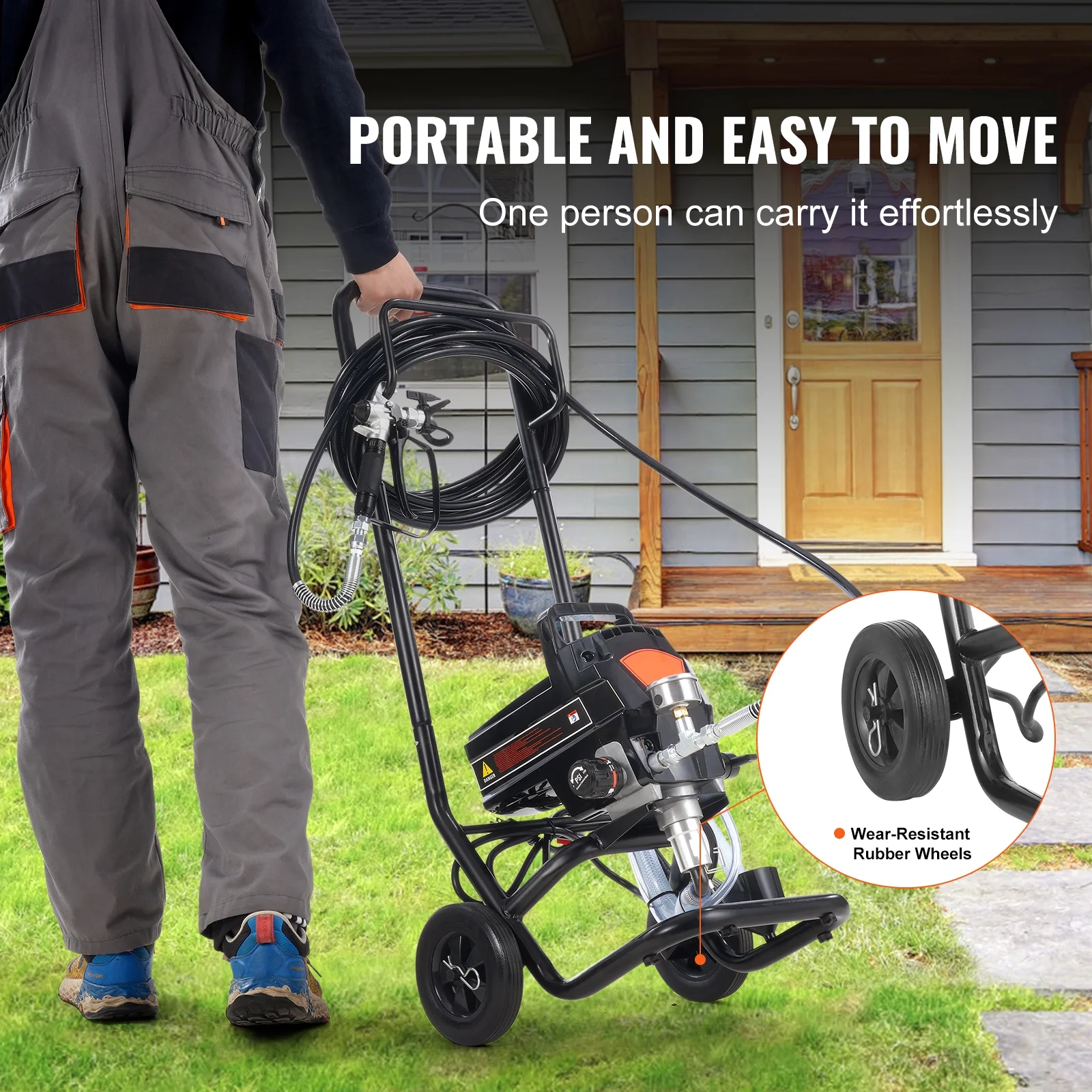 - User-Friendly Design: The wheeled design allows you to easily move the paint airless sprayer to any location. The pump body is detachable for easy cleaning with the included cleaning brush, making it easy to clean crevices and corners. You can also use the extension pole for high or ground-level work, reducing the burden of bending or climbing.