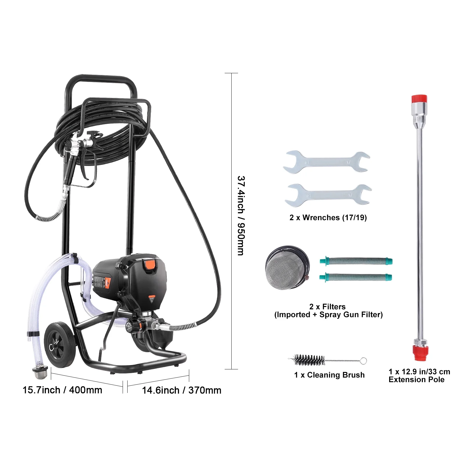 - User-Friendly Design: Easily move the KFFKFF paint airless sprayer to any location with its wheeled design. The detachable pump body allows for easy cleaning using the included brush, making it a breeze to clean crevices and corners. The extension pole is also provided for high or ground-level work, reducing the need for bending or climbing.