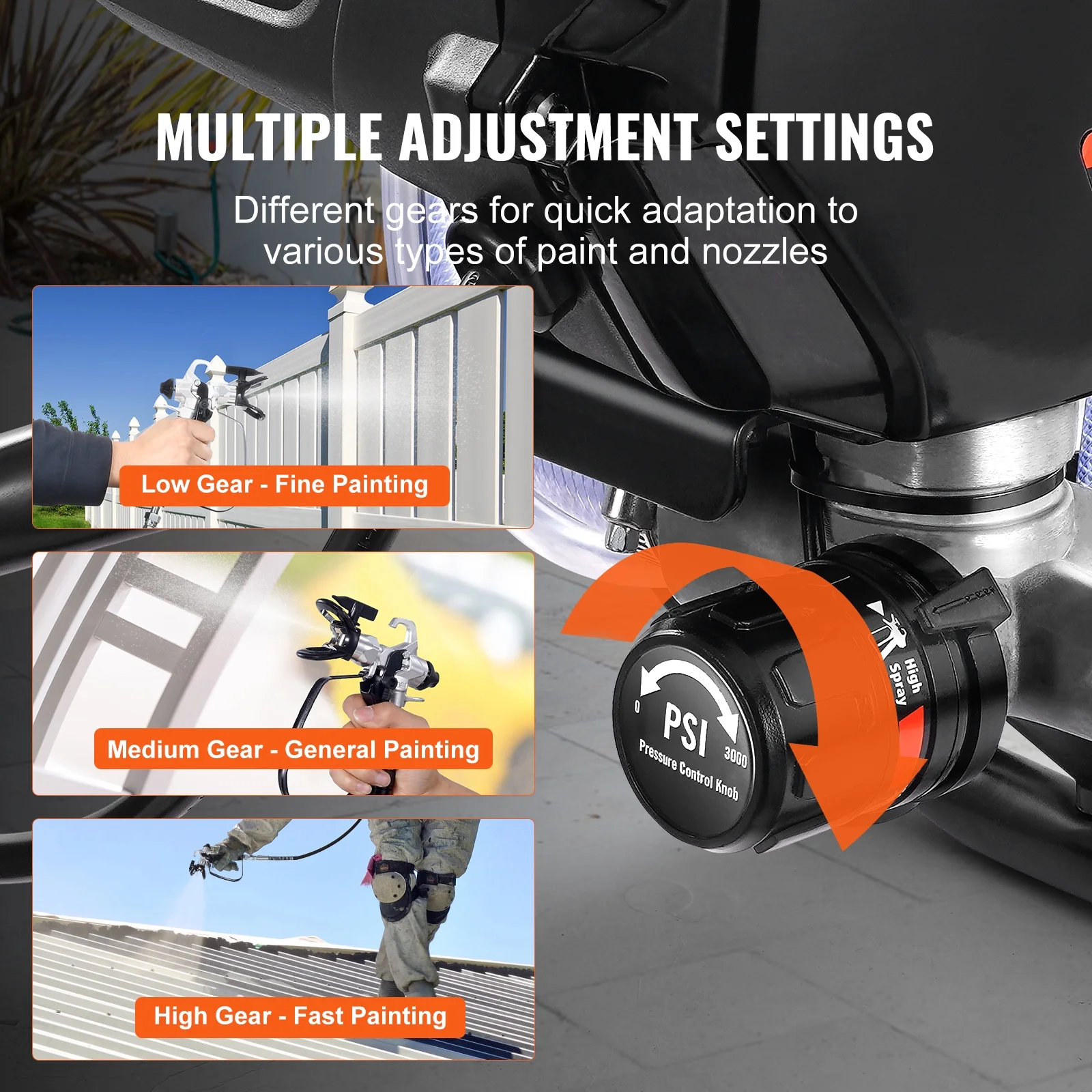 - Infinite Speed Control: Adjust the speed of the electric paint sprayer according to different painting scenarios, material types, and thickness requirements. Use the low gear when covering large areas to reduce paint consumption and lower costs.