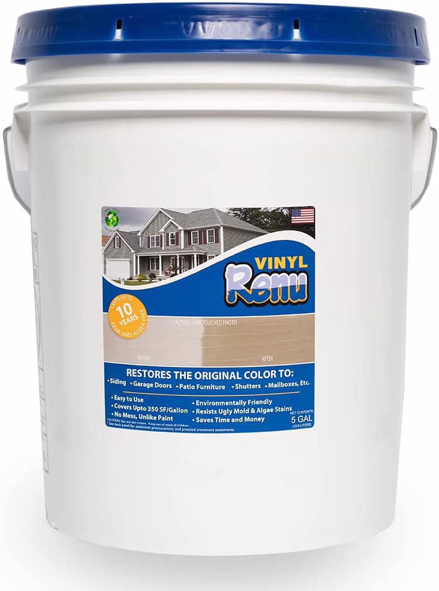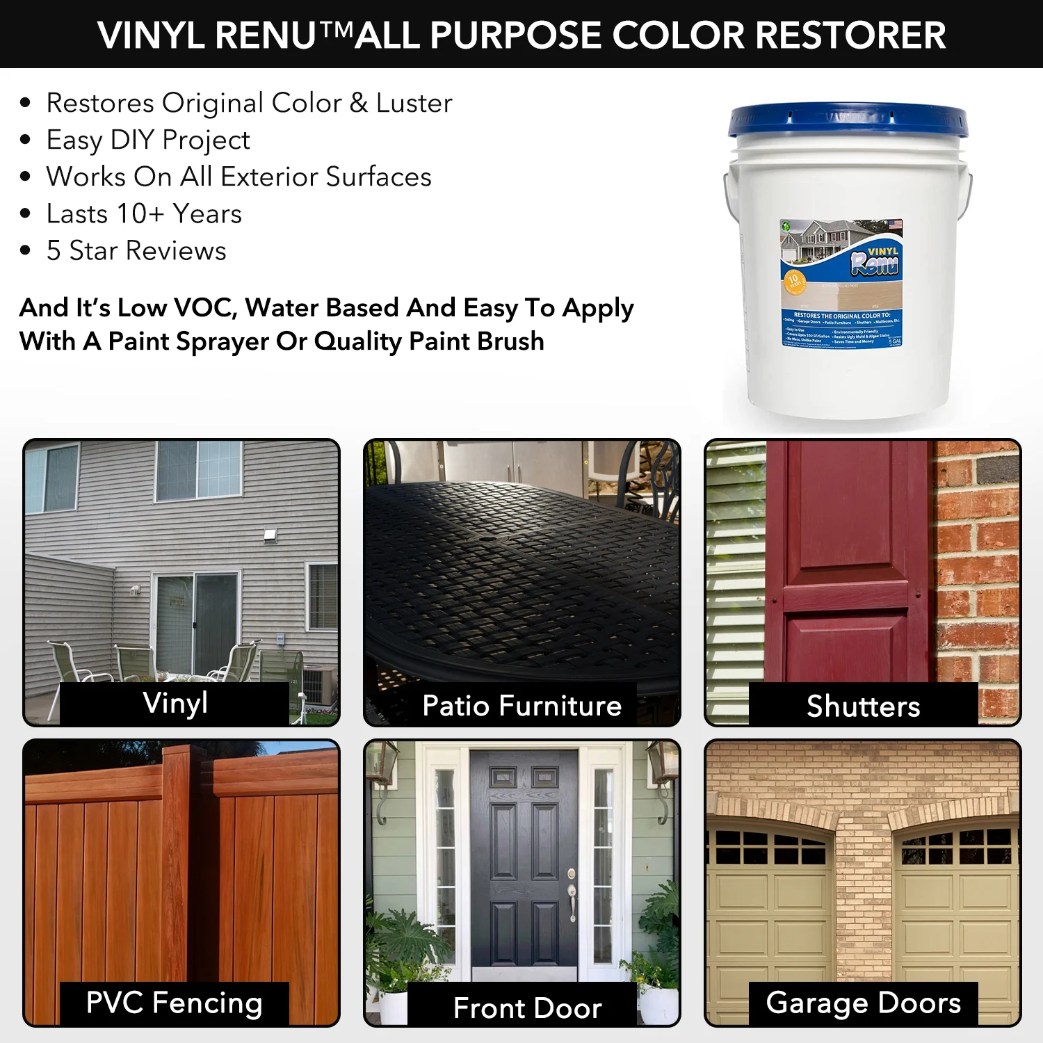 Vinyl Renu Premium Color Restorer Restores Original Color and Beauty to Vinyl, Aluminum, Hardie Boards Works Great on All Doors & Faded Surfaces Rejuvenates Plastics & Metals Lasts 10+Years 5G Pail