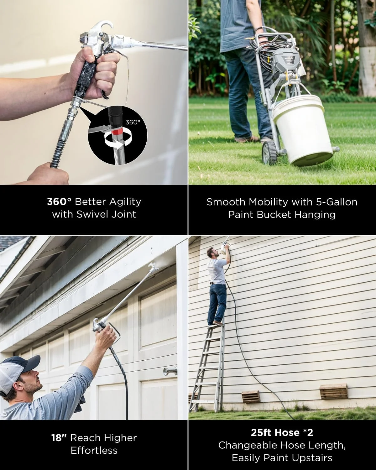 - Tackle multi-story homes with ease using the two connectable 25-foot hoses, which allow the sprayer to support up to 100 feet of paint hose, and reduce strain on your back with the included 18-inch tip extension.