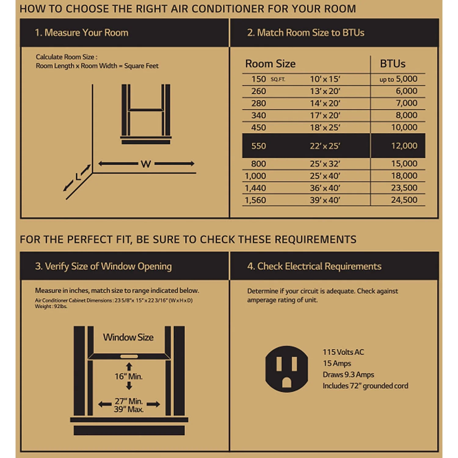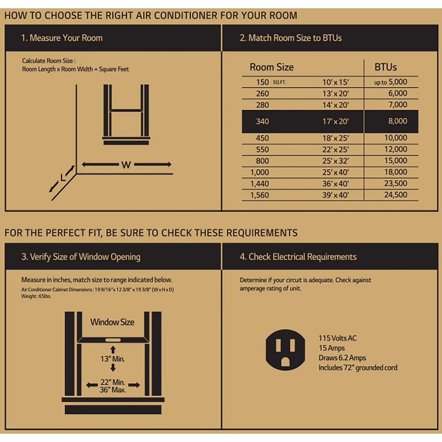- LG 8,000 BTU 340 sq ft Window Air Conditioner with Remote Control,White,LW8016ER