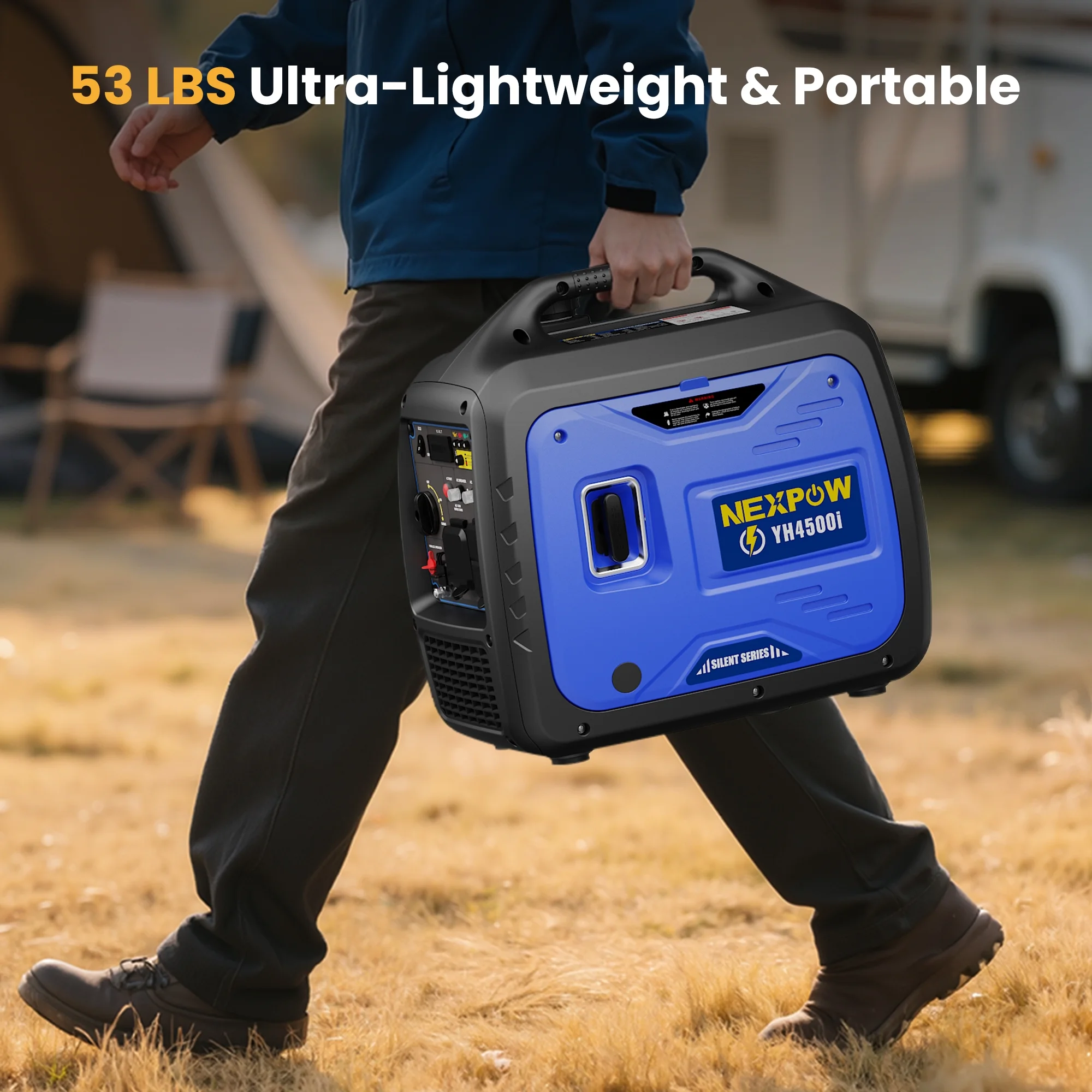 - ��Ultra-Lightweight, Compact, and Portable��Measuring 18.1��11.4��17.9 inches and tipping the scales at just 39.7 lbs, the NEXPOW generator is significantly lighter than traditional generators with the same power output. Its built-in sturdy handle ensures effortless assembly, hassle-free transport, and reliable portability for camping trips and extended adventures. Enjoy on-the-go power wherever you roam, with the confidence of uninterrupted electricity for worry-free travels.