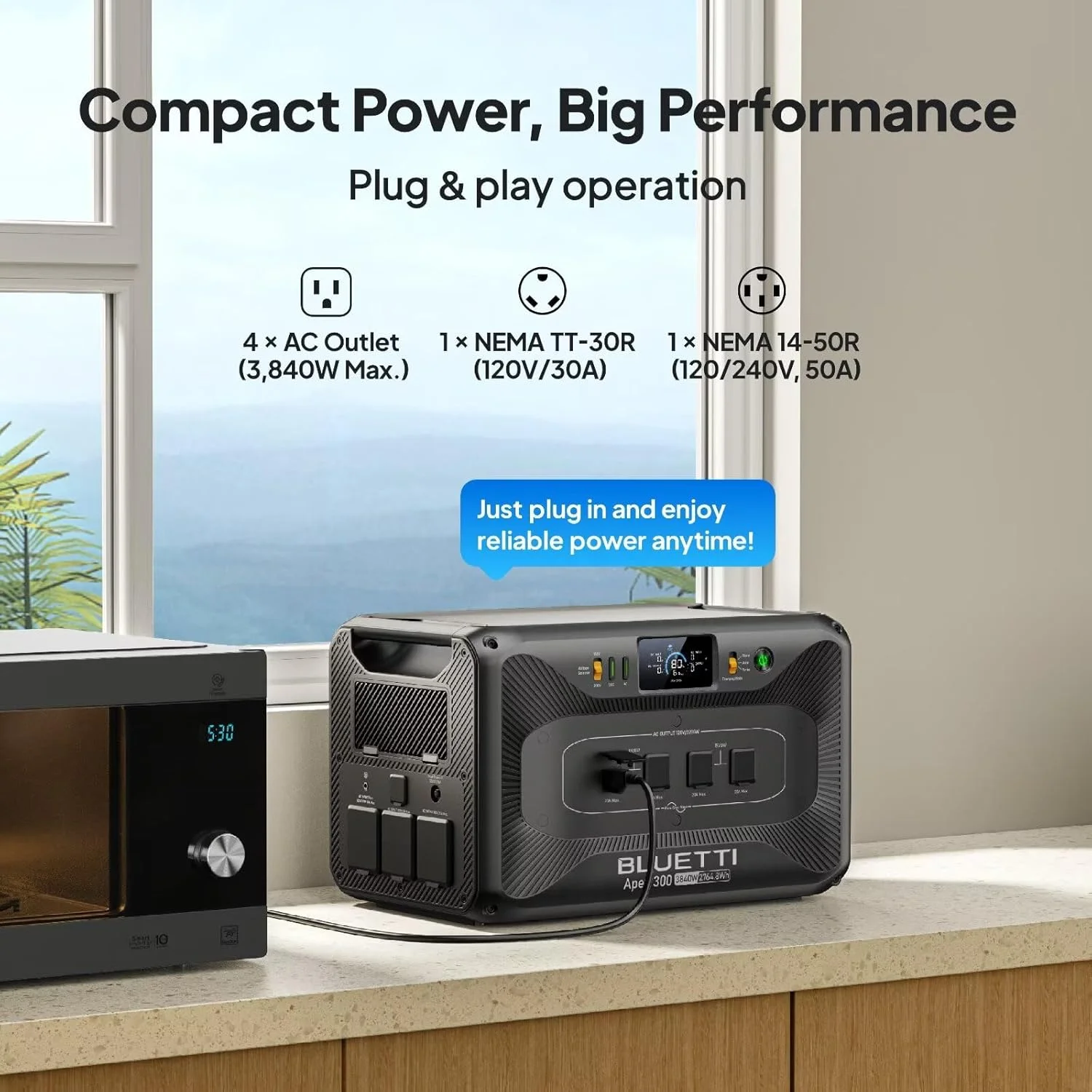 - ?Massive Power Capacity �C 2764.8Wh LiFePO4 battery with 3840W rated output (7680W surge) delivers reliable backup power for home, RV, and off-grid living.