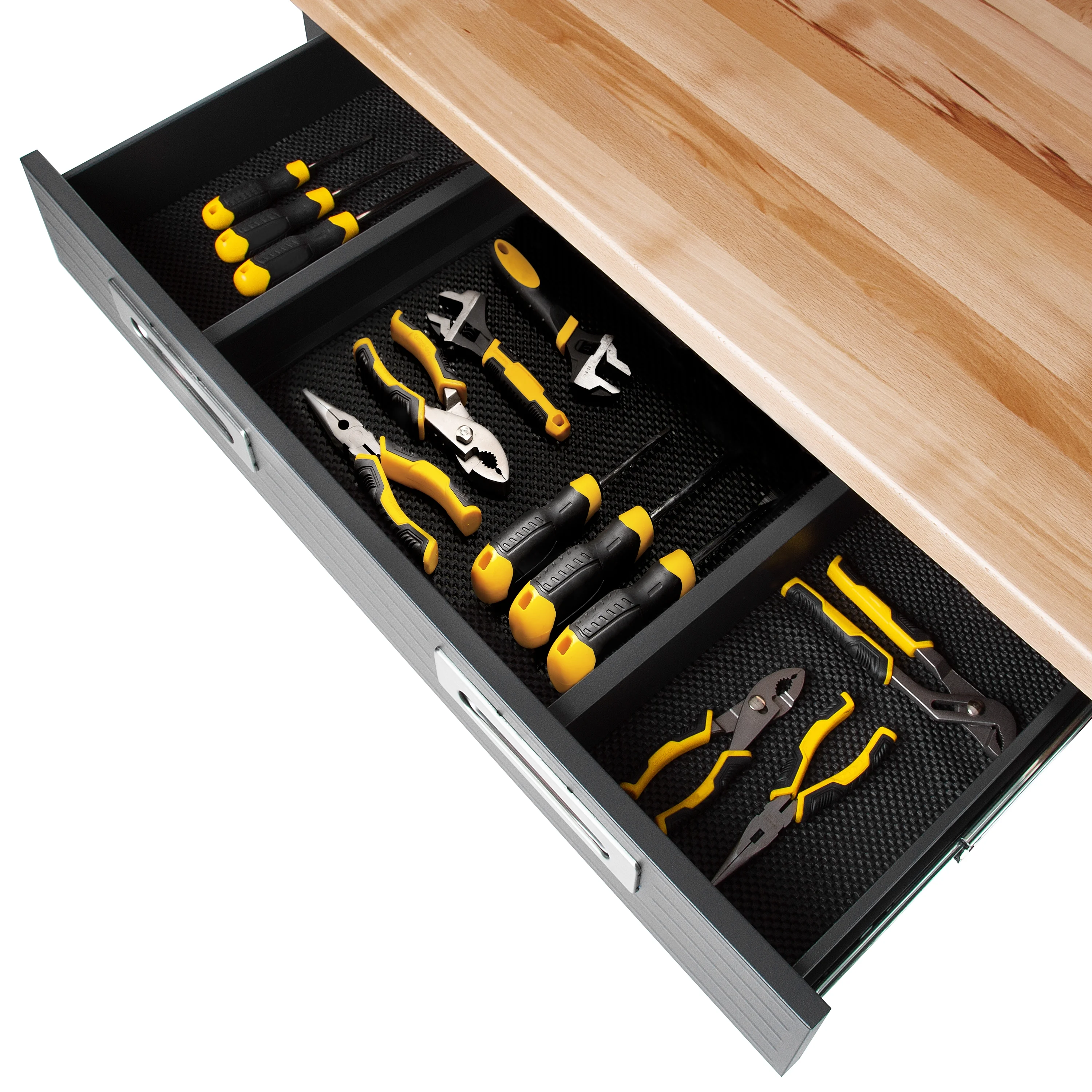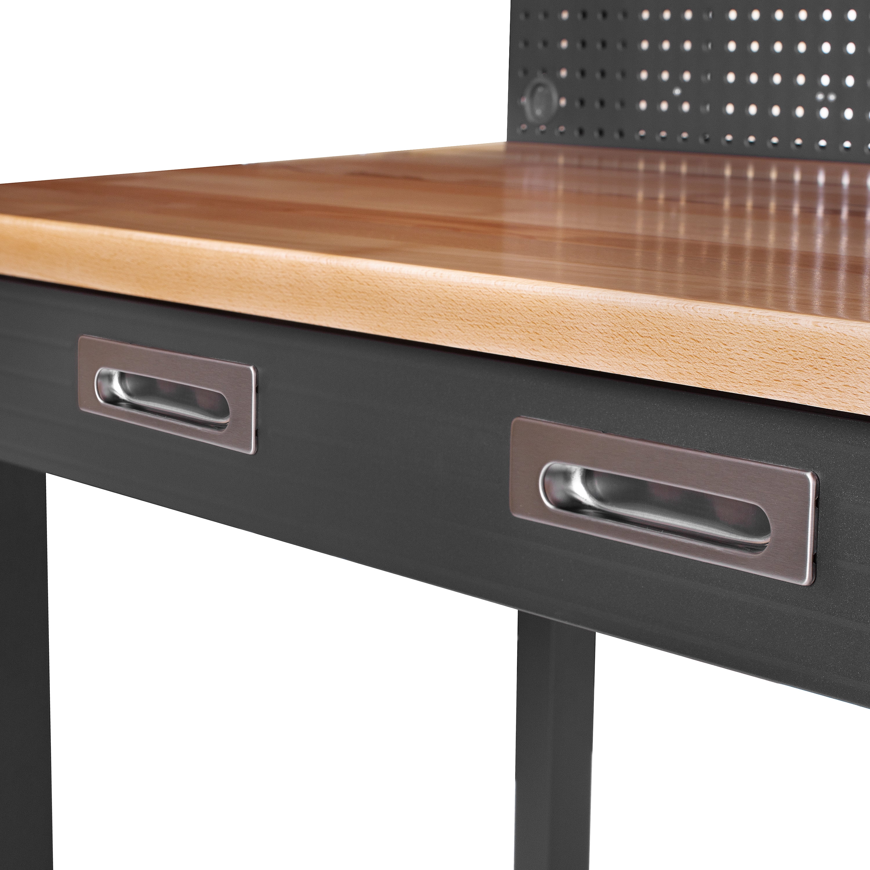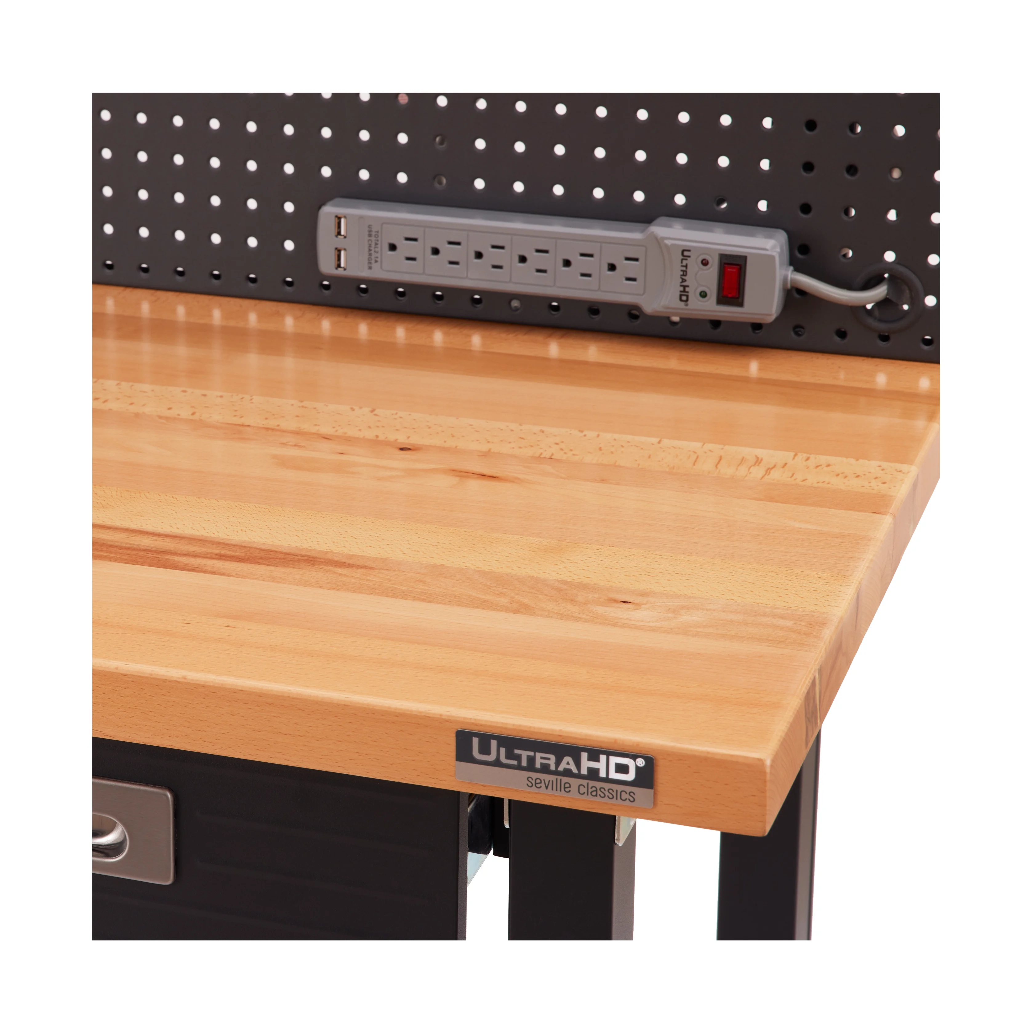 - Thick Solid-Wood Top - Work with confidence on the solid 1.5"-thick beech wood worksurface. Designed for heavy-duty to accommodate power tools, mounts, and clamps safely.
