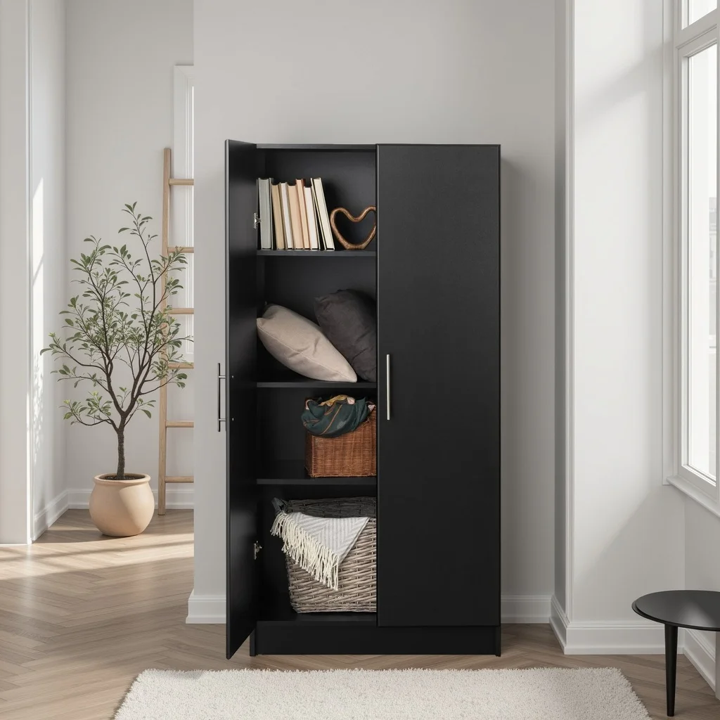 - VERSATILE TALL STORAGE CABINET: This tall storage cabinet features two soft-edge doors on 6-way European style hinges. Inside, adjustable shelves and a fixed shelf make it a perfect choice as kitchen cabinet storage or a bathroom storage cabinet.