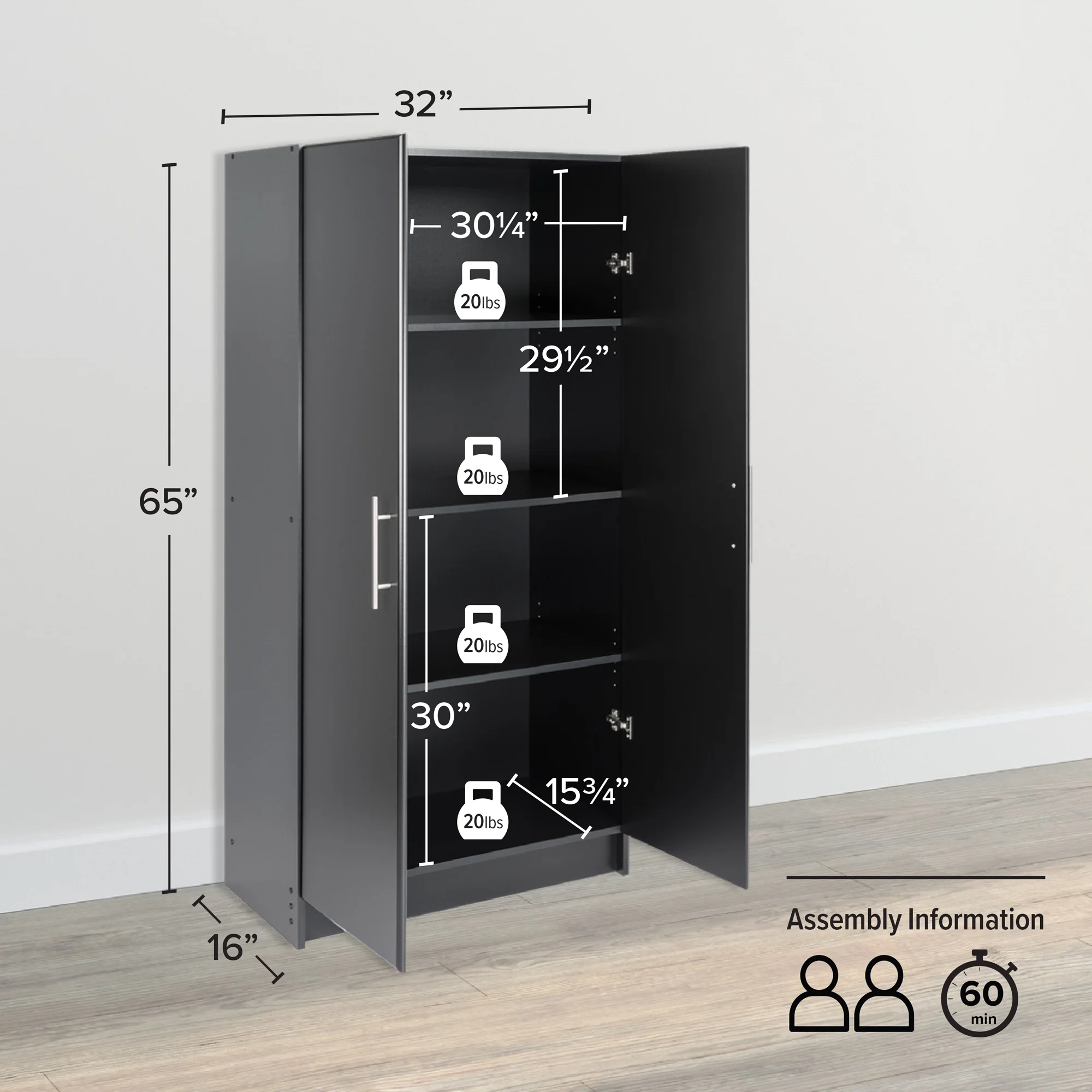 - USER-FRIENDLY PREPAC CABINET: This freestanding storage cabinet comes with an easy-to-follow instruction booklet for assembly. With compact dimensions (16" D x 32" W x 65" H), it's an ideal addition to your home organization effort with use as a garage cabinet or laundry room cabinet.