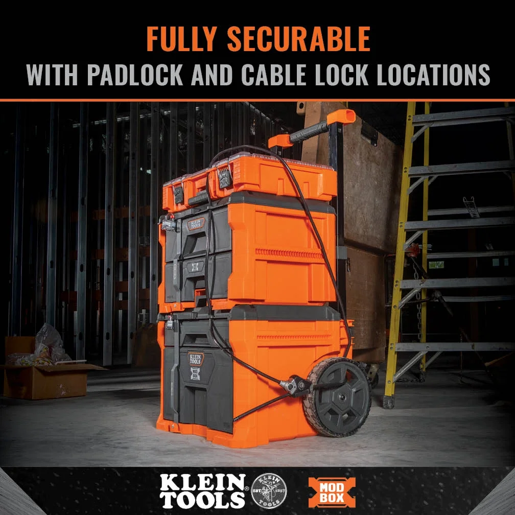 - MODbox Rolling Drawer Box has a large-capacity lower drawer that fits bulky power tools, the compact top drawer fits accessories, batteries, and smaller items, both accessible so you stay stacked