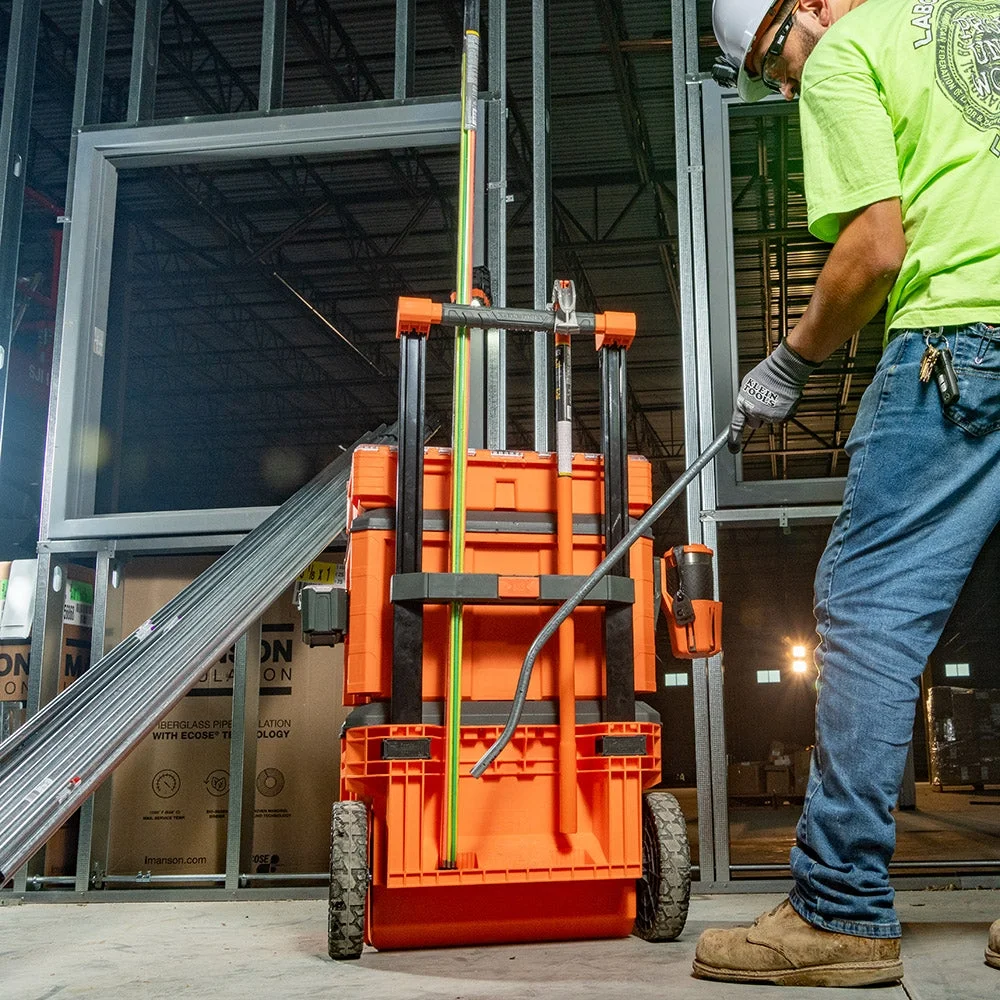 - Built-in side rails for attachments, stacking capability on top, removable telescoping handle for tight spaces, and convenient back storage make this mobile workstation fully adaptable to any jobsite