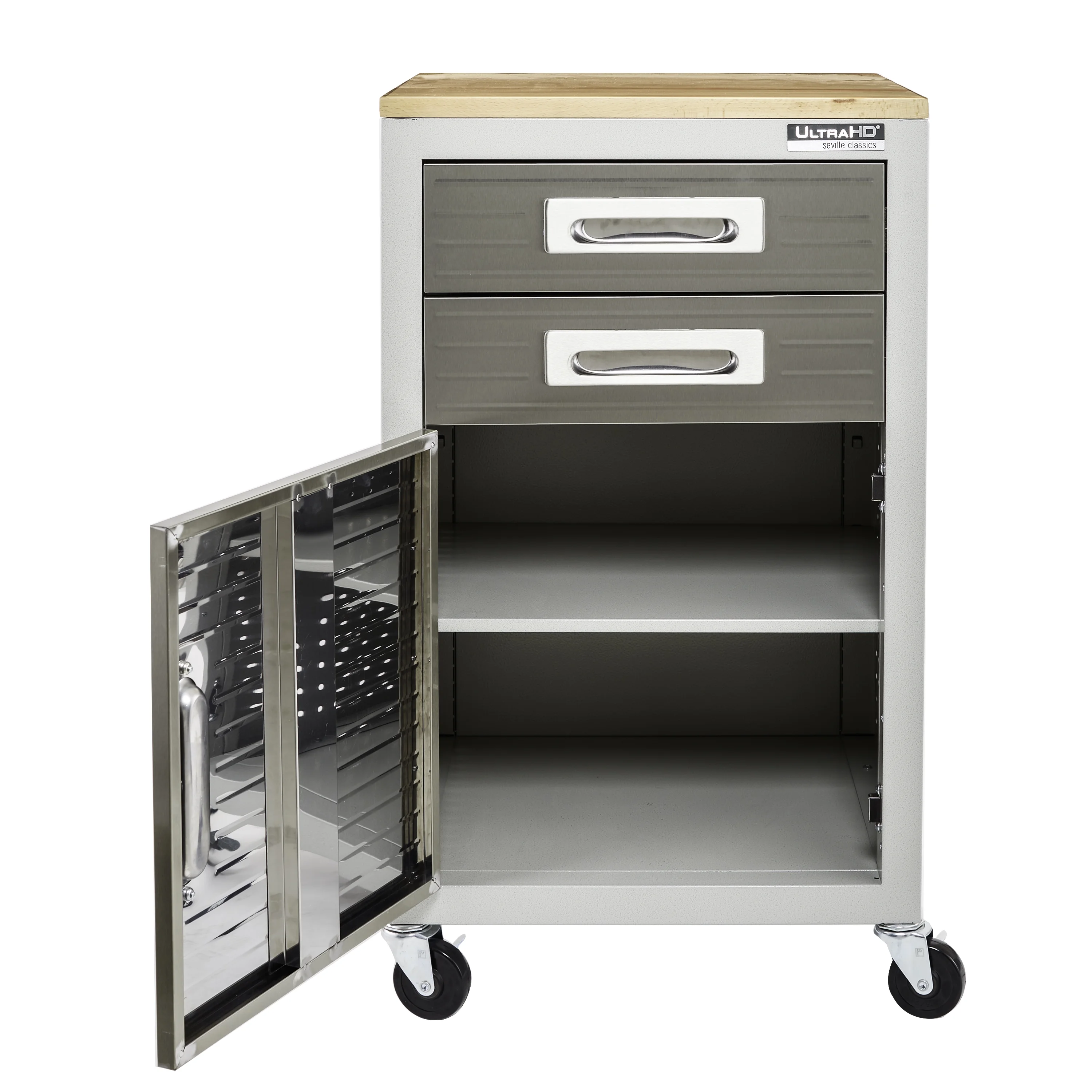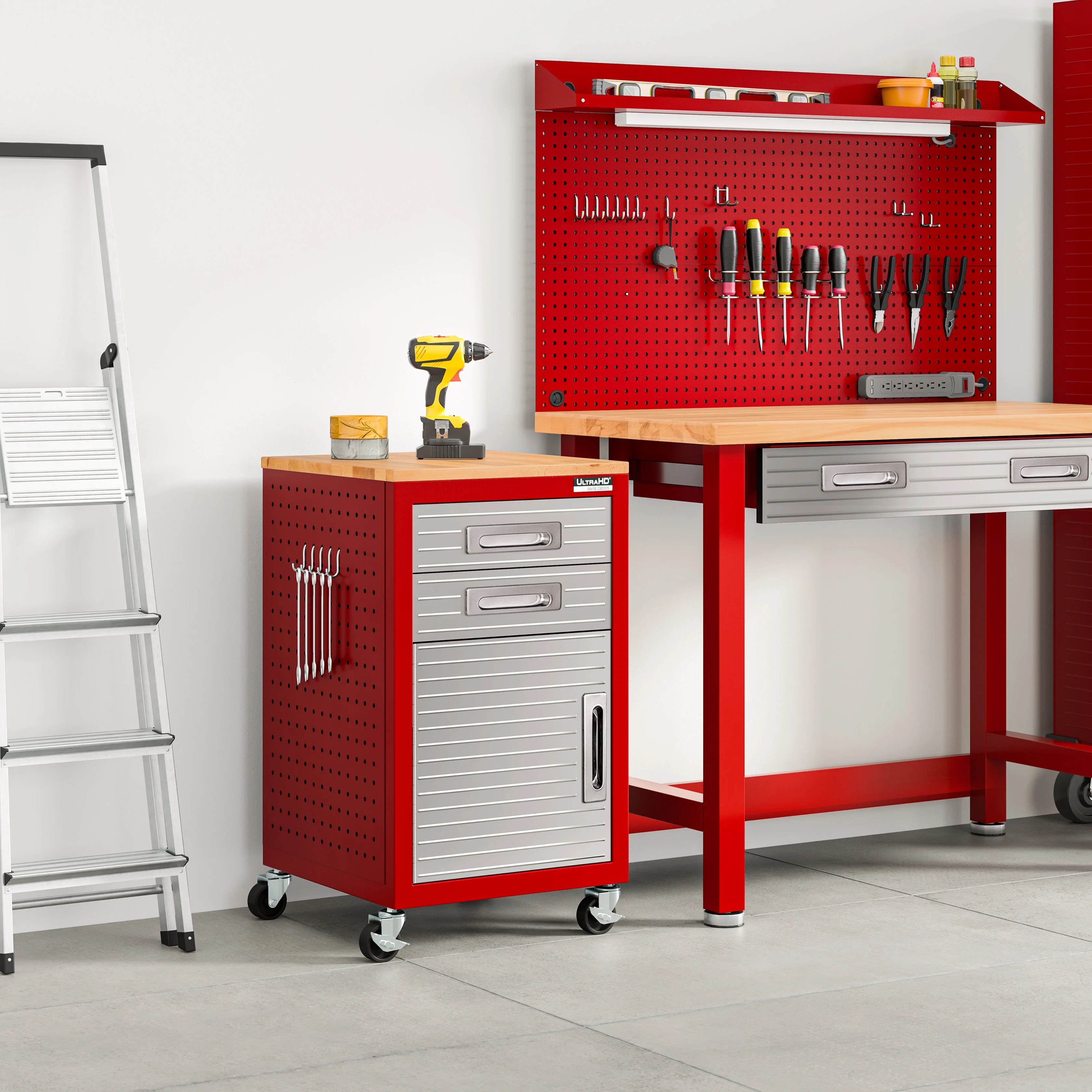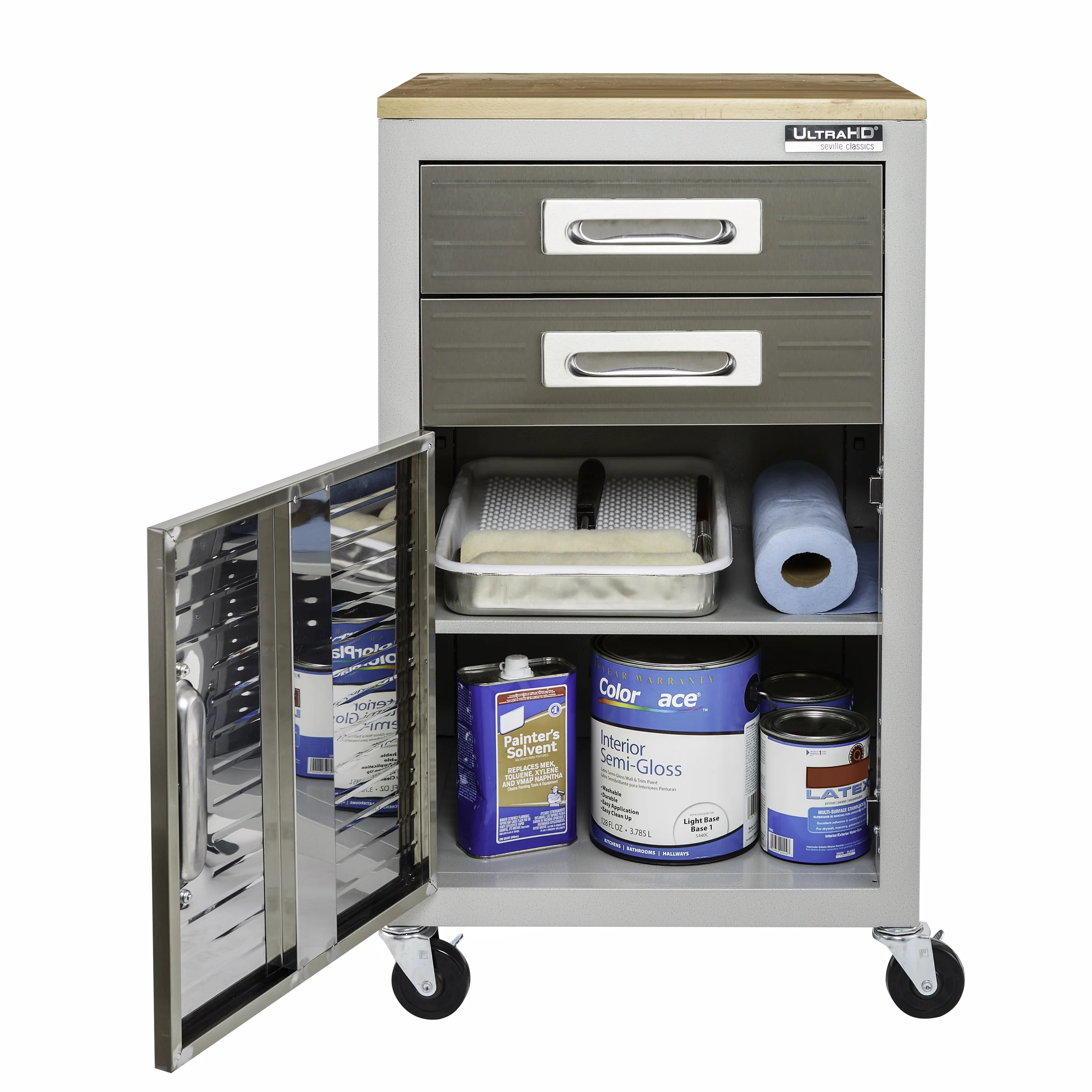 - Heavy-duty steel body with solid steel panels to keep your supplies safe