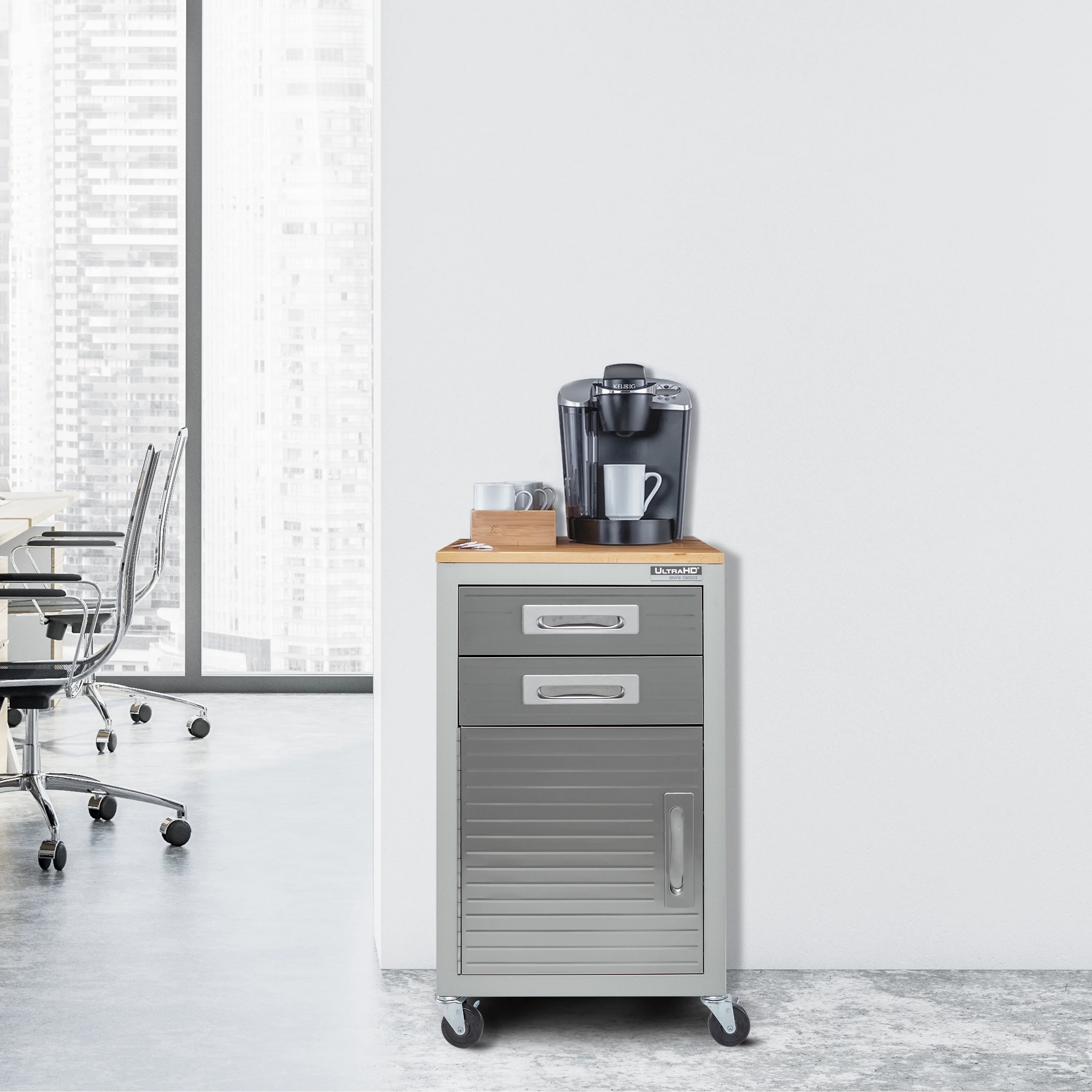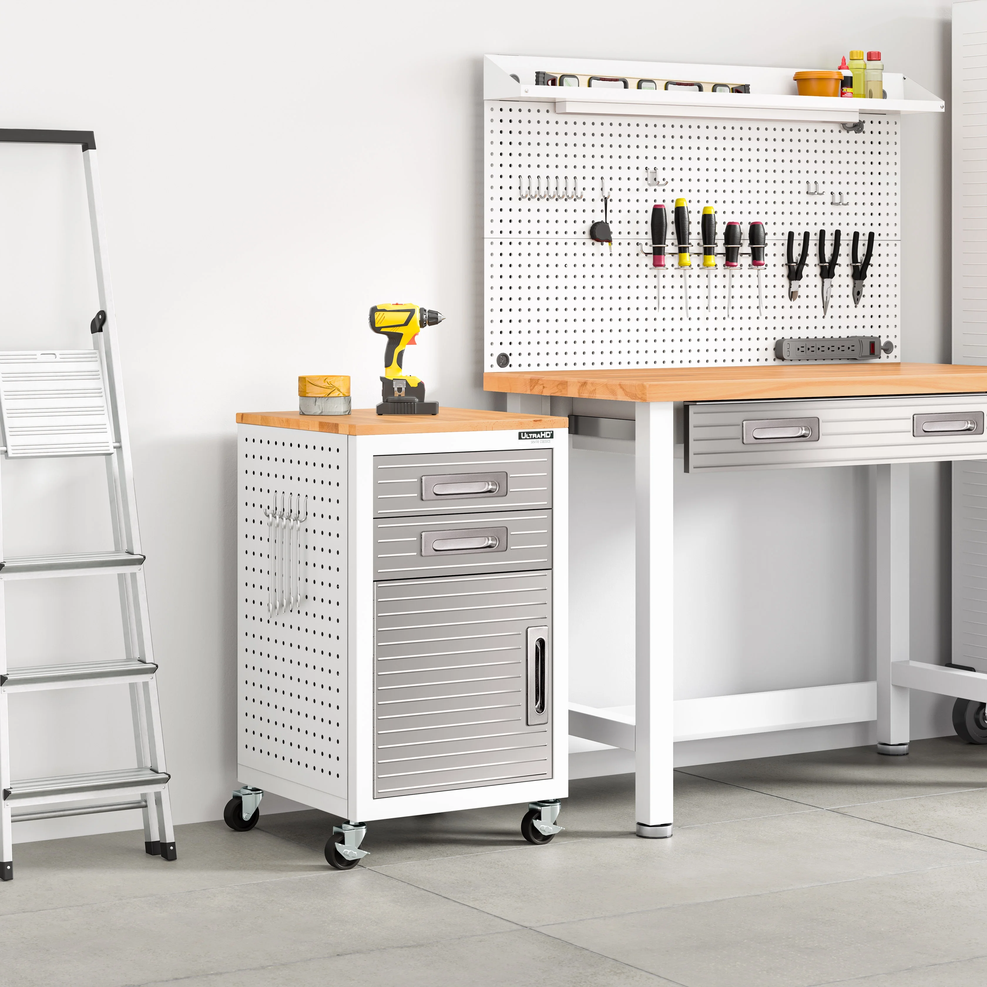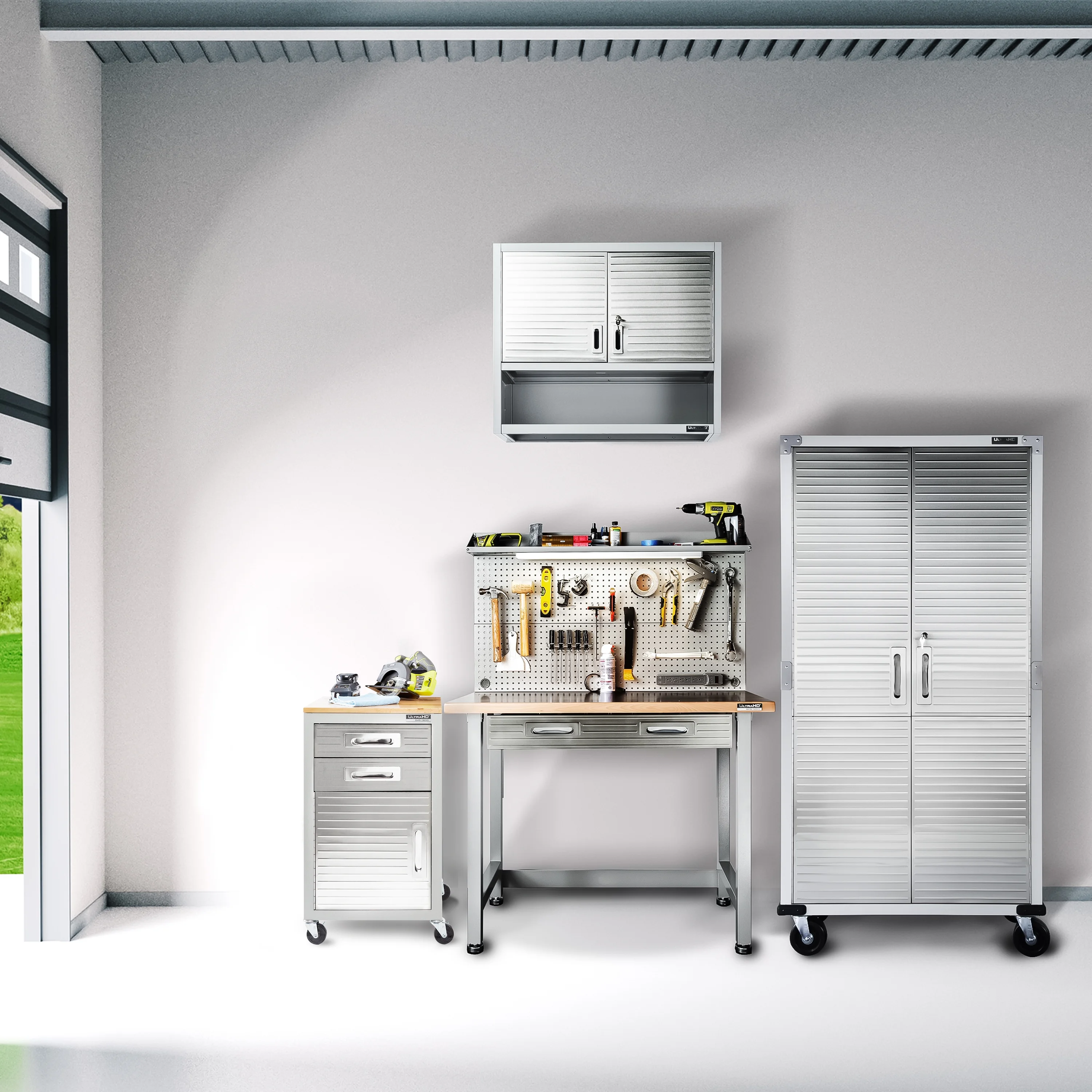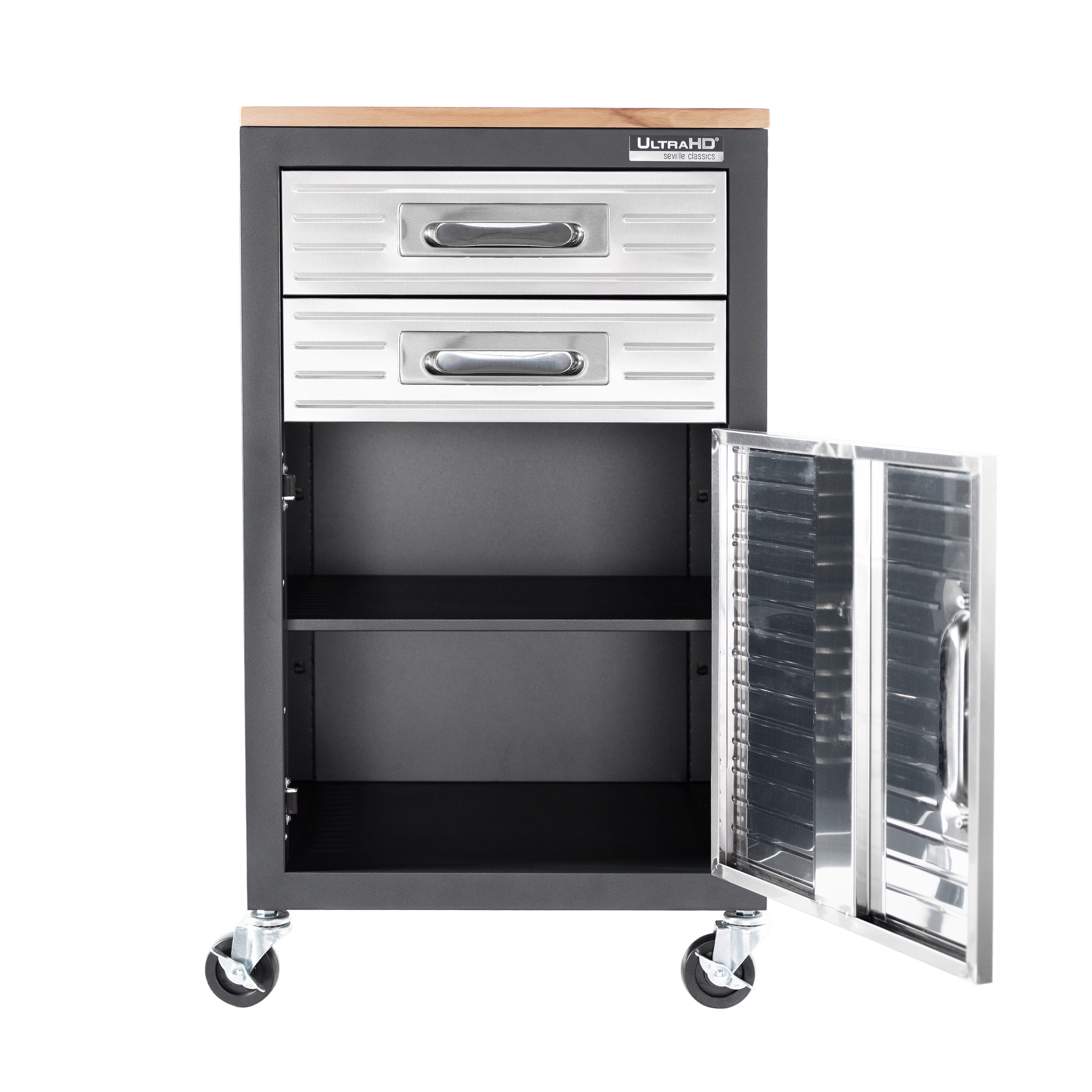 - Heavy-duty steel body with solid steel panels to keep your supplies safe