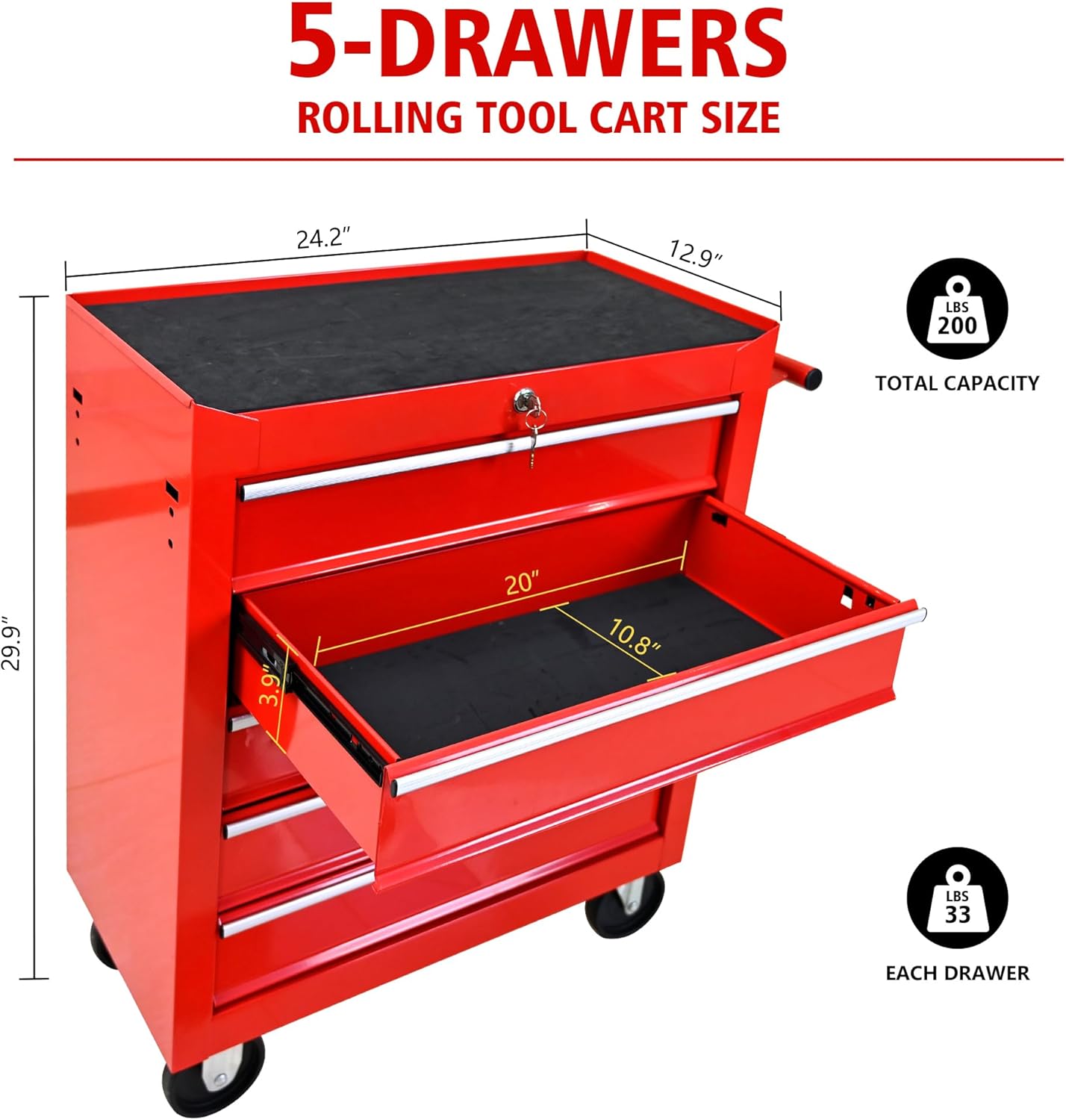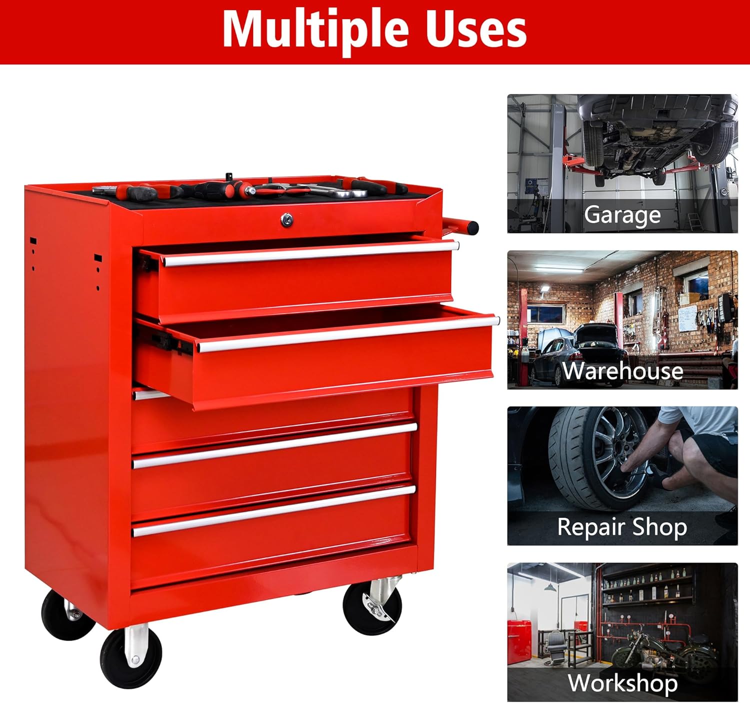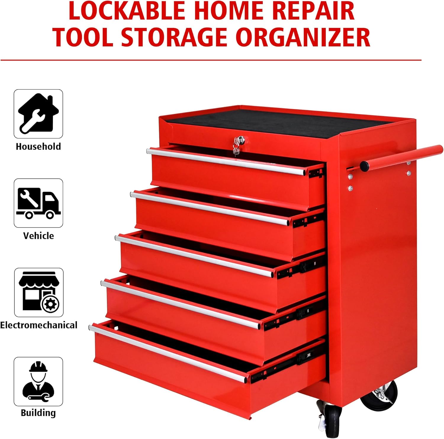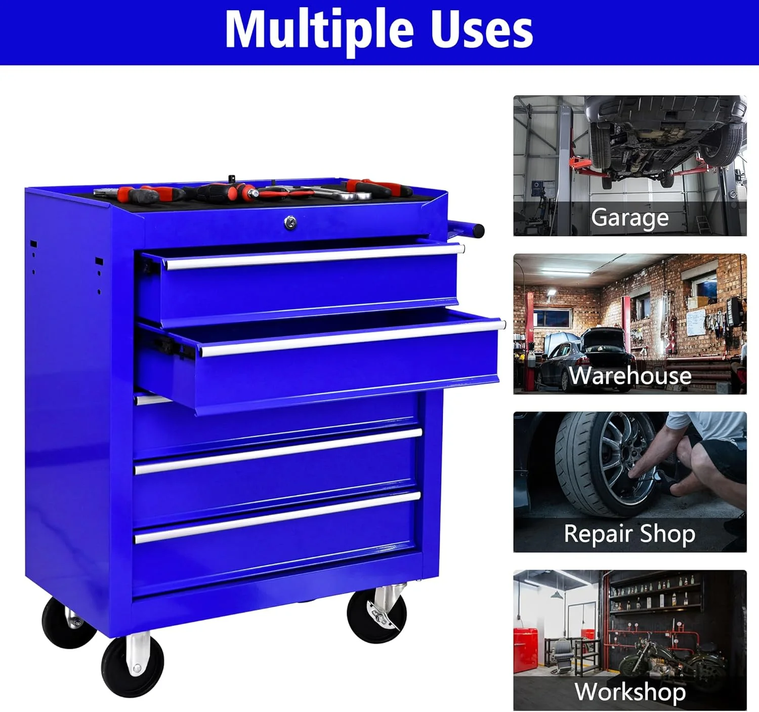 - Versatile Tool Management: Ideal for garages, workshops, and home craft spaces, this 5-drawer tool chest is a practical solution for DIY projects or professional repairs, offering organized and tidy tool management across various environments.