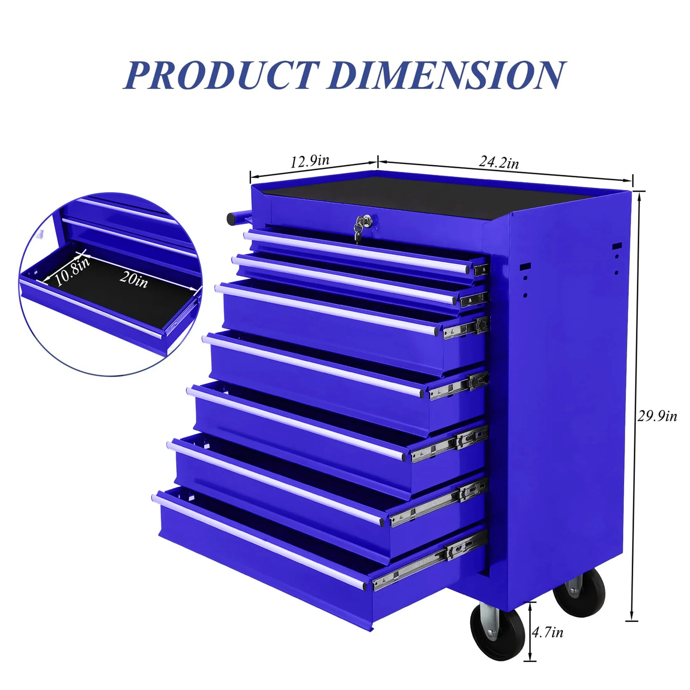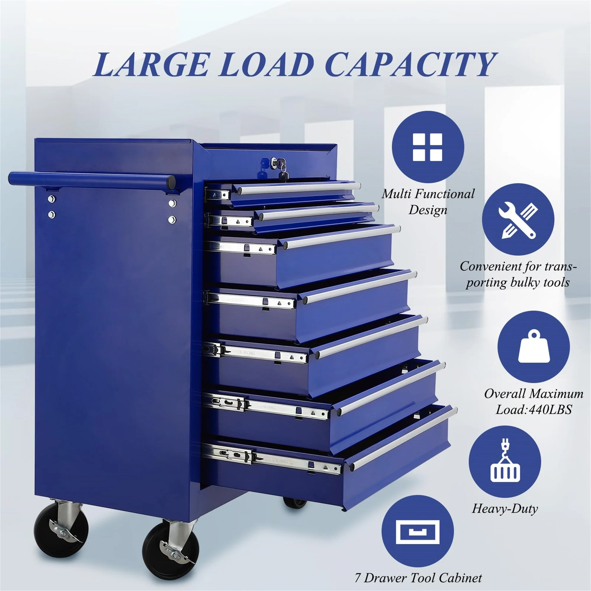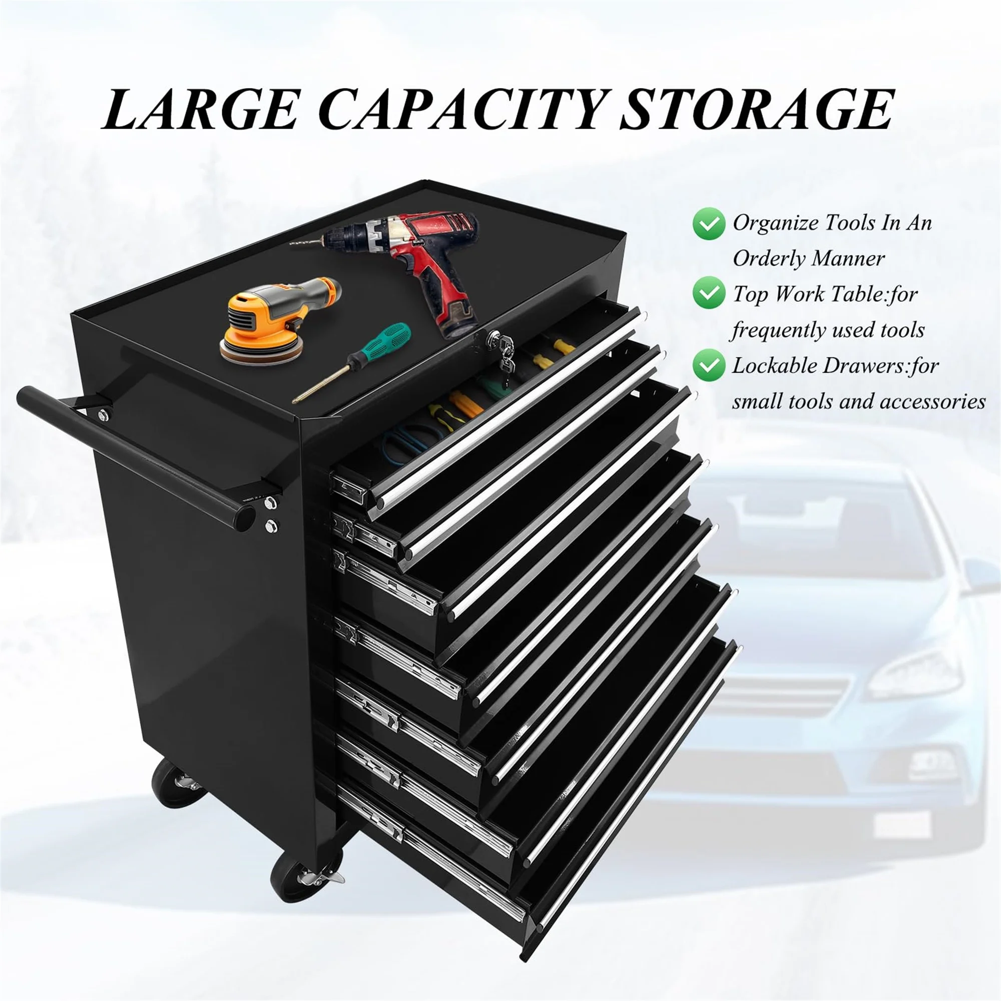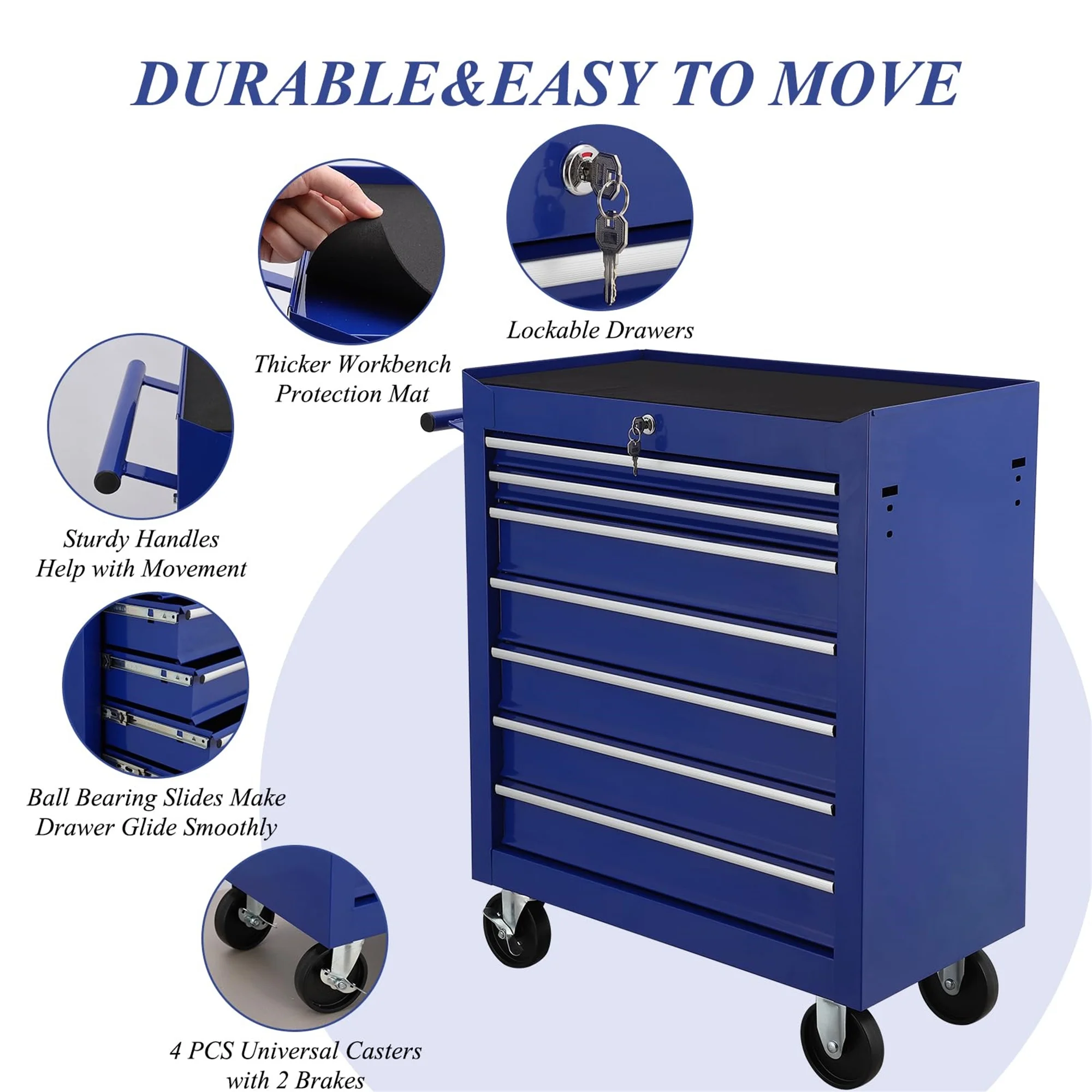 - LARGE HIGH CAPACITY - The rolling toolbox has 7 sliding drawers, to store different size tools and meet your needs. Each drawer is designed with a liner to prevent scratches.