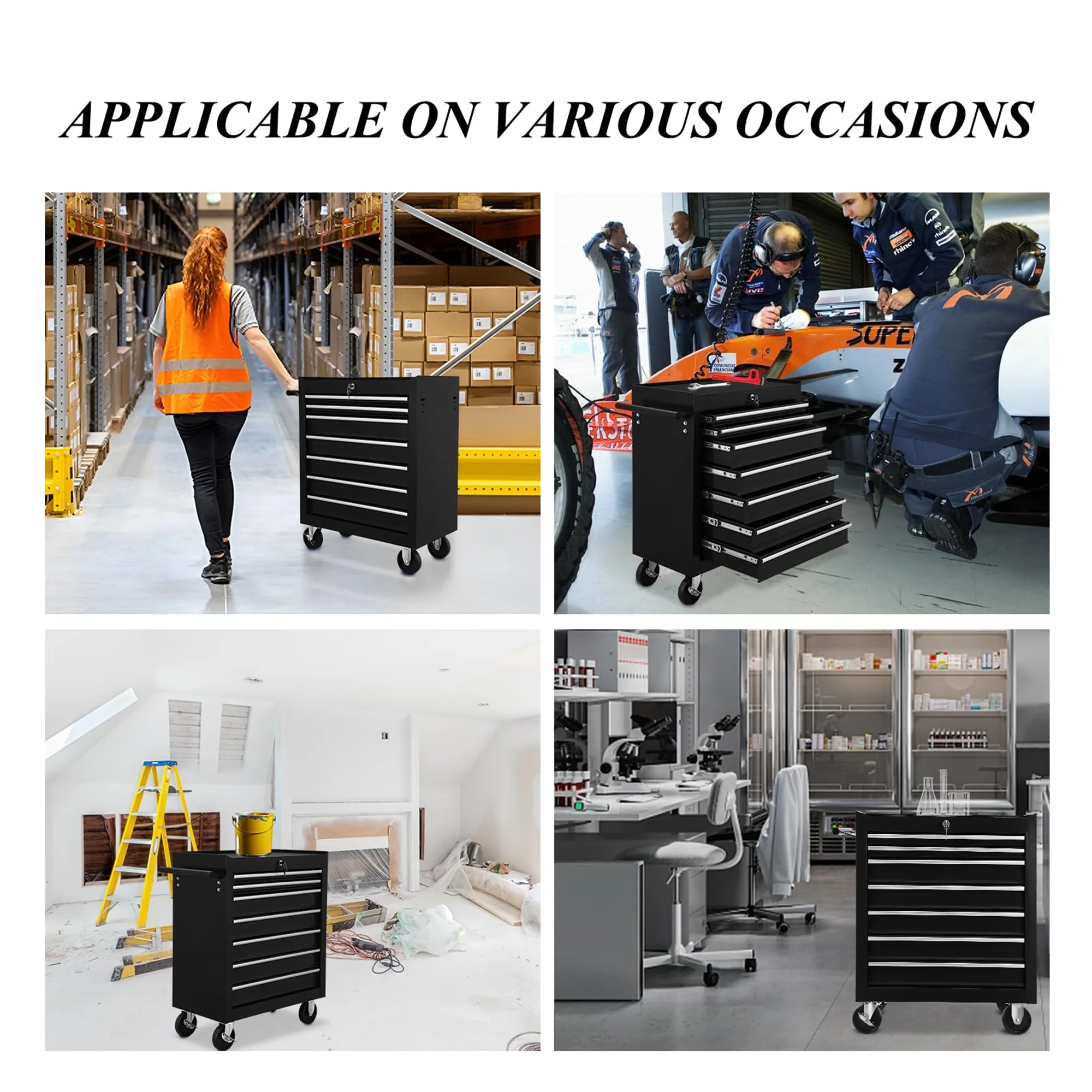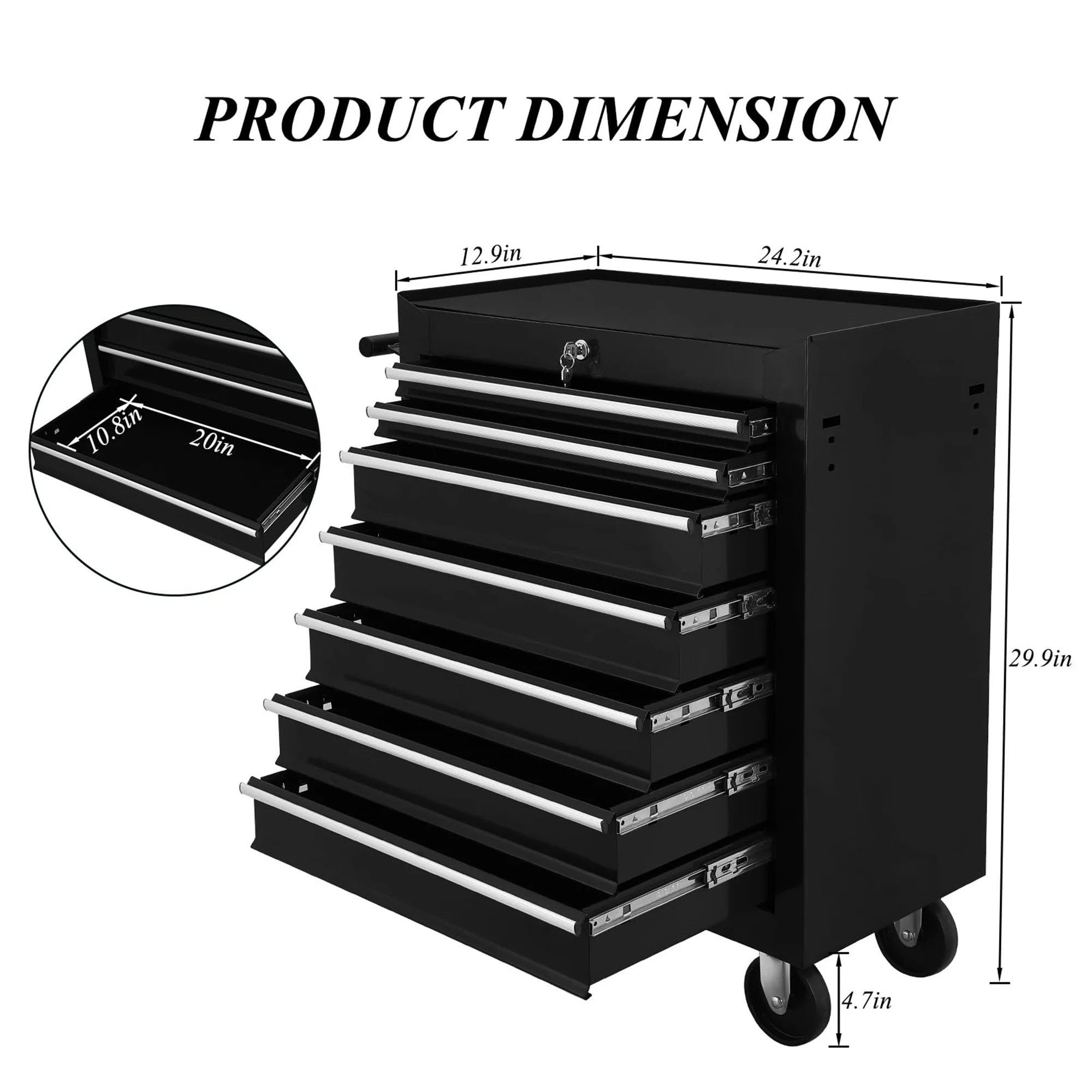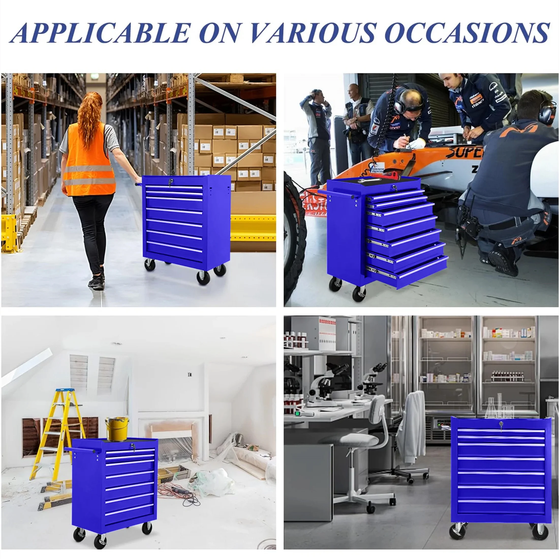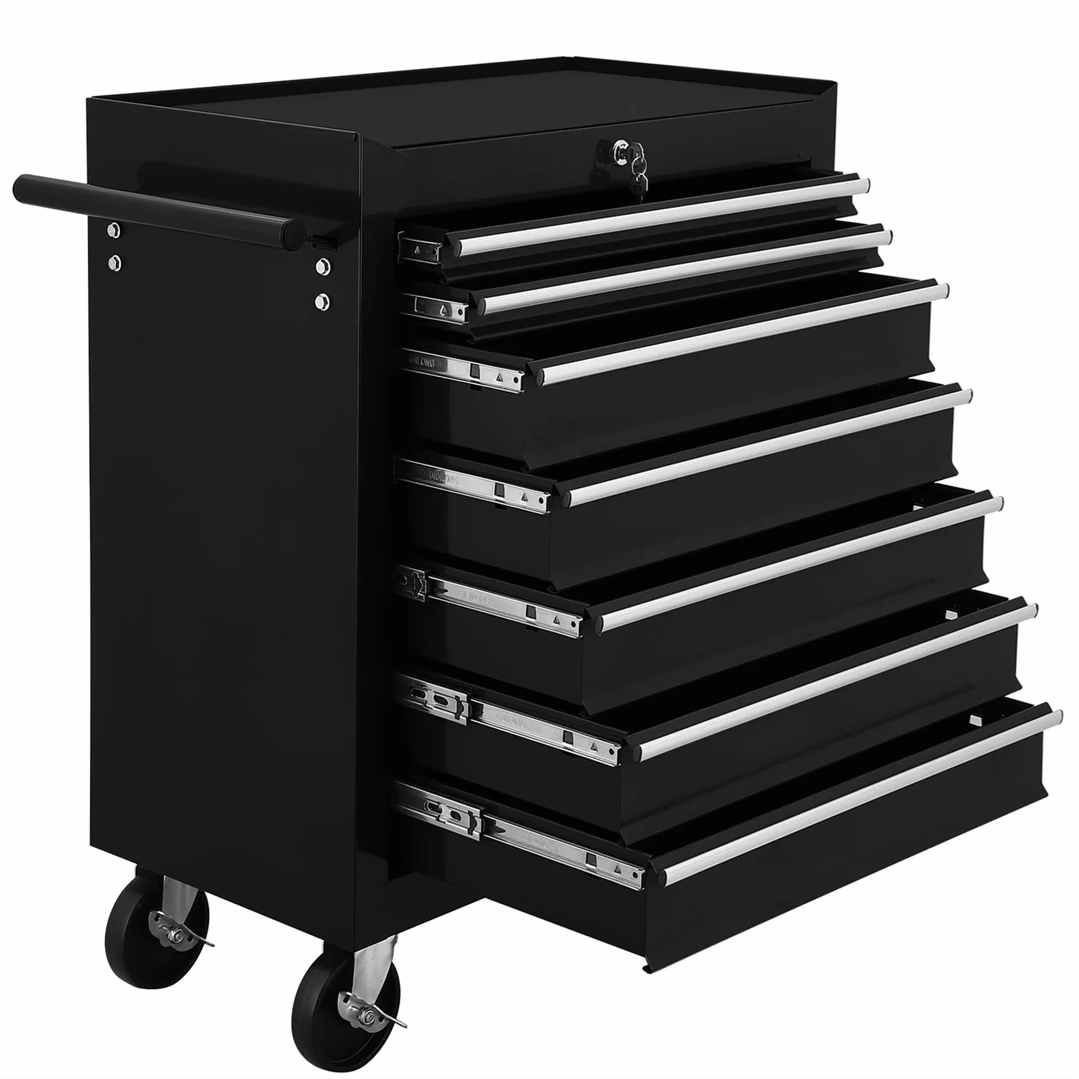 - LARGE HIGH CAPACITY - The rolling toolbox has 7 sliding drawers, to store different size tools and meet your needs. Each drawer is designed with a liner to prevent scratches.