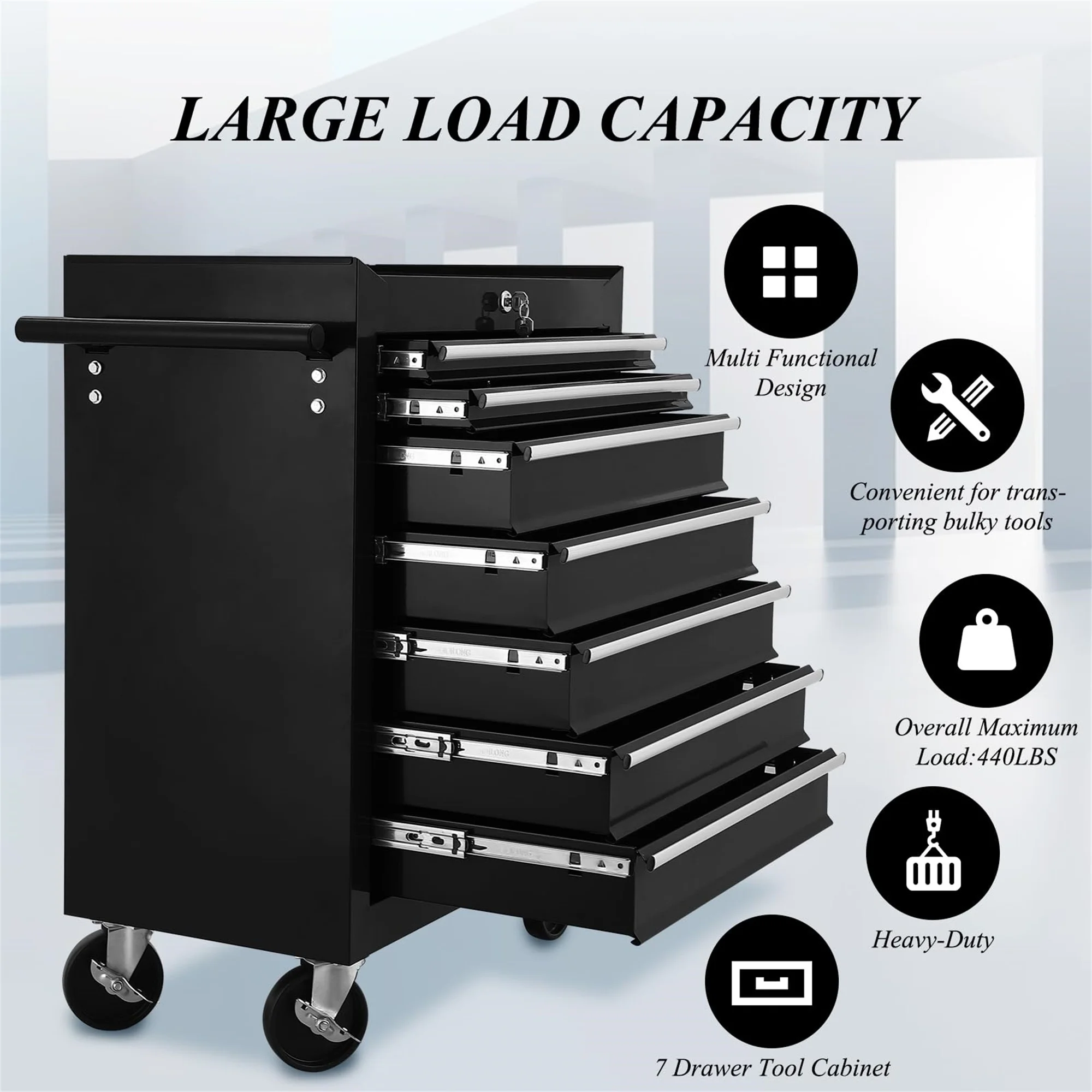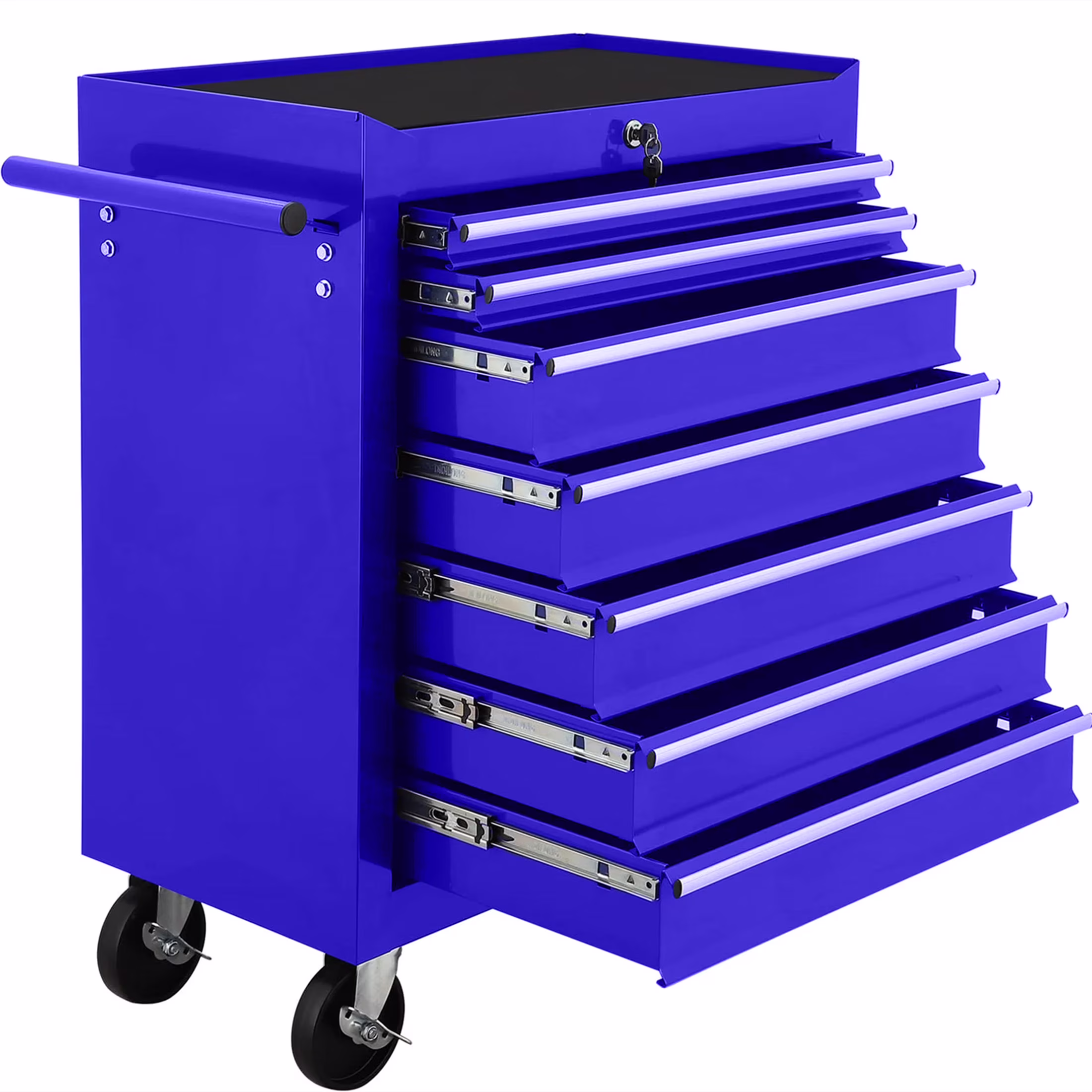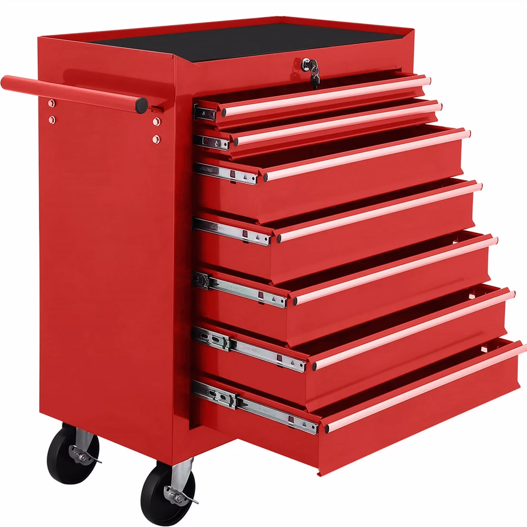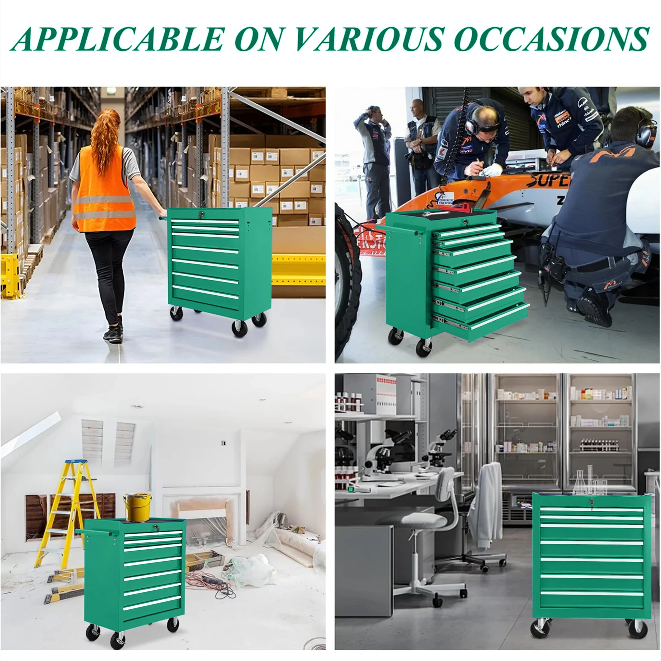 - LARGE HIGH CAPACITY - The rolling toolbox has 7 sliding drawers, to store different size tools and meet your needs. Each drawer is designed with a liner to prevent scratches.