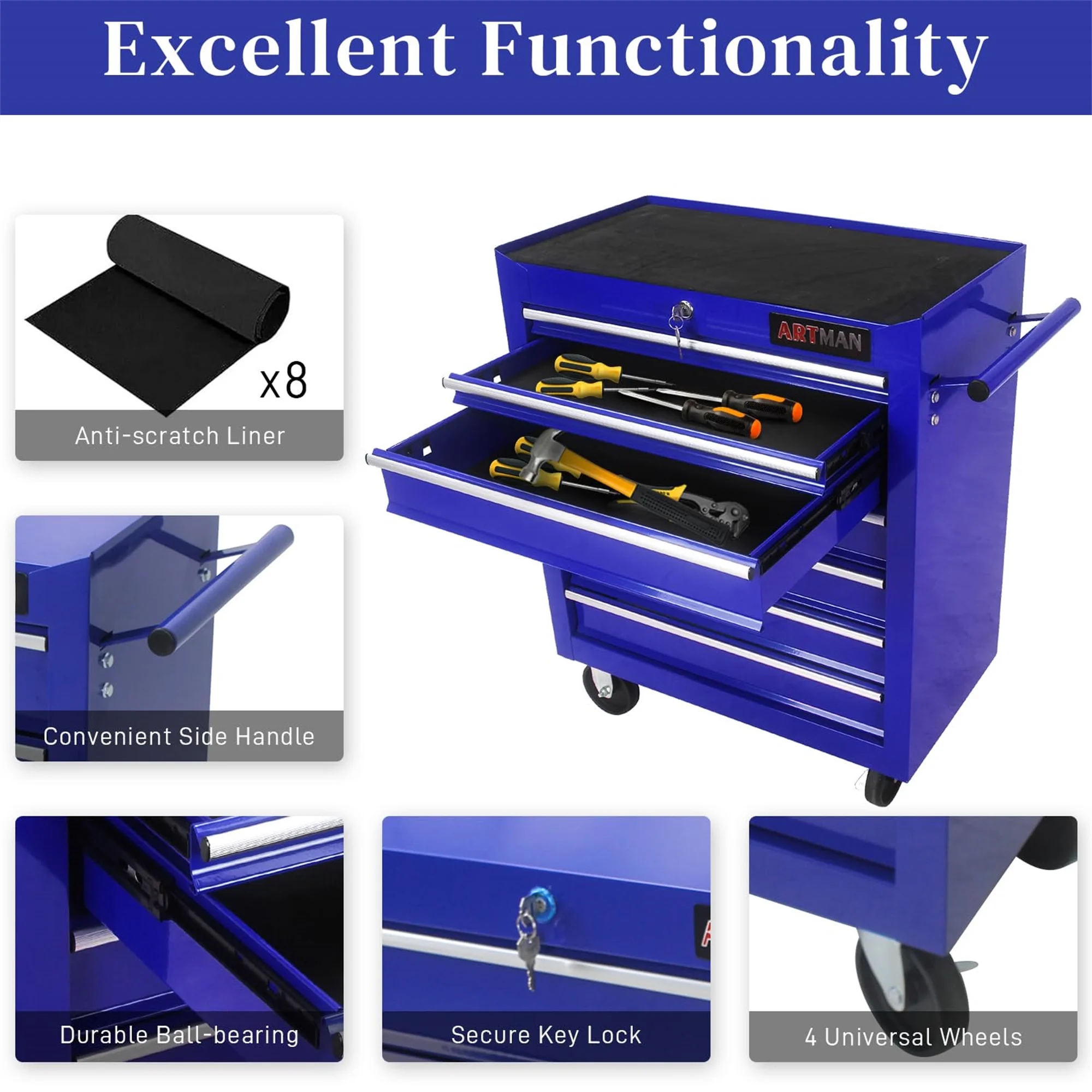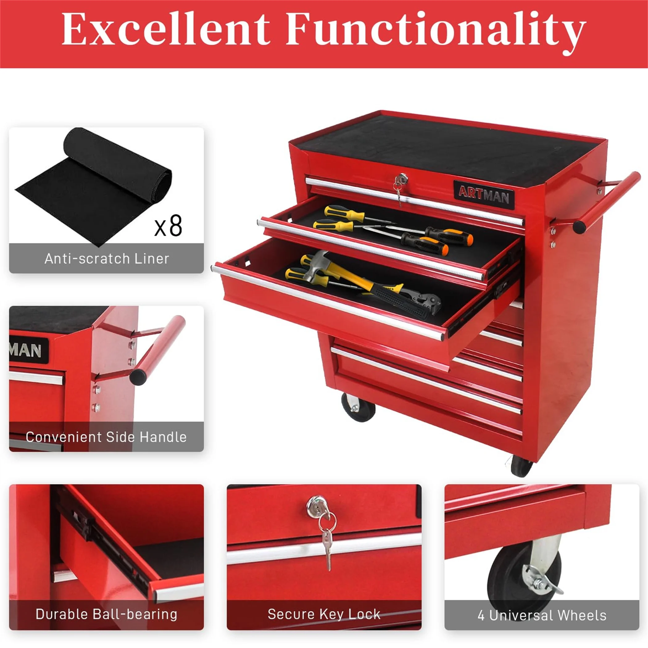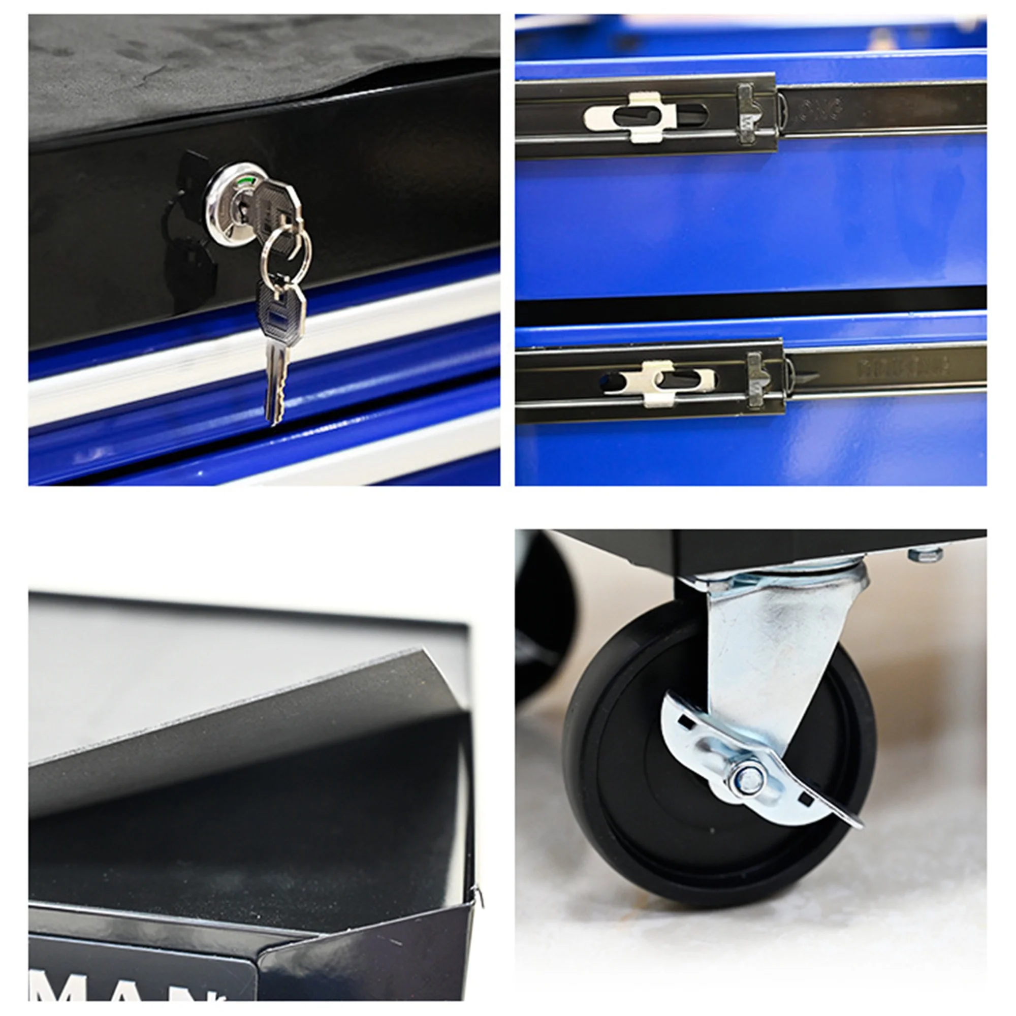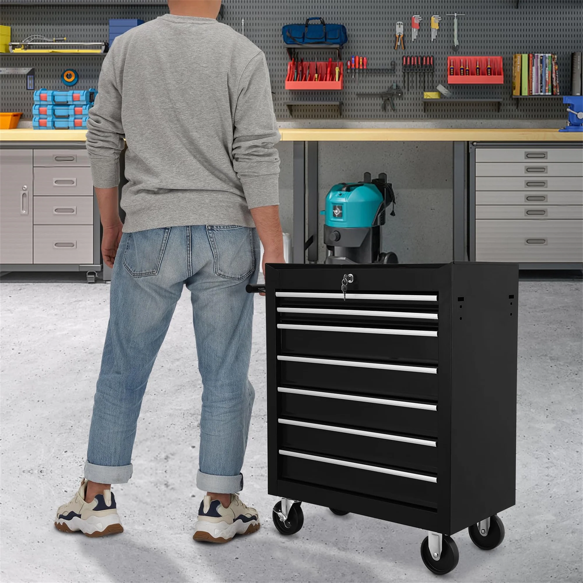- LARGE HIGH CAPACITY - The rolling toolbox has 7 sliding drawers, to store different size tools and meet your needs. Each drawer is designed with a liner to prevent scratches.