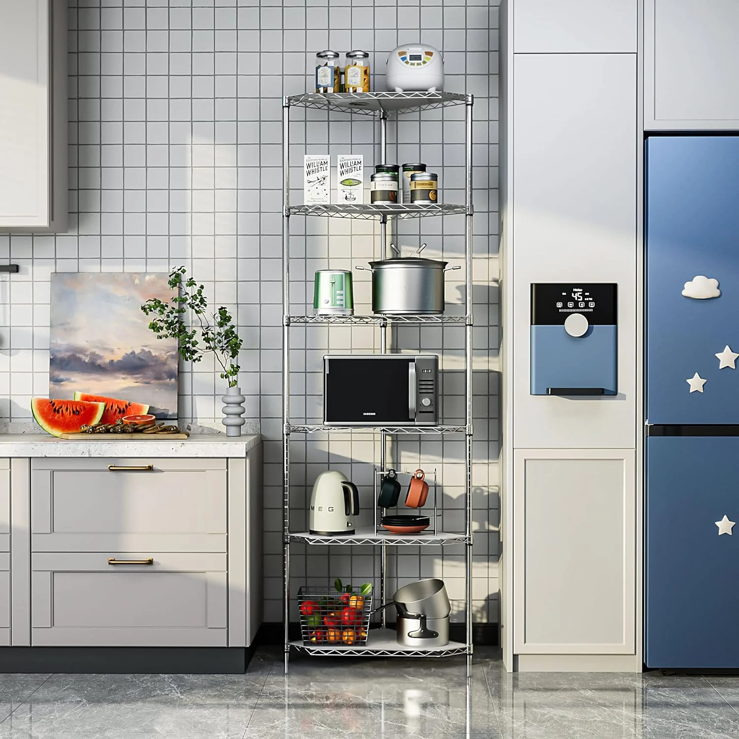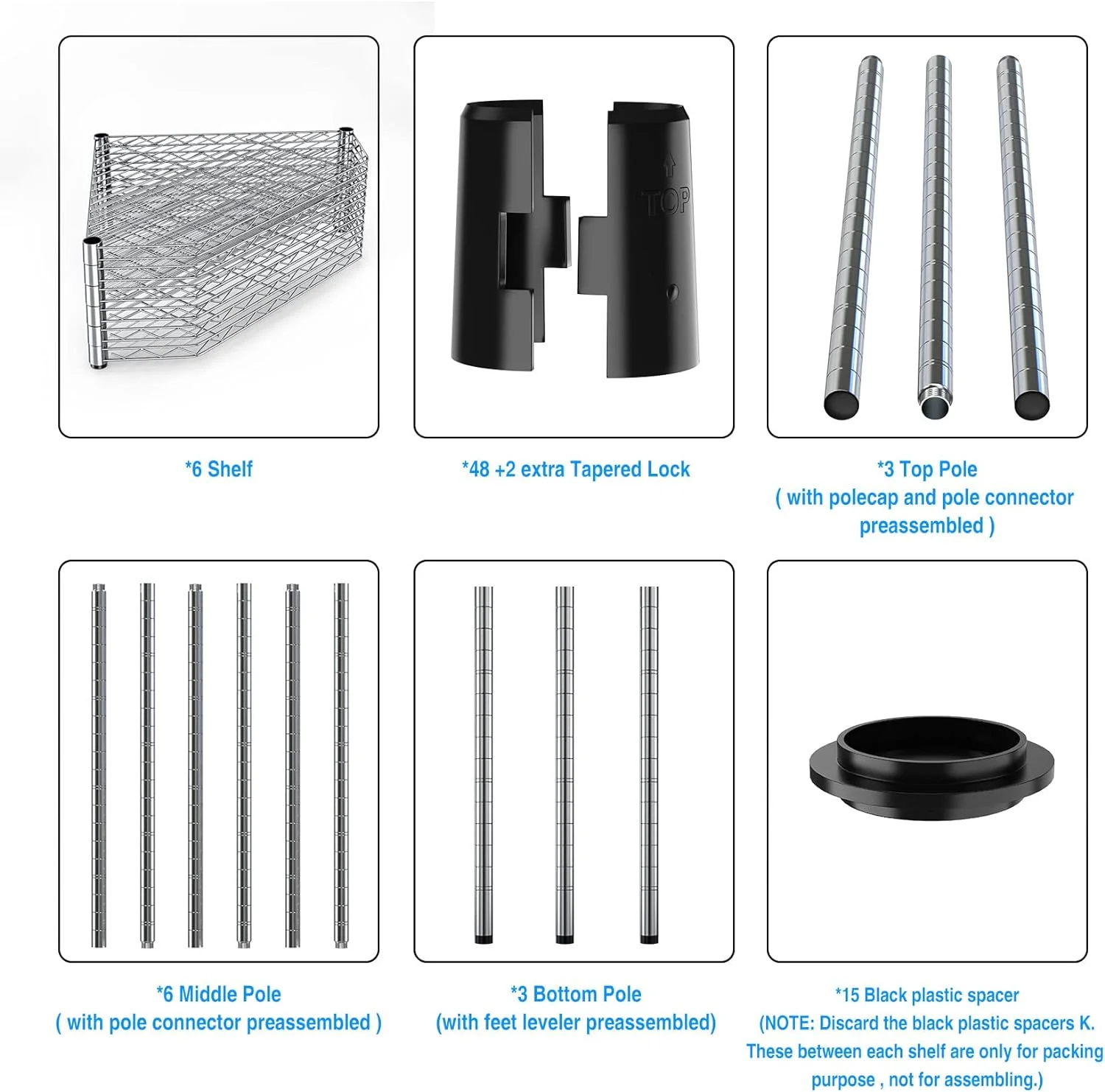 - [EXTREMELY DURABLE] - Wire shelving made of heavy steel, it has excellent rust resistance and oxidation resistance. Our wire shelf liner is crafted to provide unparalleled quality, longevity, function and beauty. Better quality thicker than the competition. The 6 tier corner shelf unit passed NSF certified, safe and reliable. Storage rack are perfect addition to home, office.
