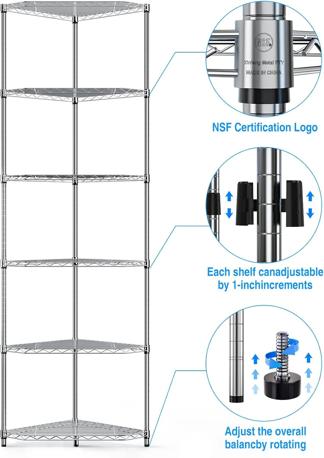 - The 6 tier NSF metal shelf pentagonal corner wire shelving unit is NSF certified, meaning it meets strict standards for public health and safety. This certification gives you peace of mind that the unit is safe to use in different settings.