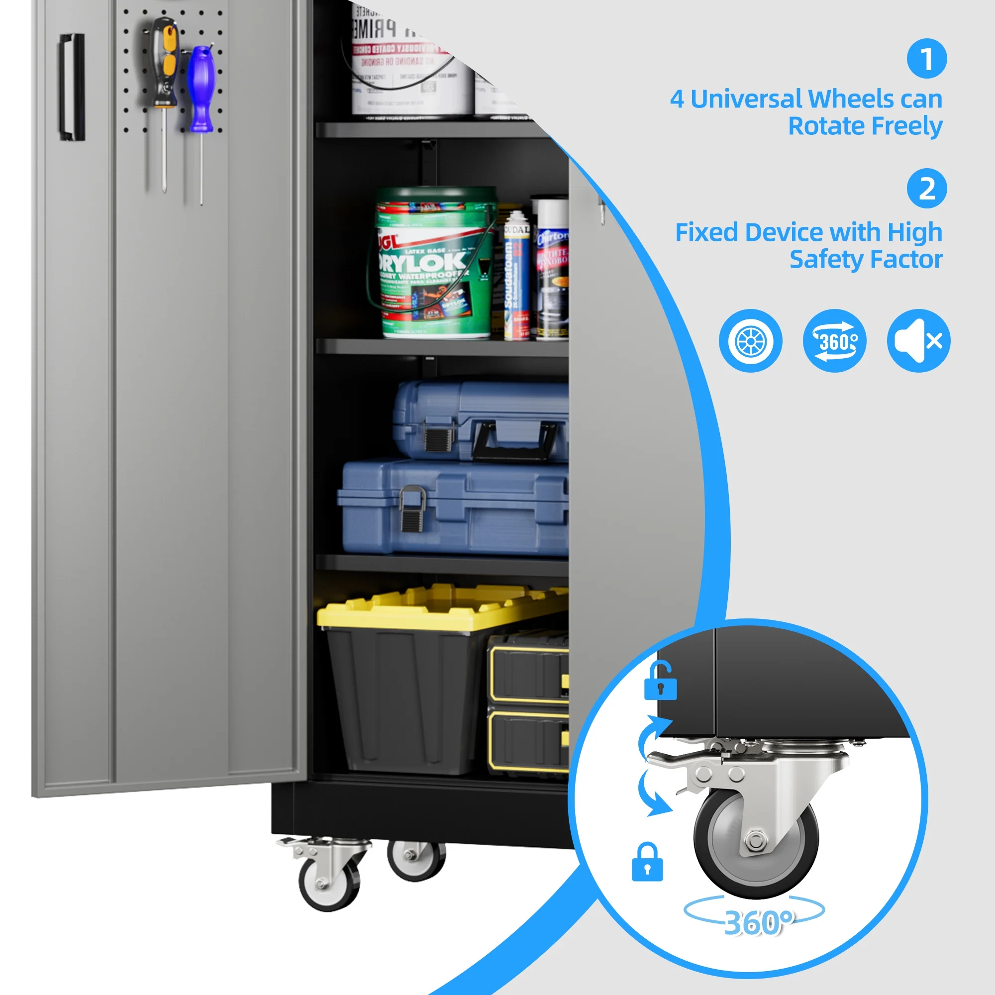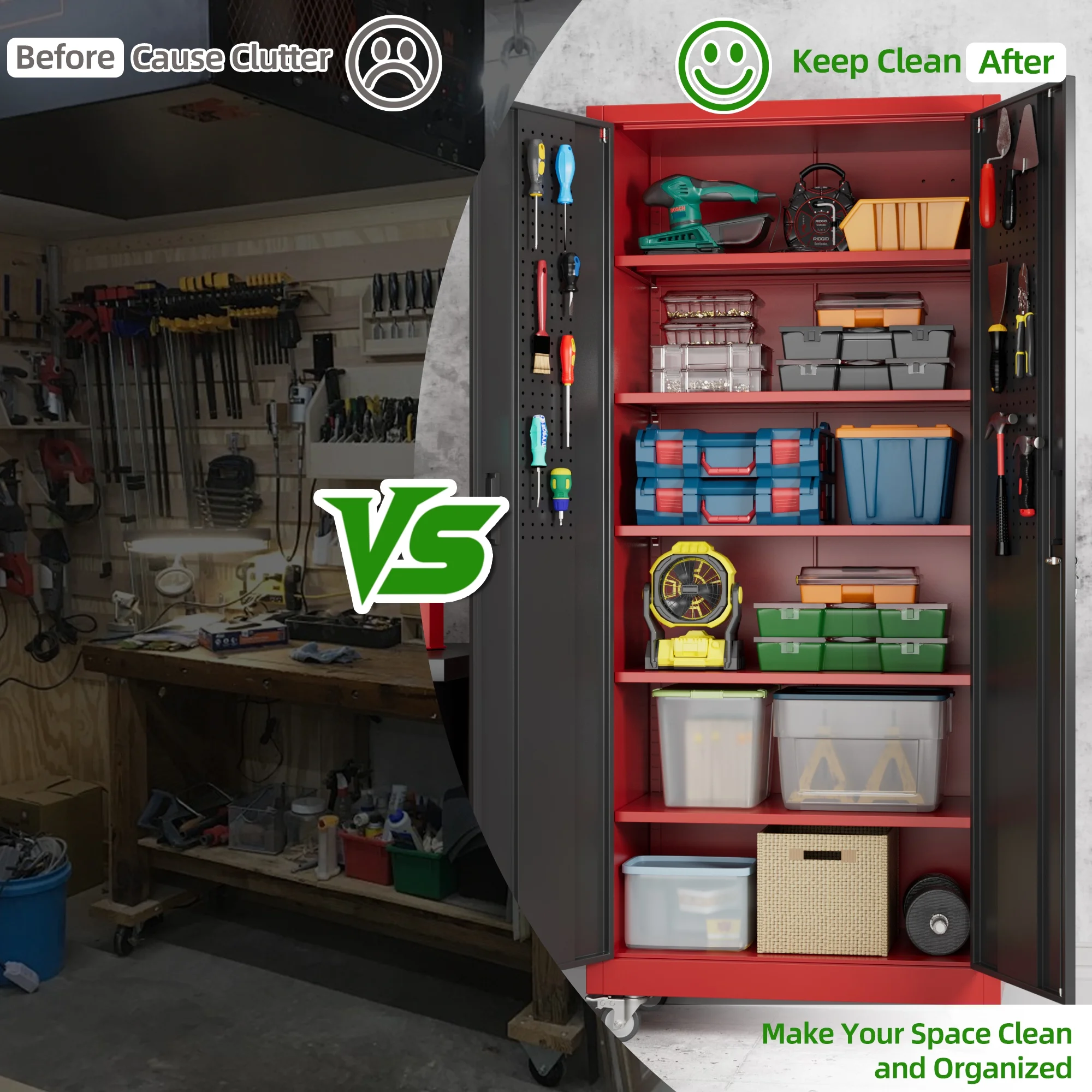 Our metal storage cabinet is made of high quality cold rolled steel plate, which is study and stable. The cabinet is perfect for office,home,kitchen,garage. Four shelves in this metal garage cabinet are adjustable, providing high adaptability and convenience. You could create a unique storage space according to your needs.