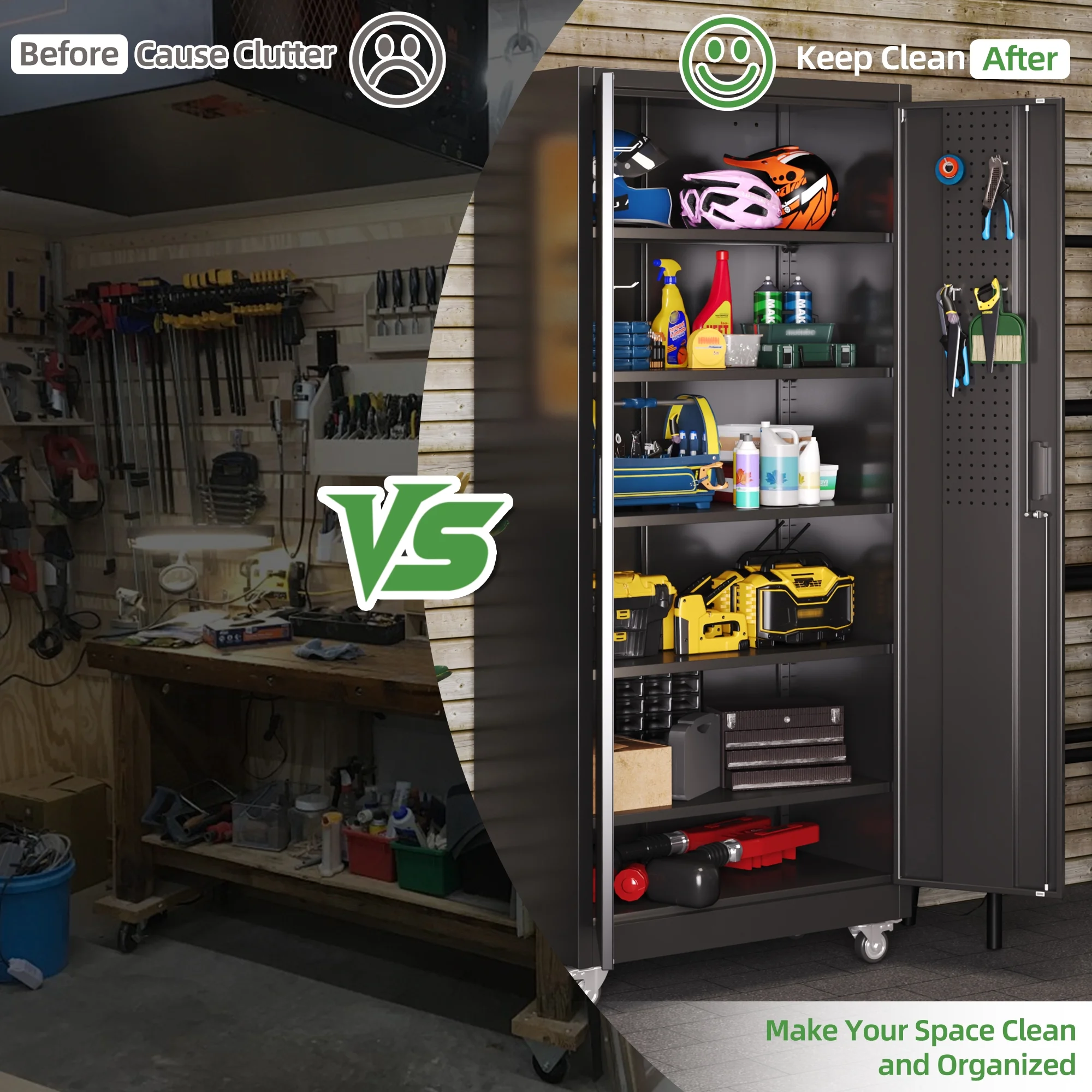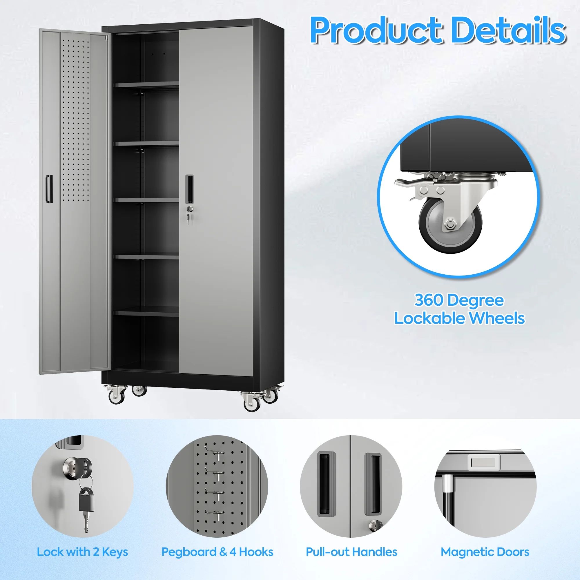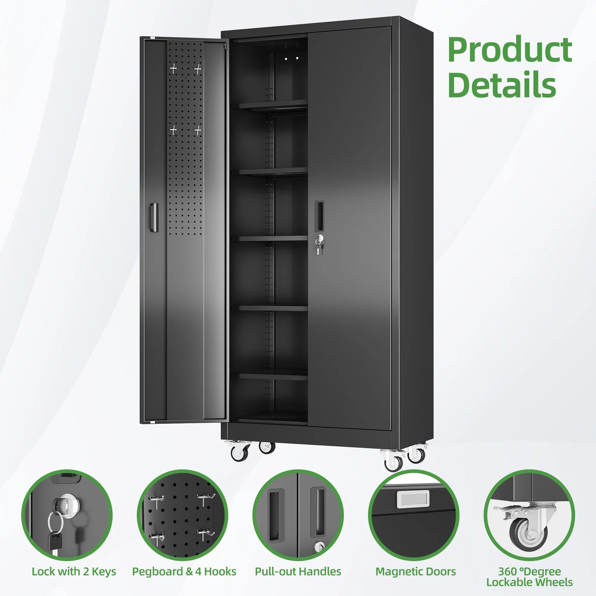 SUPEER Metal Storage Cabinets with Locking Doors and 5 Adjustable Shelves, Steel Storage Cabinet for Garage, Office, Classroom, Assemble Required(Black)