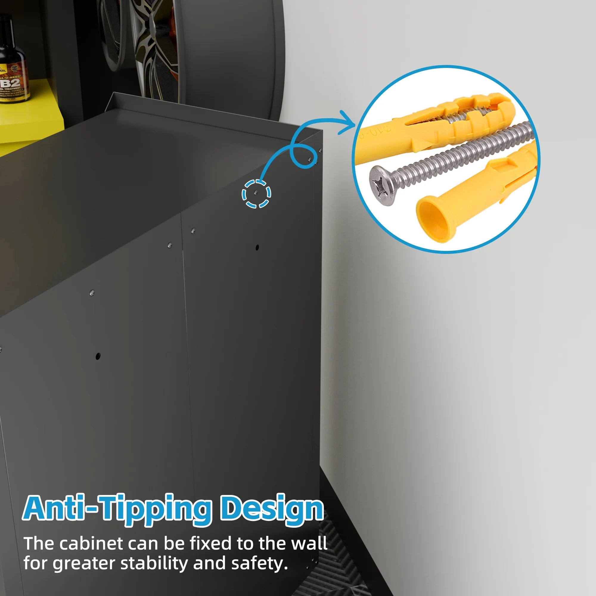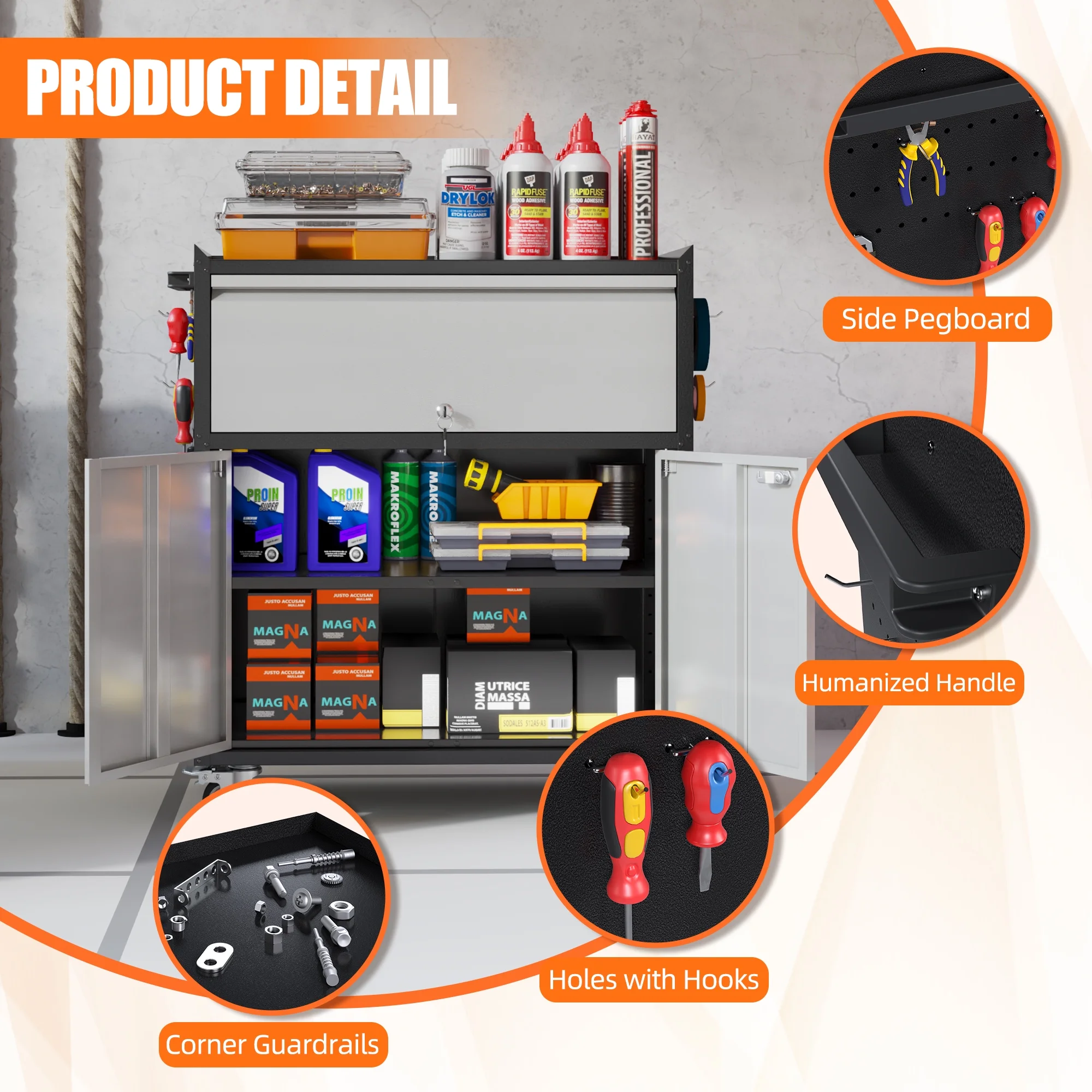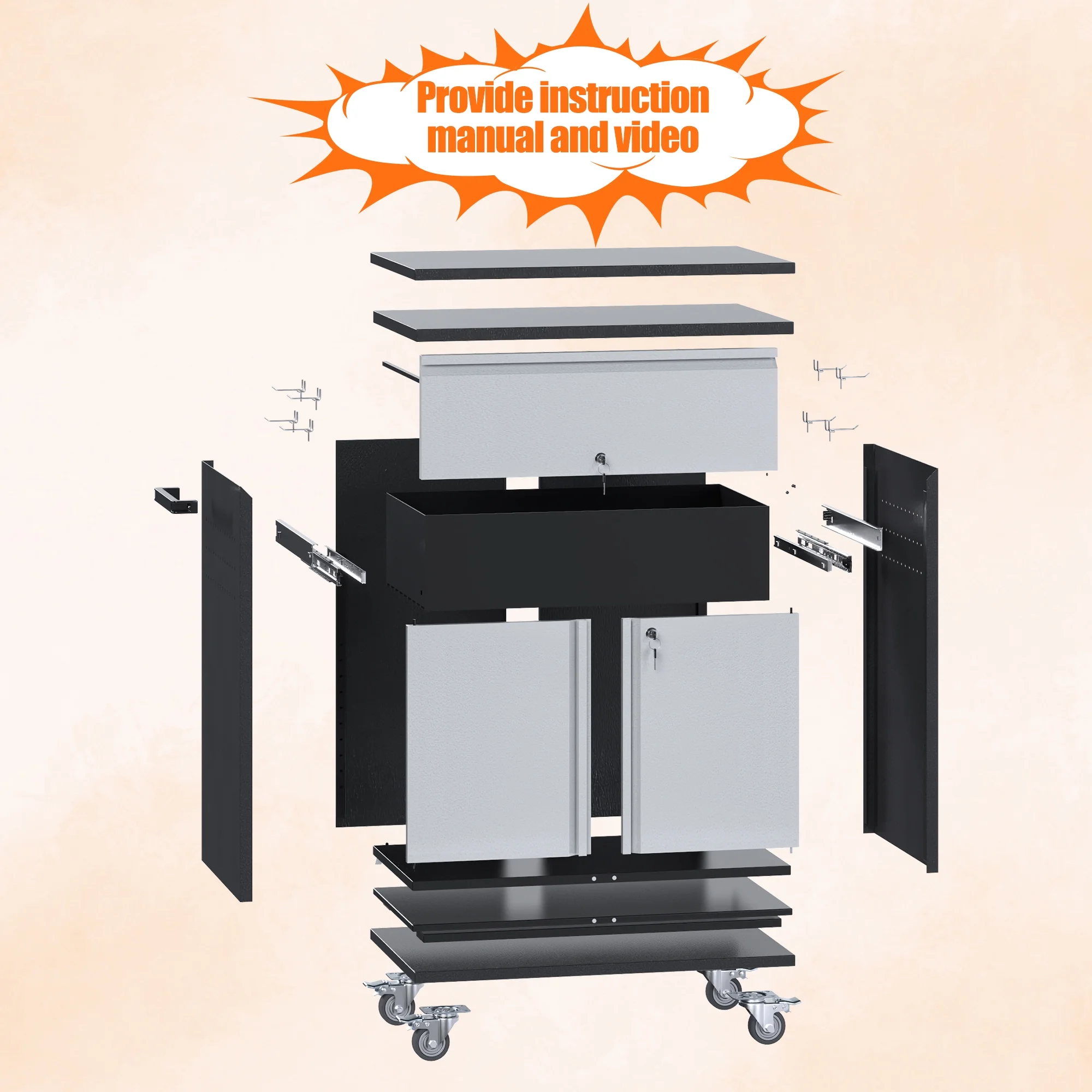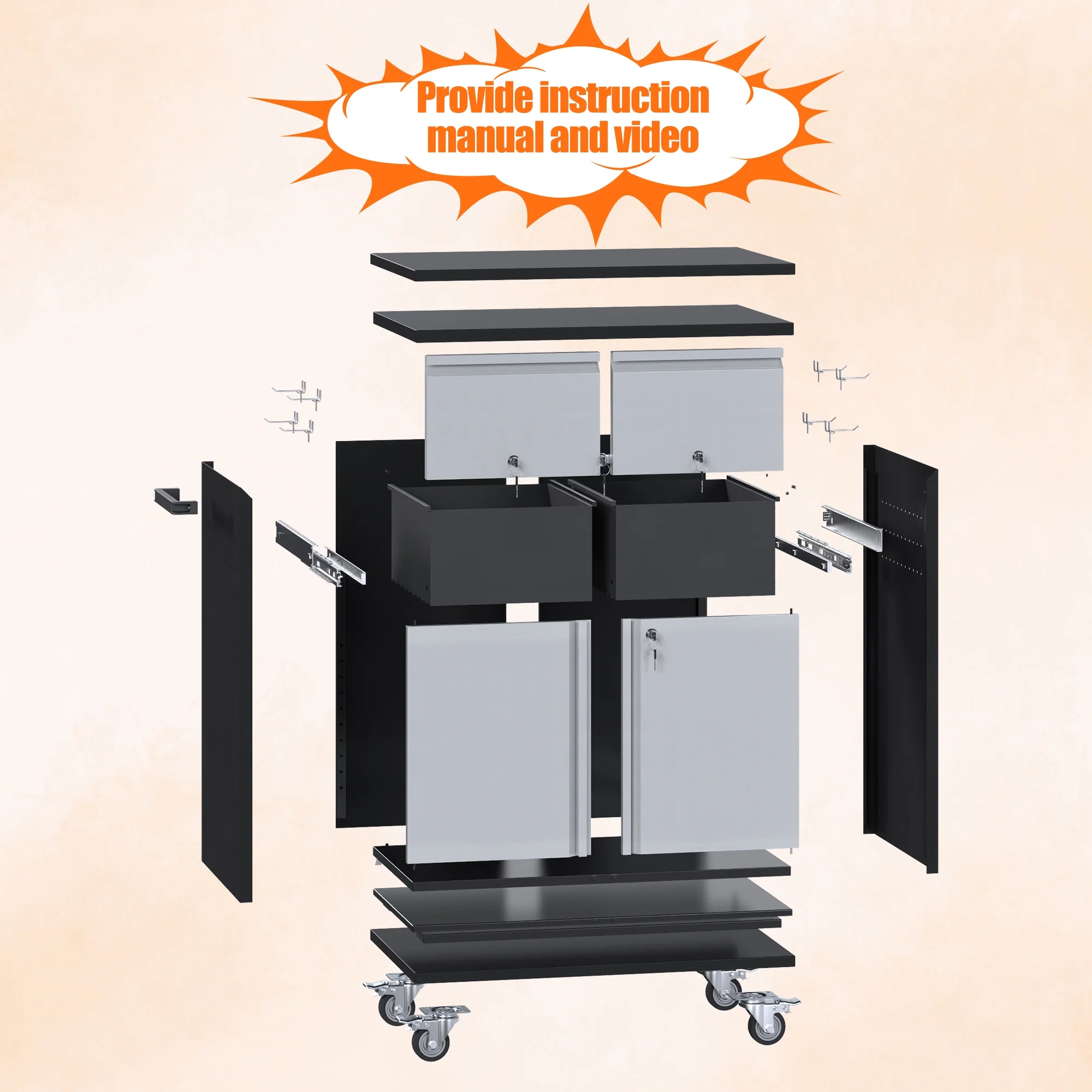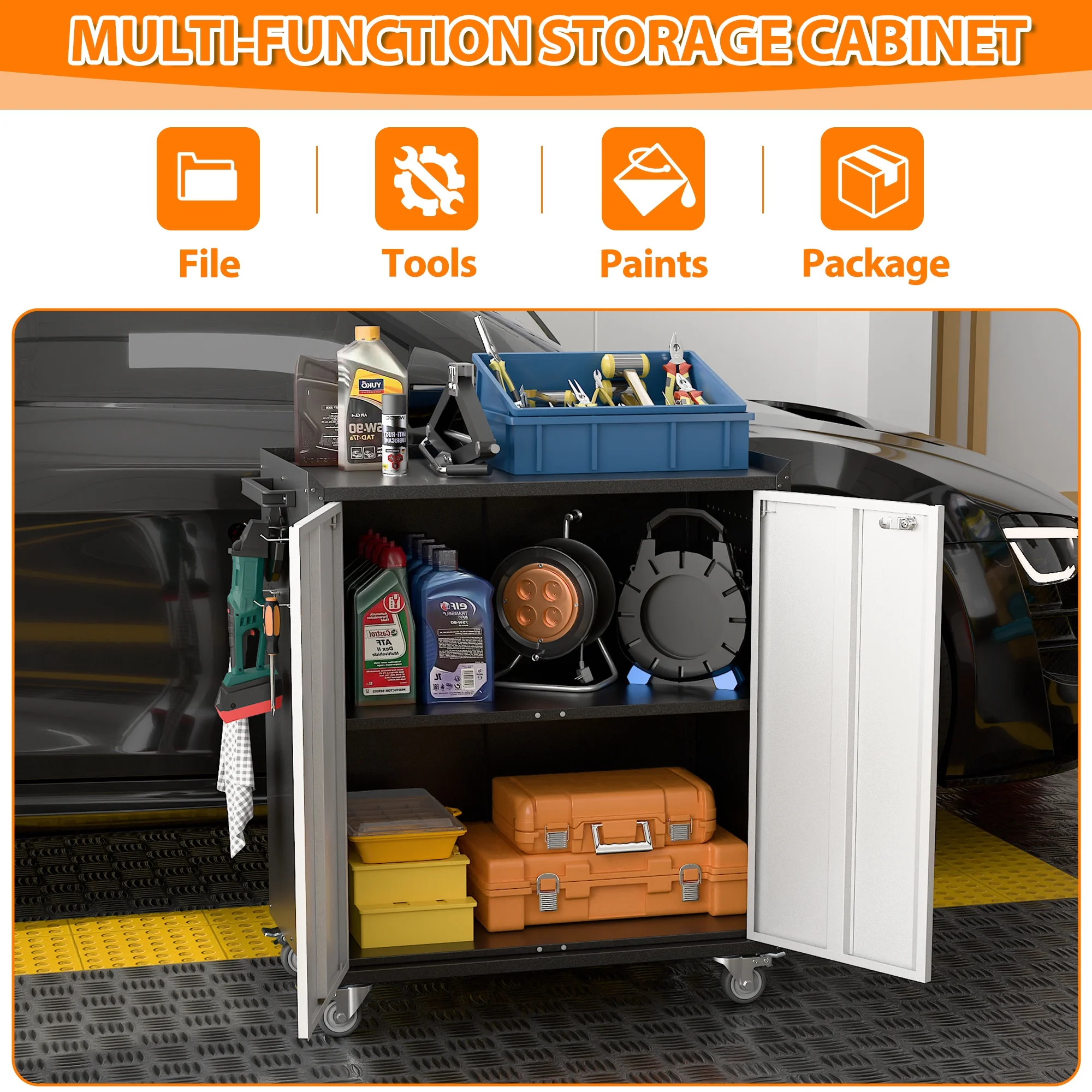 - ��Wall Mounted Brackets��The metal storage cabinet with wheels has 2 wall-mounted brackets, you can choose to connect the storage cabinet to the wall.