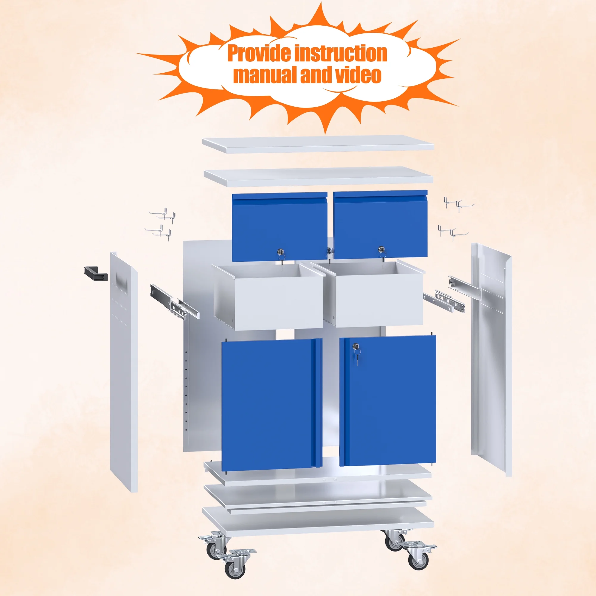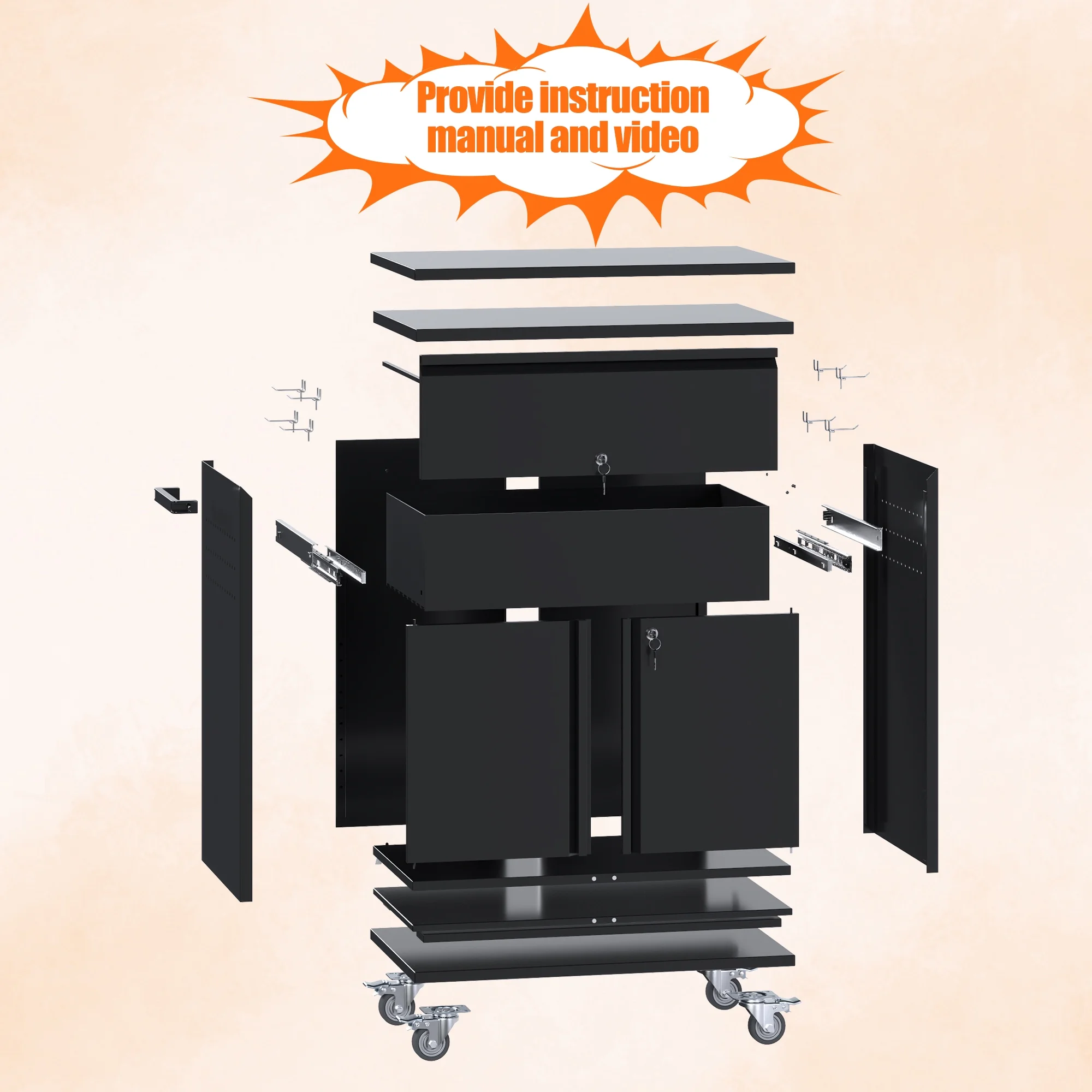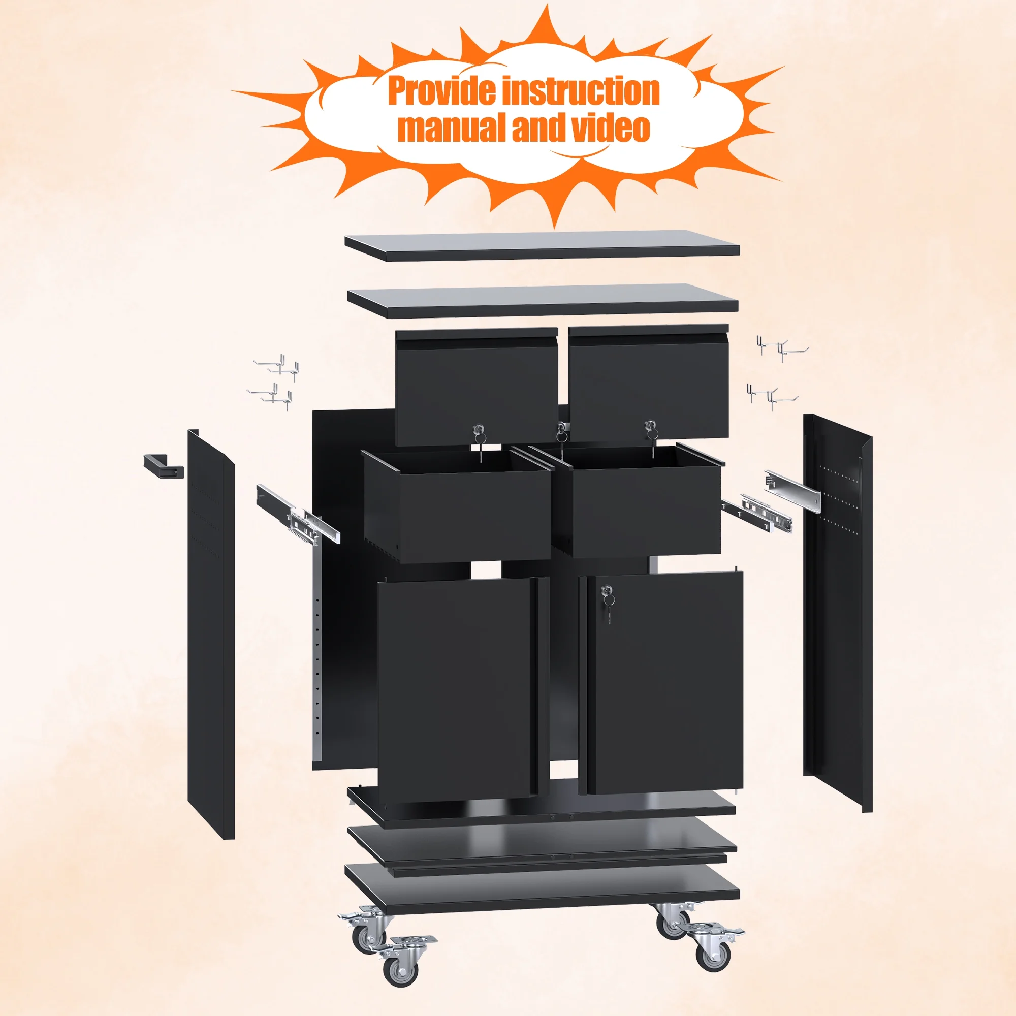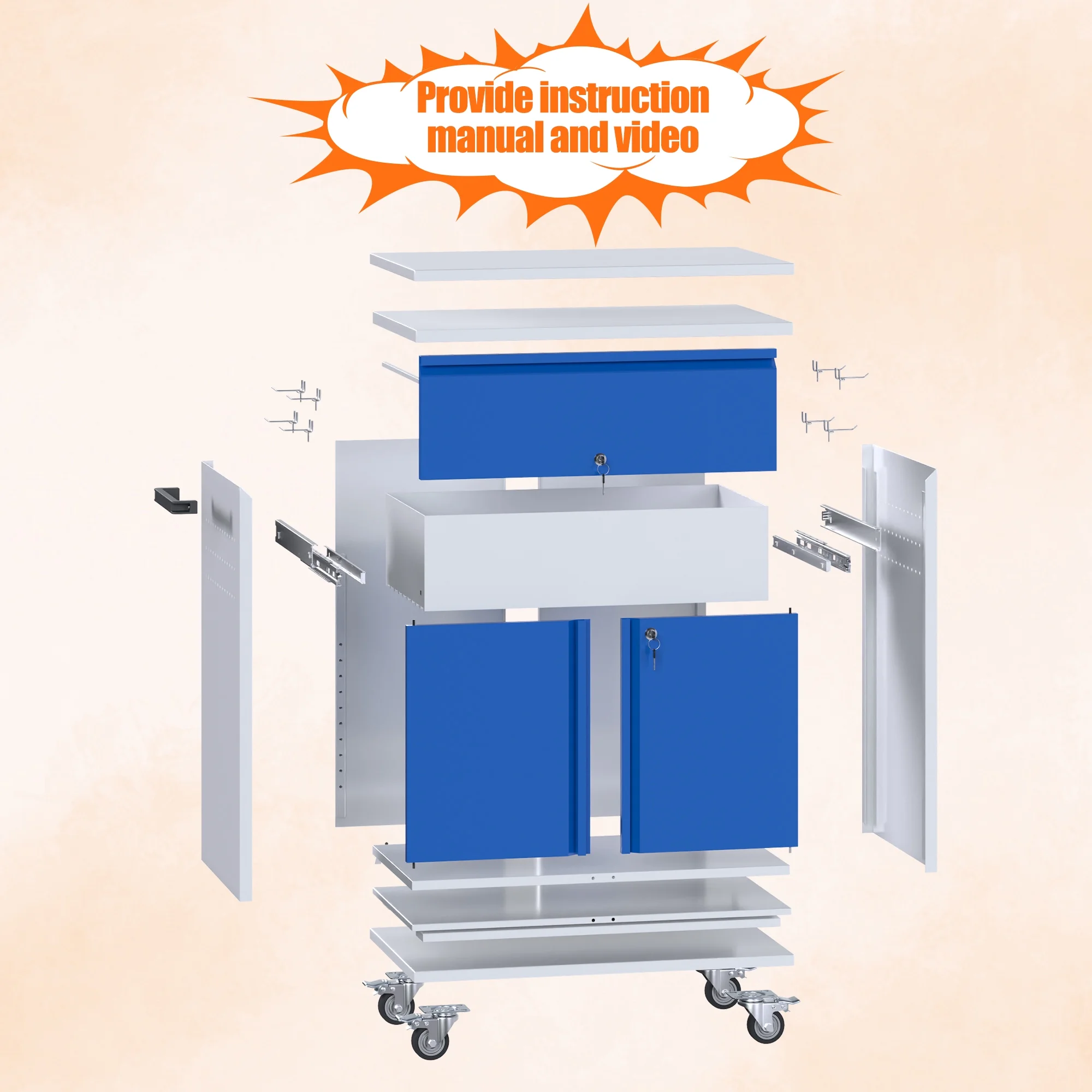 - ��Wall Mounted Brackets��The metal storage cabinet with wheels has 2 wall-mounted brackets, you can choose to connect the storage cabinet to the wall.